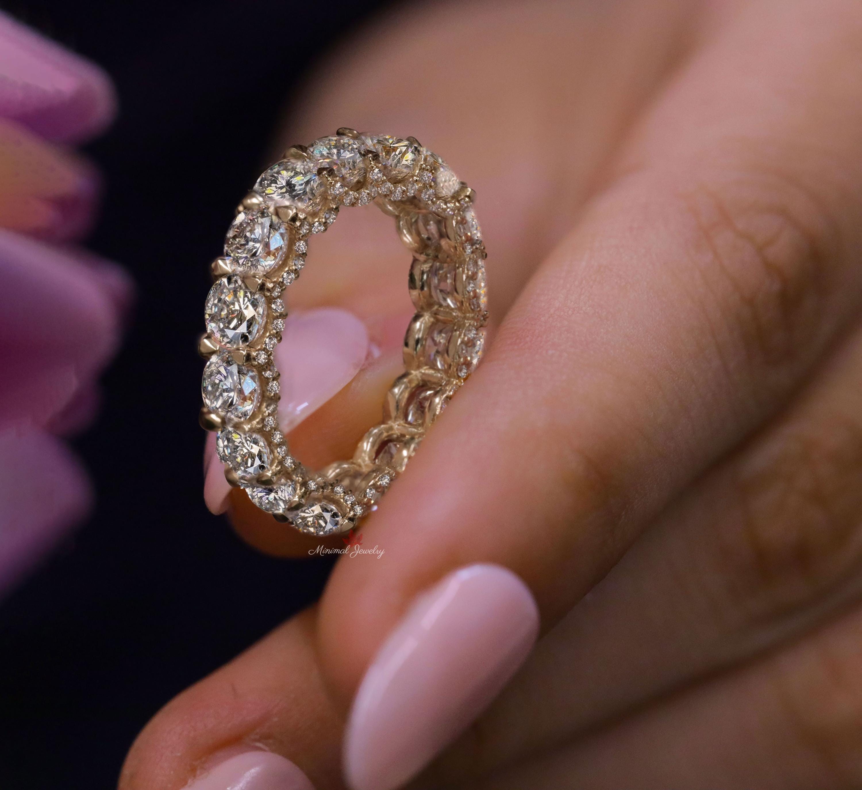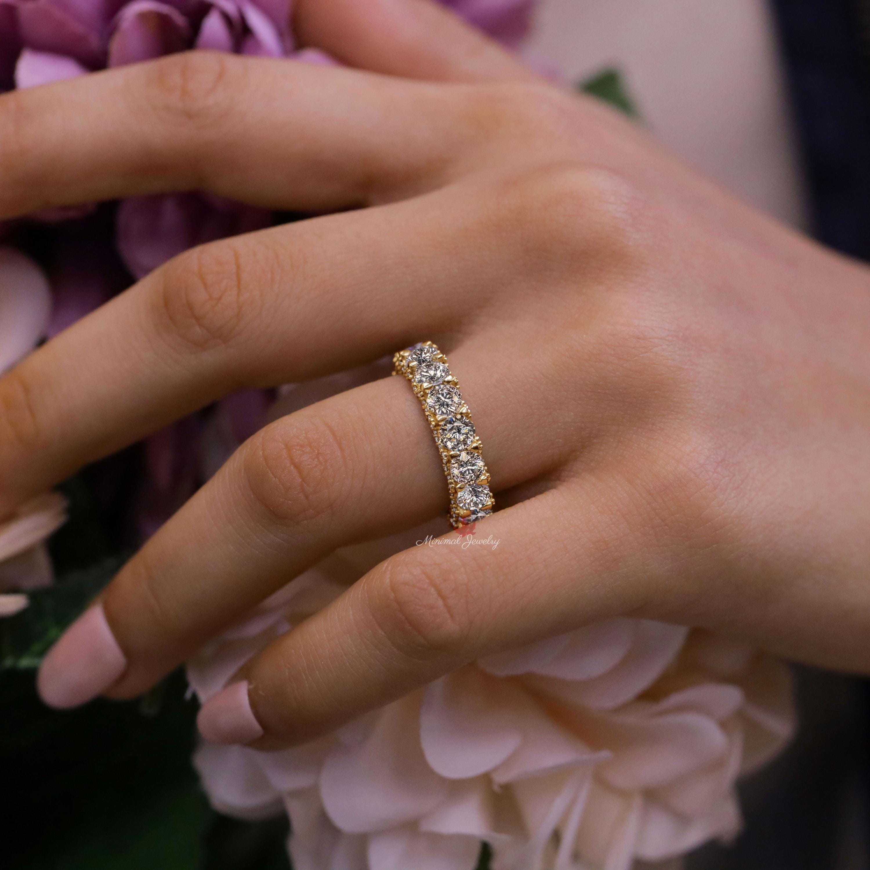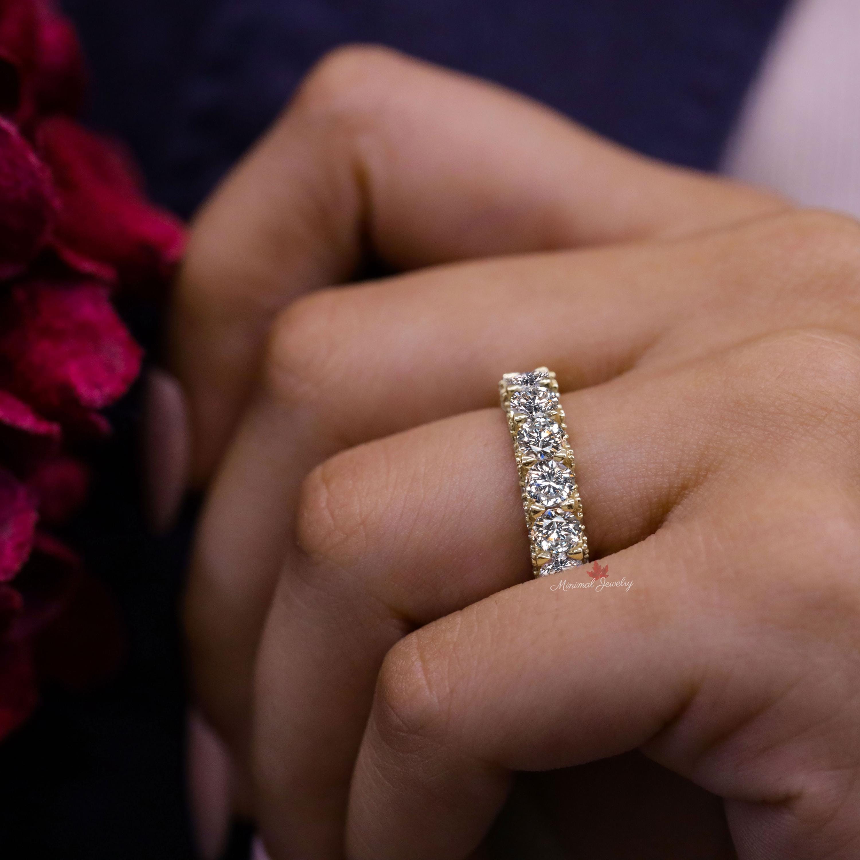 Moissanite eternity band 14k gold moissanite wedding band full eternity ring unique modern thick 4mm wedding band Matching stackable rings
