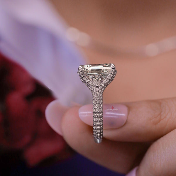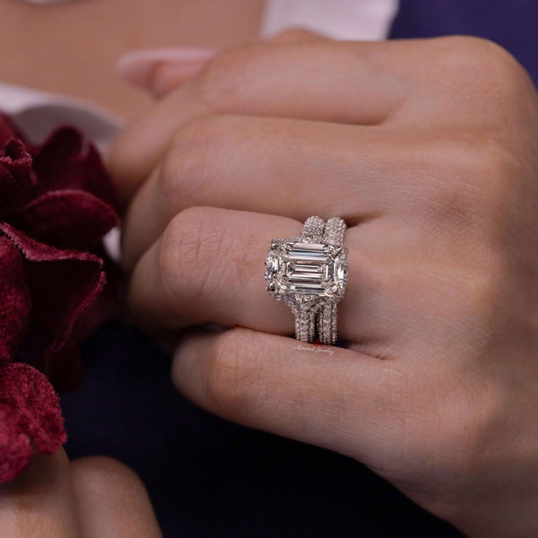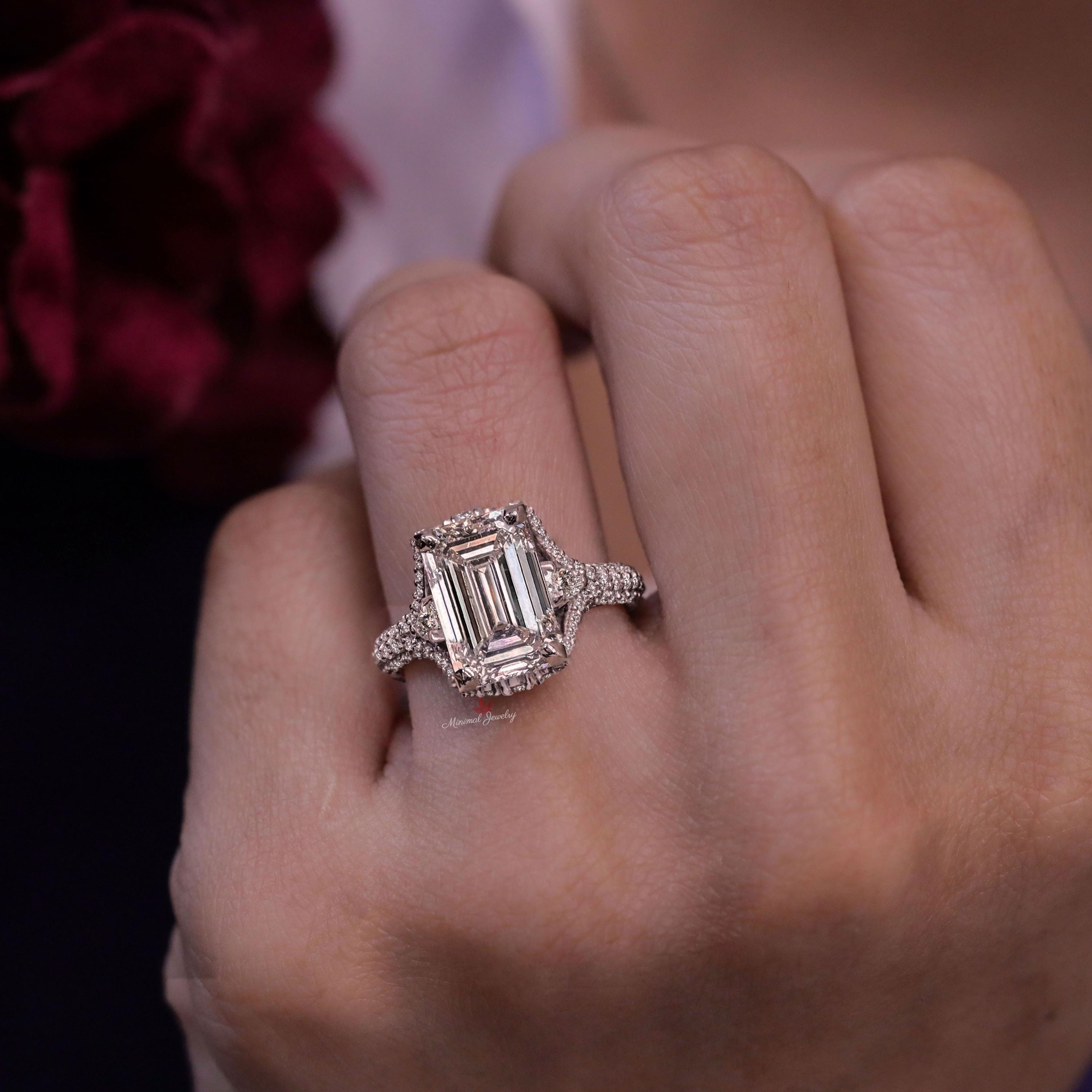5ct lab grown diamond Ring Emerald cut engagement ring IGI certified diamond Three stone split shank bridal ring set wedding ring for women