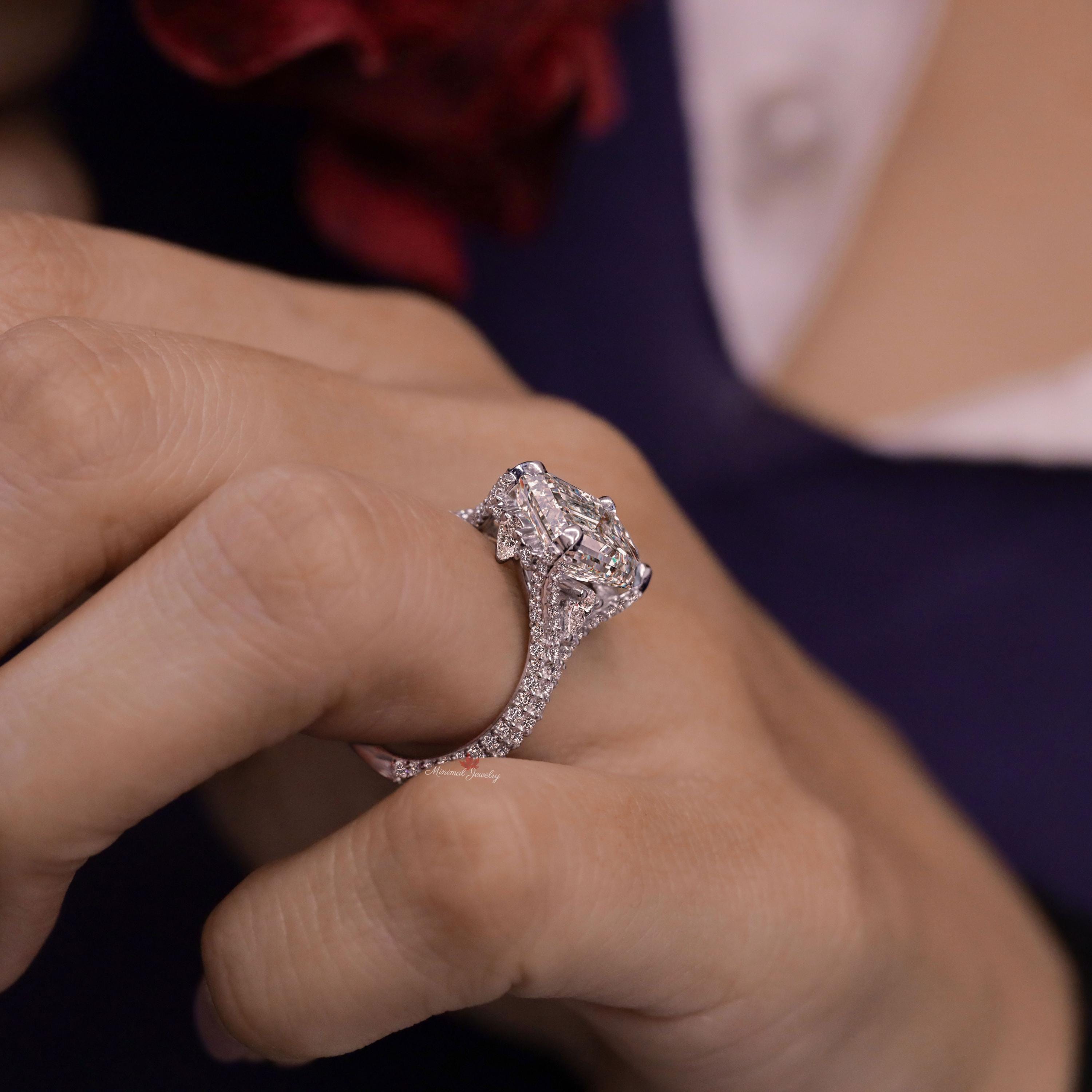 4ct pear lab grown diamond ...5ct lab grown diamond Ring Emerald cut engagement ring IGI certified diamond Three stone split shank bridal ring set wedding ring for women