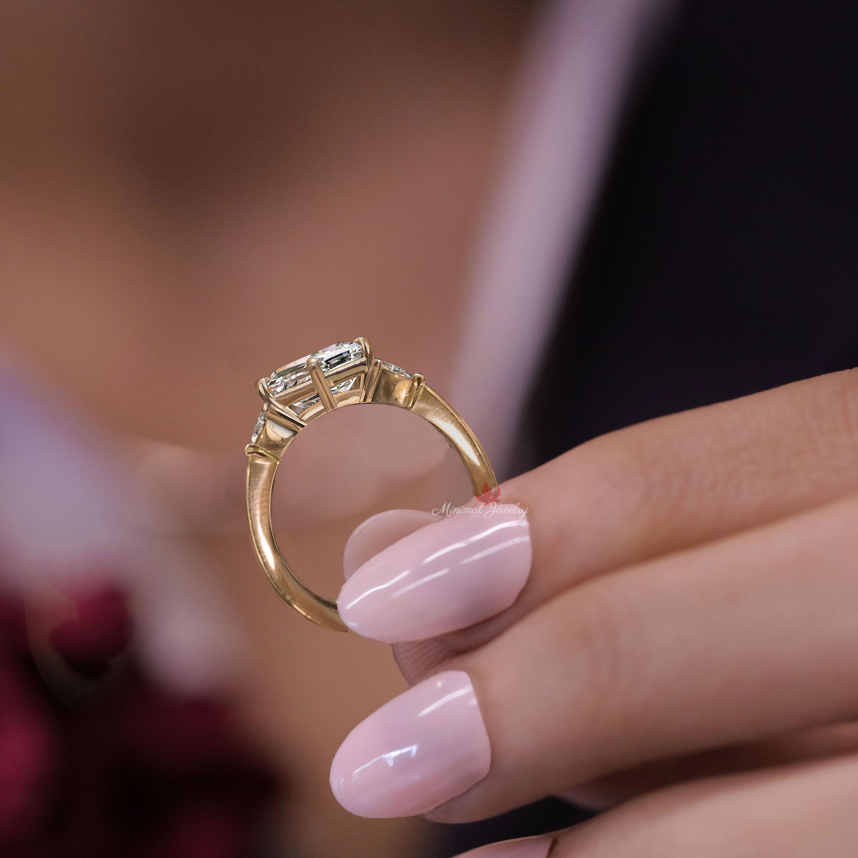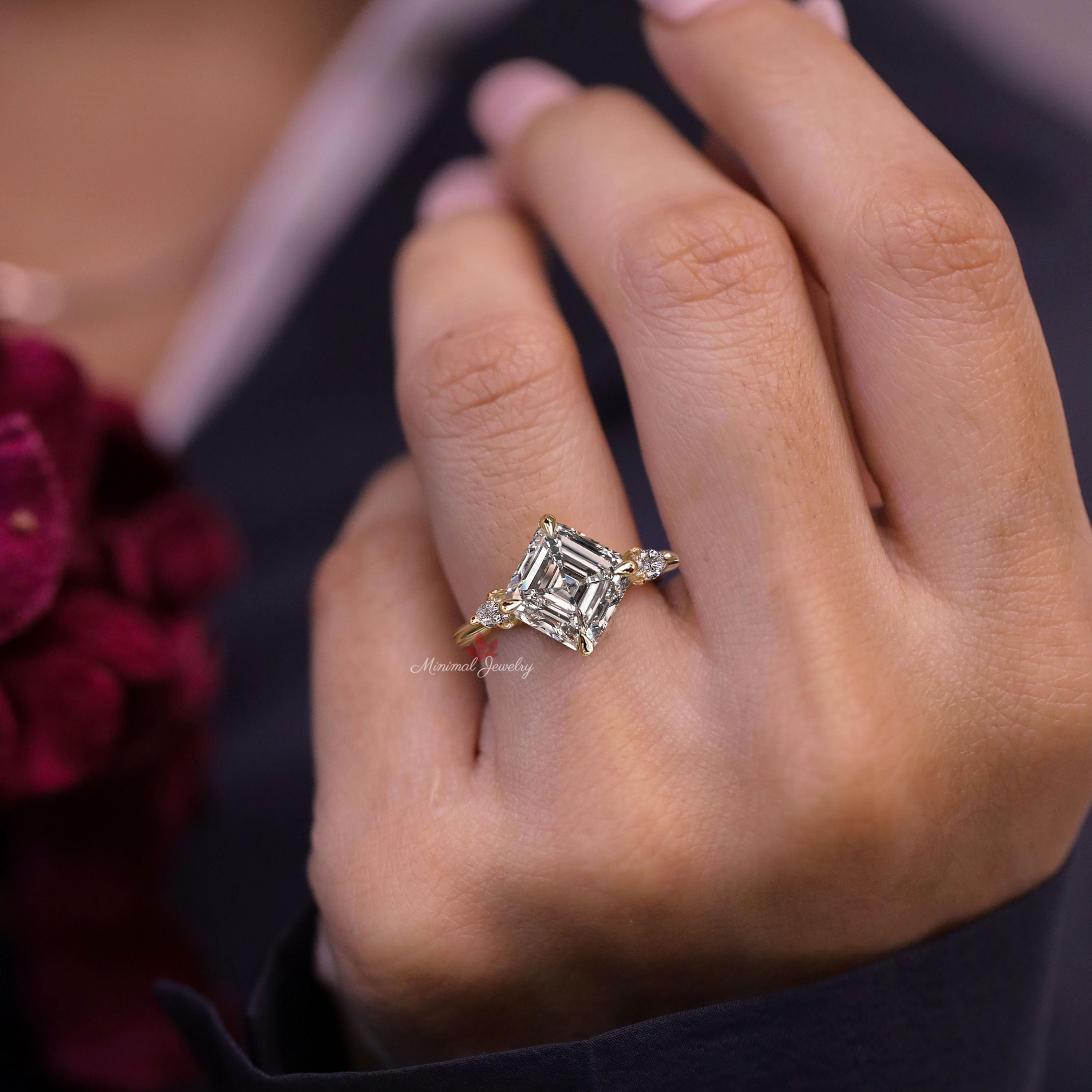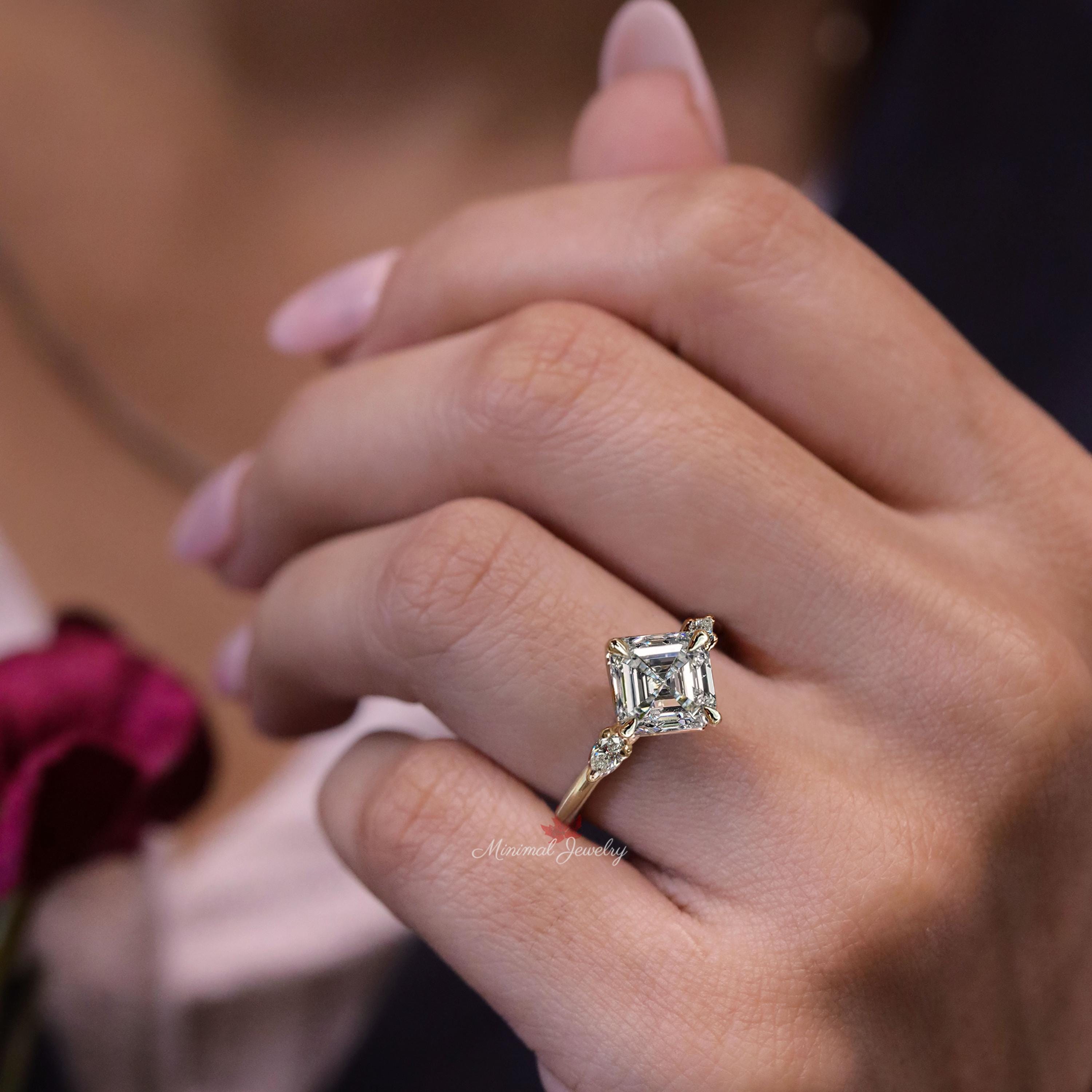 9CT lab grown diamond ring ...Asscher lab grown diamond ring with bezel set Three stone IGI Certified 2CT Asscher cut Lab diamond ring Wedding ring women anniversary ring