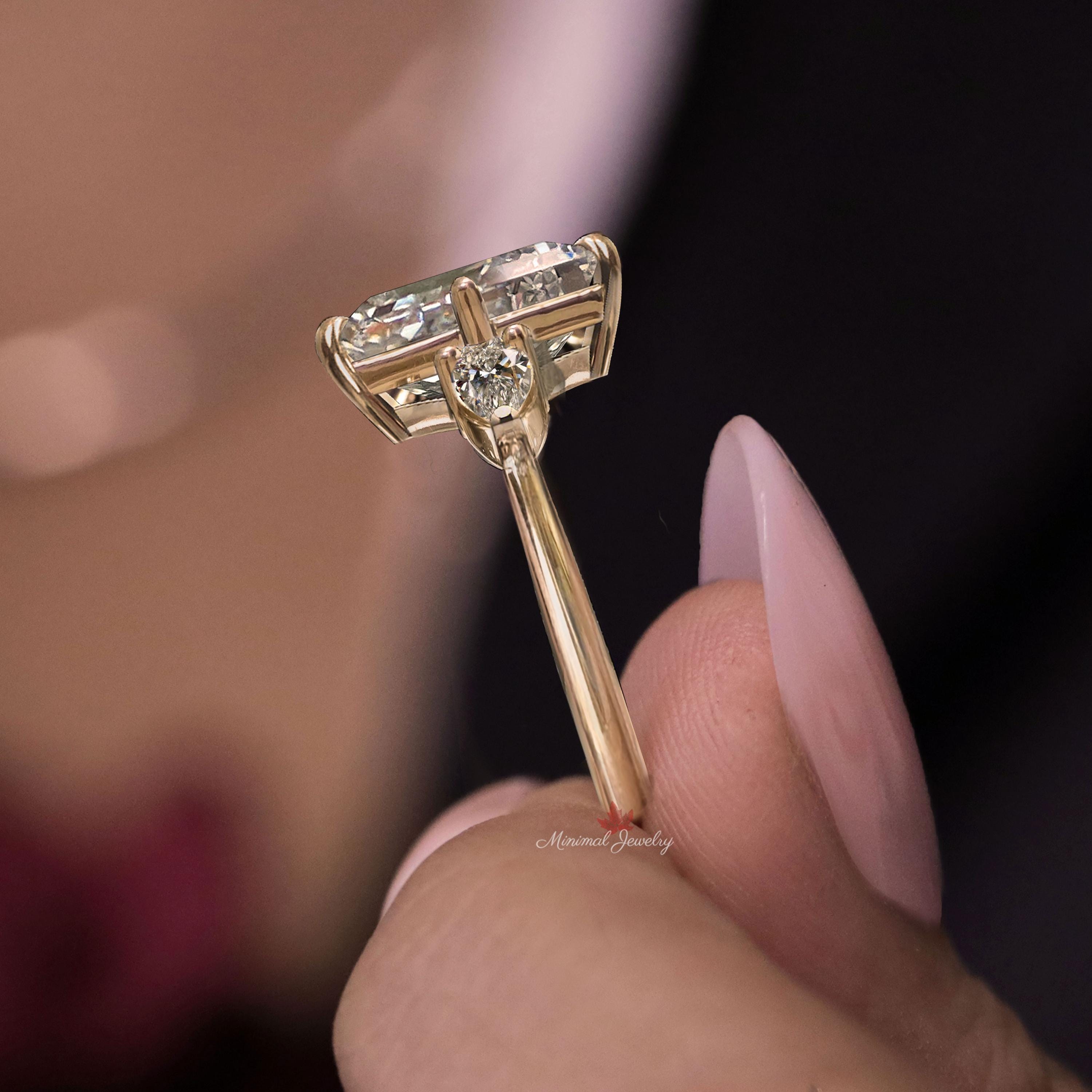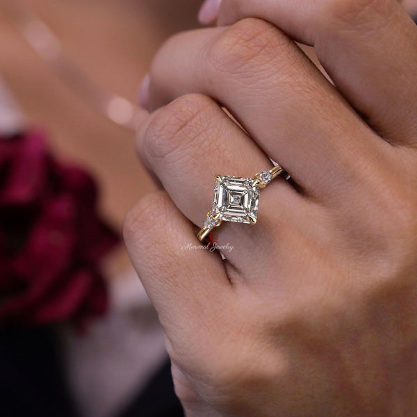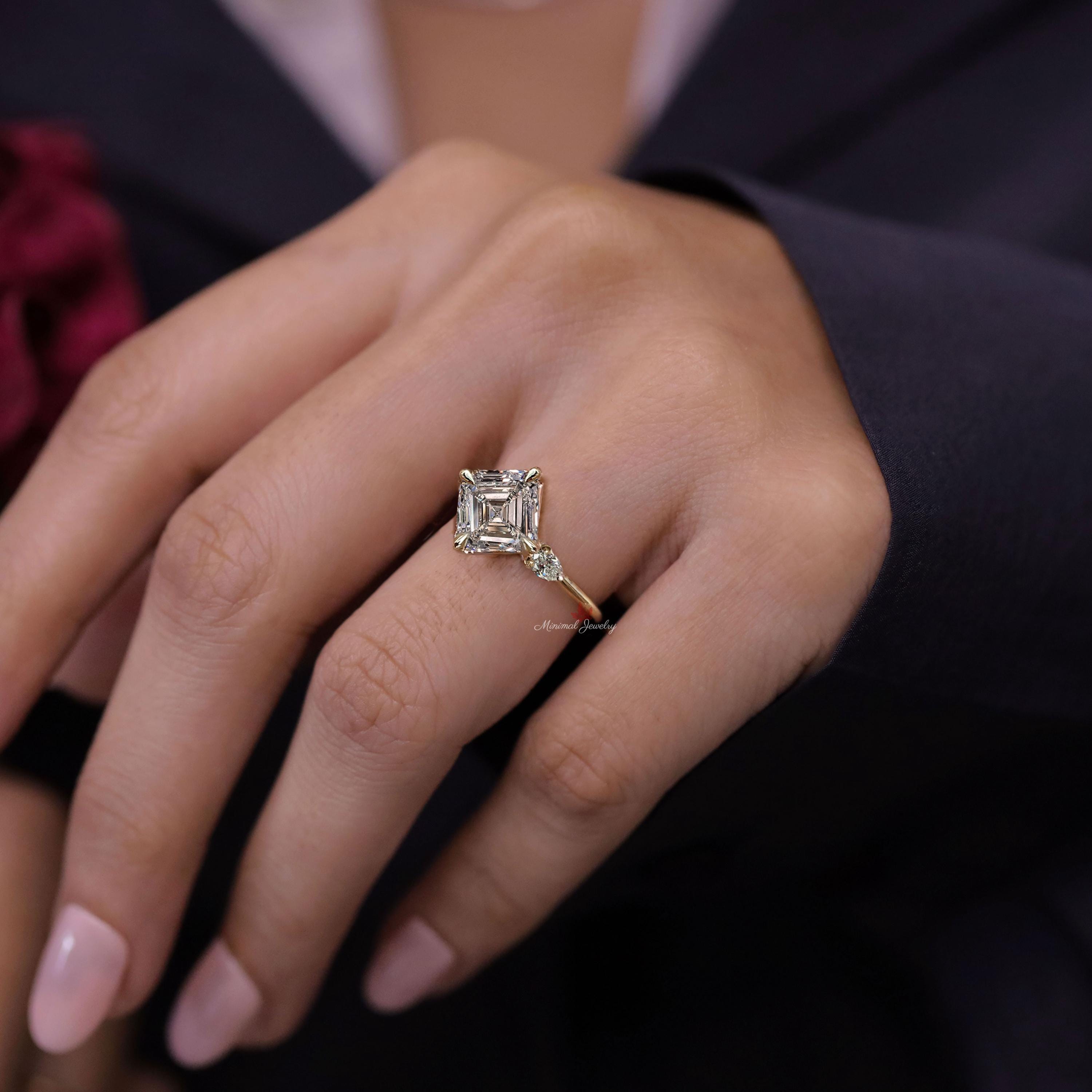 Asscher lab grown diamond ring with bezel set Three stone IGI Certified 2CT Asscher cut Lab diamond ring Wedding ring women anniversary ring
