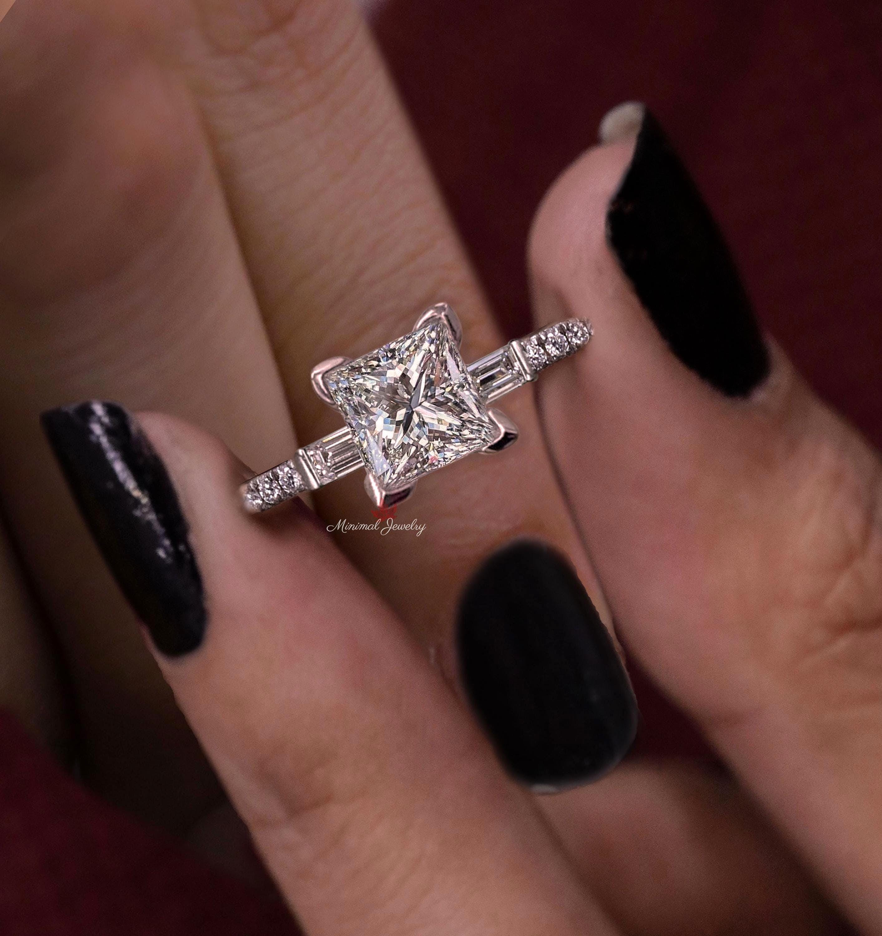 1.35 TCW Round Cut Moissani...1.3CT Princess Cut Lab Grown Diamond Ring Solitaire simple Engagement Ring IGI Certified diamond Wedding Ring Dainty promise ring for her