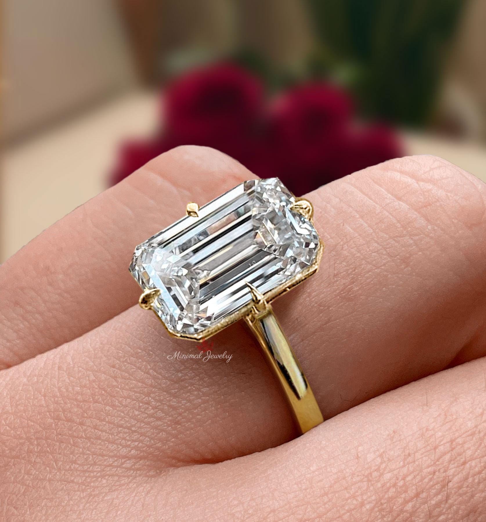 10 CT Lab grown diamond ring Emerald Cut Engagement Ring 14k gold IGI certified Large Diamond Statement Wedding anniversary Ring for women
