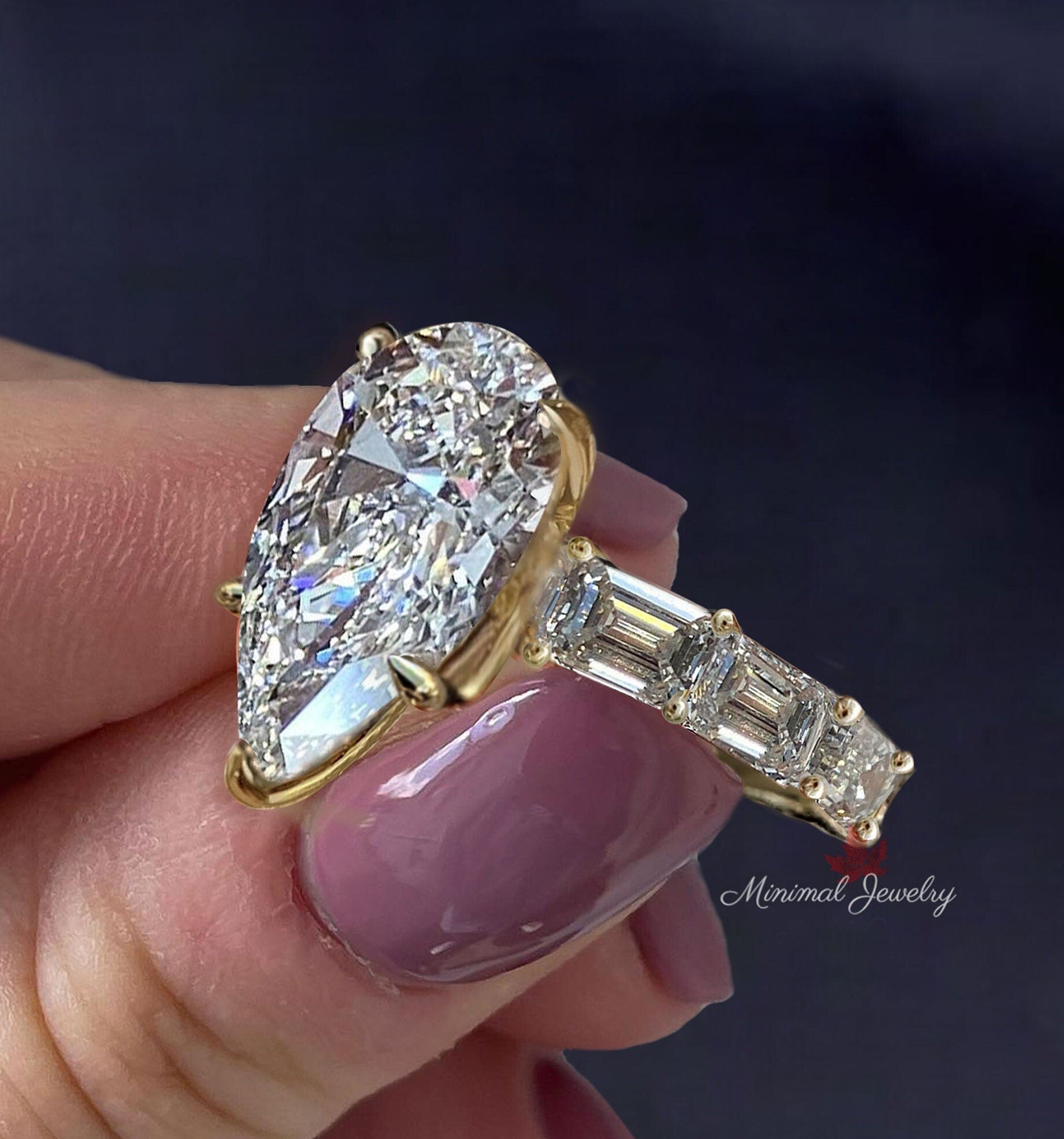 10 CT Pear shaped engagement ring big pear moissanite engagement ring unique wide eternity band,cocktail diamond teardrop ring wedding ring