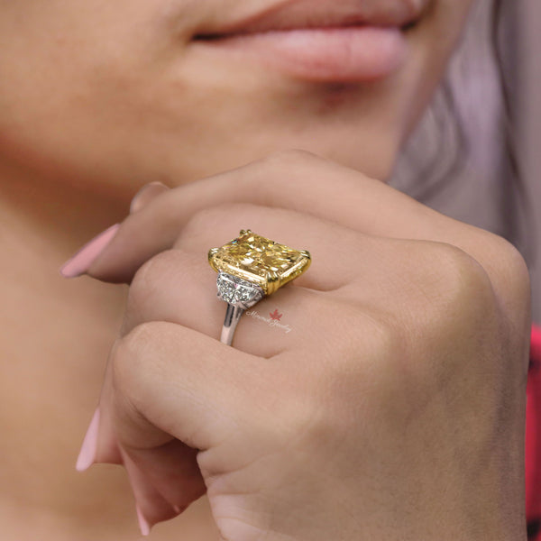 10CT Yellow Lab Grown Diamond Radiant Cut Engagement Ring IGI Certified Three Stone lab diamond Wedding Anniversary Ring two tone gold ring