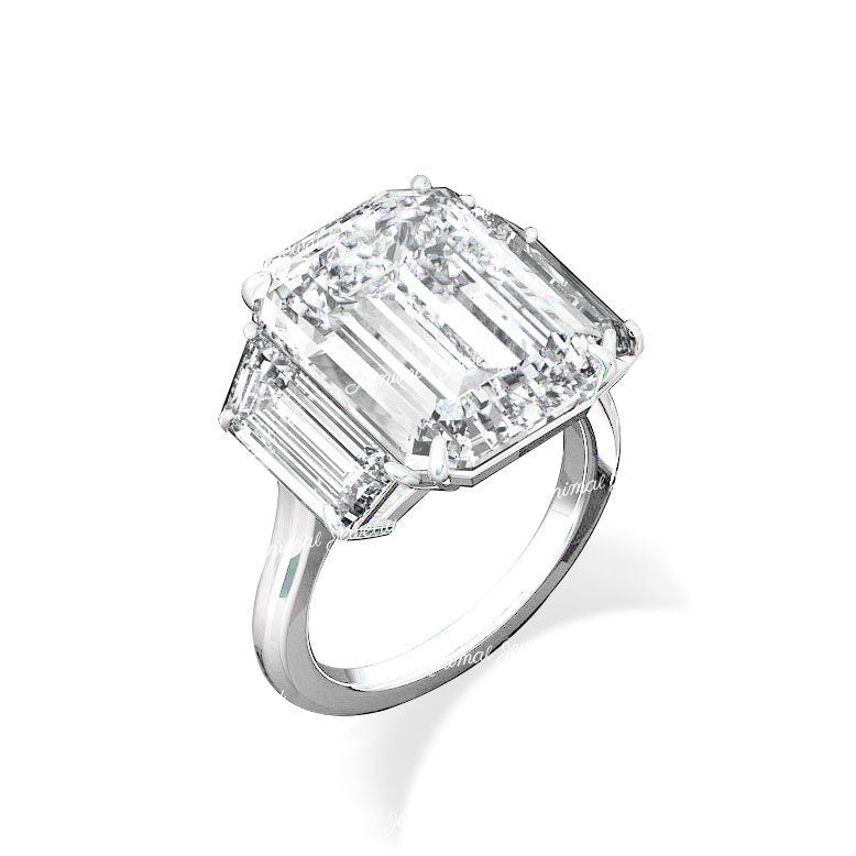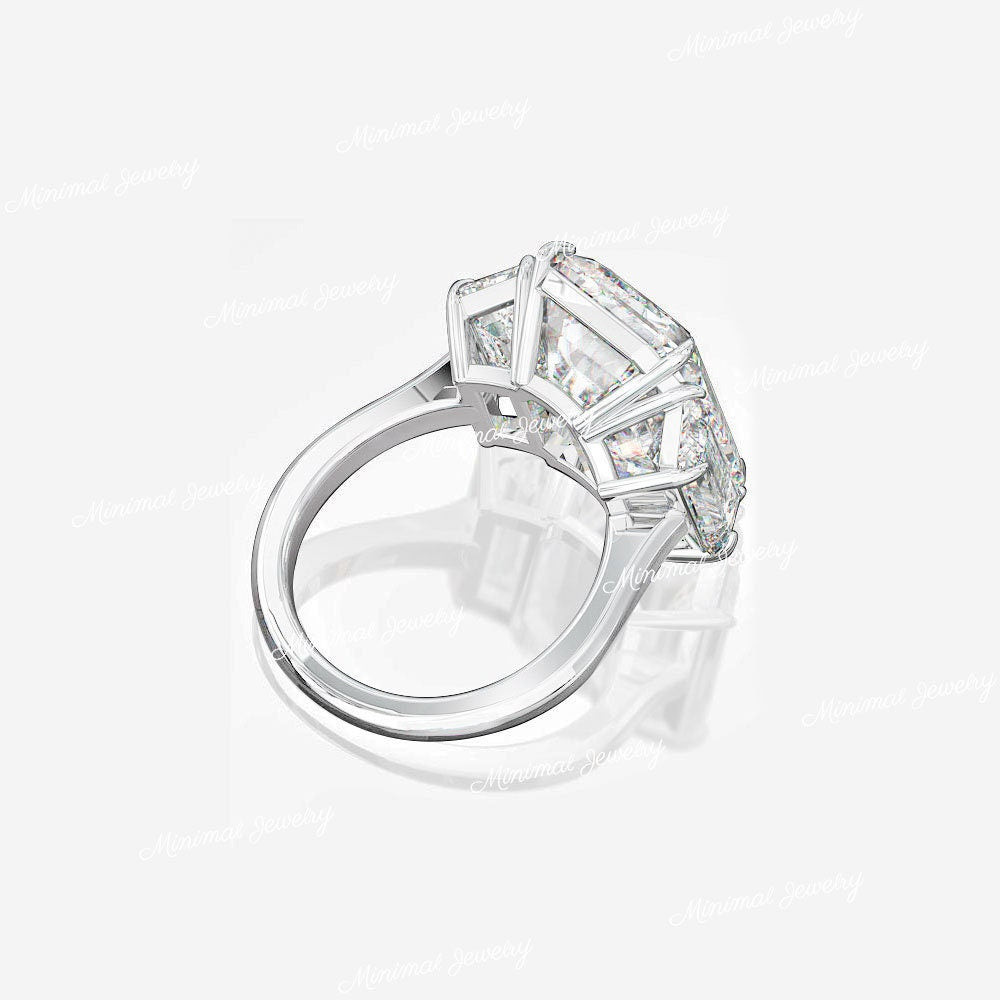 12.1TCW Three stone emerald cut moissanite ring,3 stone emerald cut engagement ring,white gold,big large celebrity style,unique wedding ring