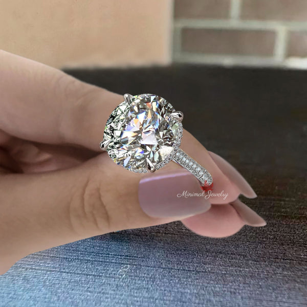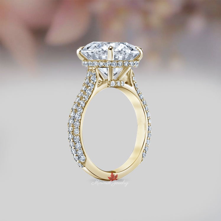 12CT Round Moissanite Wedding Ring for Women Hidden Halo 14K Gold Cathedral Anniversary Ring
