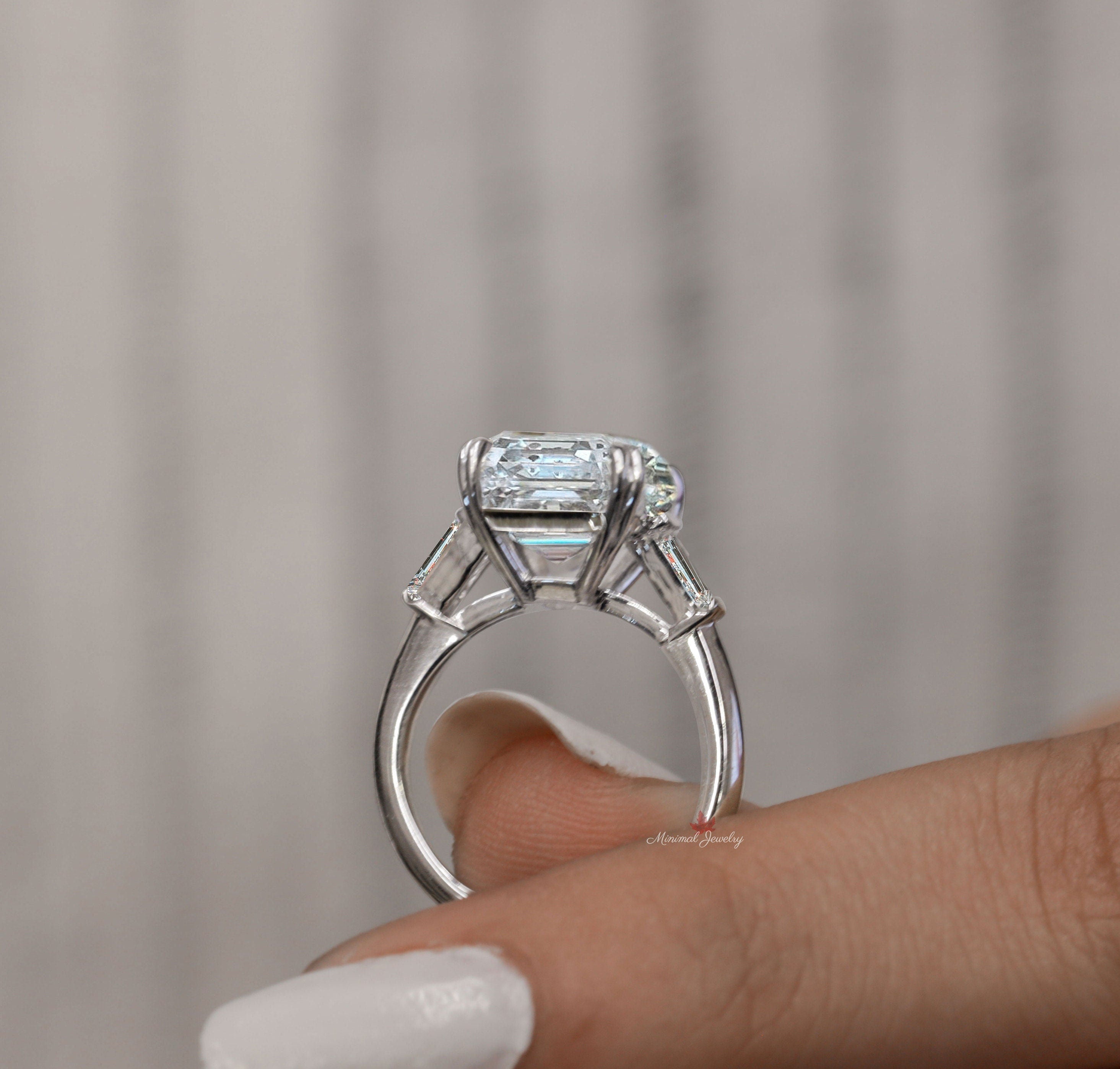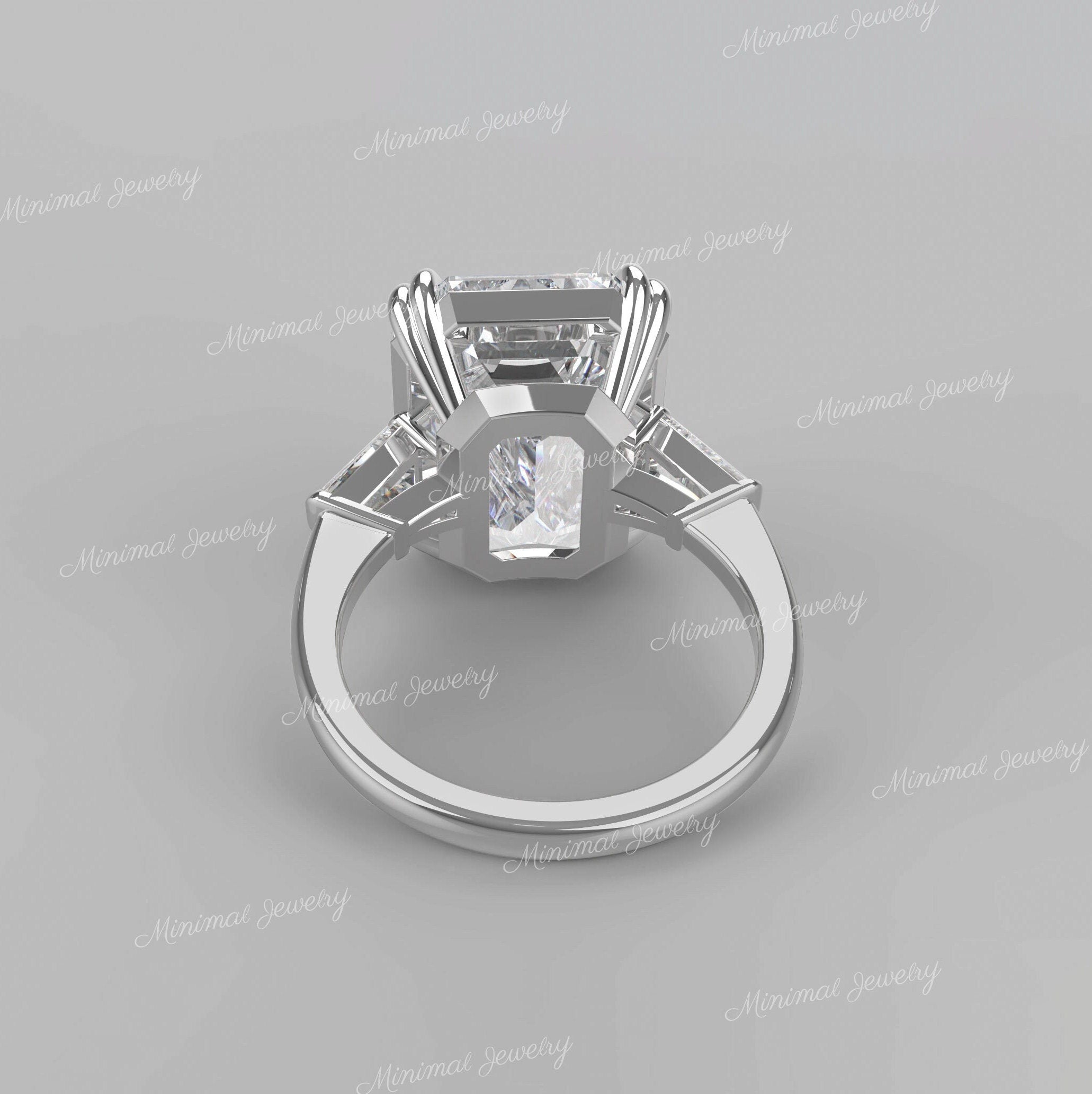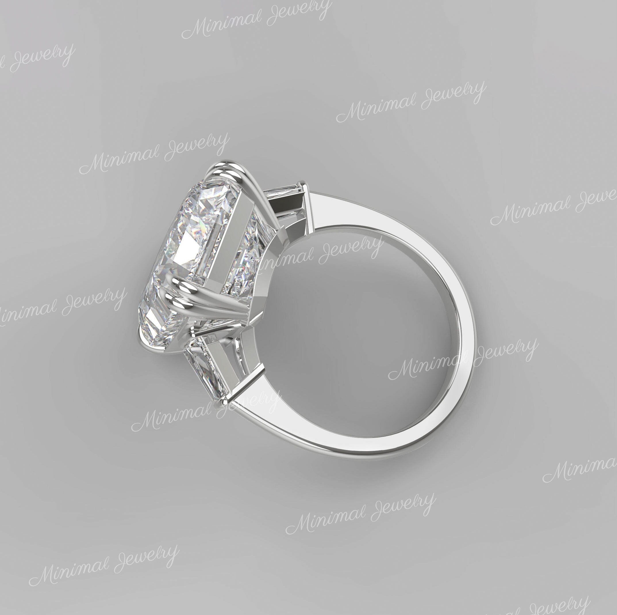 16 CT Three Stone moissanite emerald cut ring,celebrity style baguette&big large Emerald cut moissanite engagement ring 3 stone wedding ring