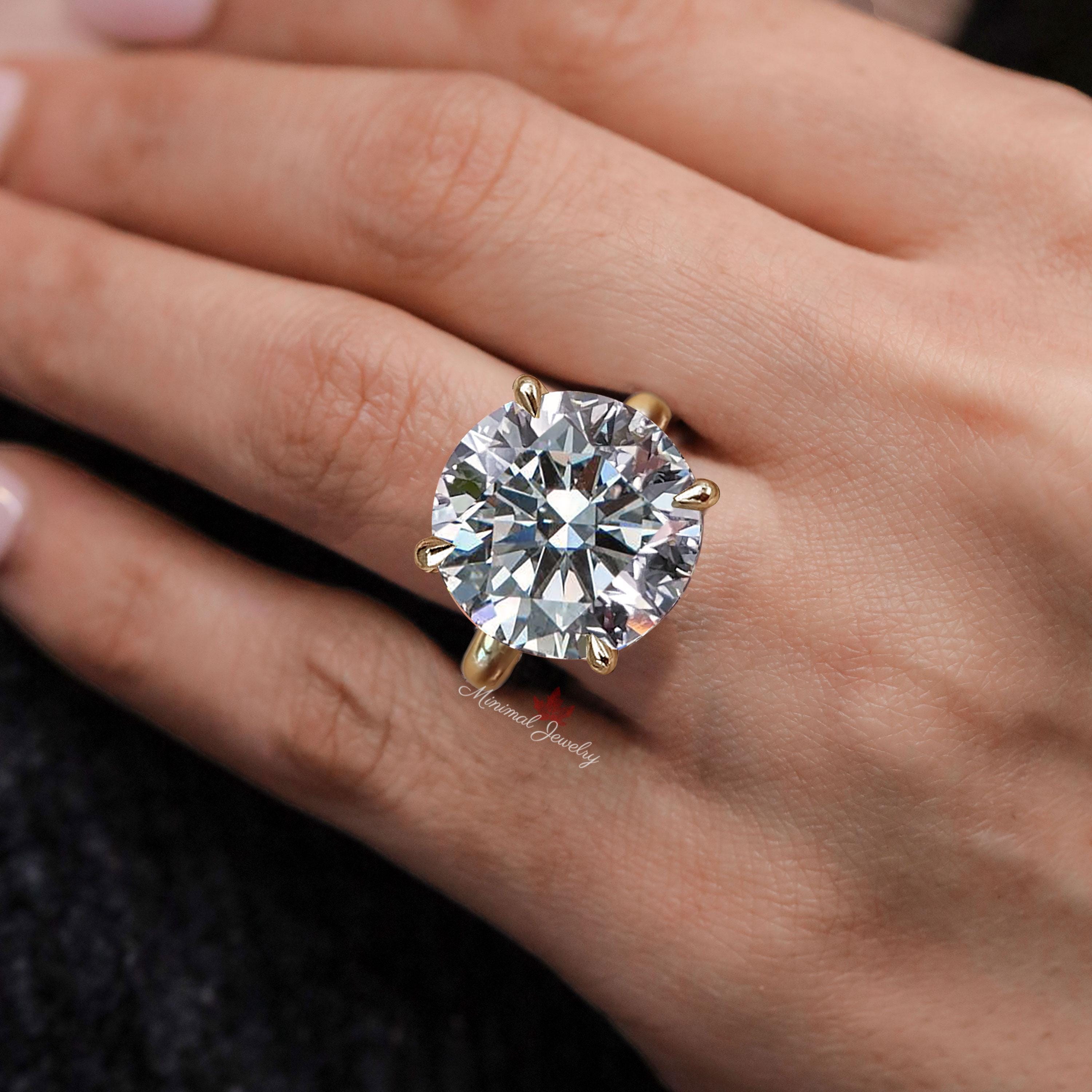 Handmade 17 CT Moissanite Engagement Ring Gold Large Solitaire Ring for Women Simple Cathedral Setting Big Diamond Wedding Anniversary Gift → Occasions: Engagement & Wedding DESCRIPTION -------------------- STYLE : Soliotaire / Halo • Moissanite Details Stone Type : Moissanite - High Quality Main Stone : Round Size (mm) : 16*16 Carat Weight : 17 Band & Halo & Side Stone : Round Size (mm) : 1.5 Carat Weight : 0.15 Stone Total CTW : 17.15 Color : Colorless Clarity : VVS Metal (Solid) : Silver,Gold,Platinum Band Width : 3 ▶ 𝐖𝐞𝐝𝐝𝐢𝐧𝐠 𝐁𝐚𝐧𝐝 𝐡𝐞𝐫𝐞 : https://bit.ly/Wedding_Band ▶ 𝐆𝐨 𝐓𝐨 𝐒𝐡𝐨𝐩 𝐒𝐞𝐜𝐭𝐢𝐨𝐧𝐬 𝐇𝐞𝐫𝐞 : ▶ Engagement Ring : https://bit.ly/EngagementRings_ ▶ Celebrity Style Ring : https://bit.ly/CelebrityStyleRing ▶ Diamond Hoop Earrings: https://bit.ly/DiamondHoopEarring ▶ Tennis Bracelet : https://bit.ly/TennisBraceletsx ▶ Tennis Necklace : https://bit.ly/TennisNecklaces 𝐅 𝐎 𝐋 𝐋 𝐎 𝐖 ∙ 𝐔 𝐒 Instagram : @minimaljewelryandco Facebook : @minimalmoissanitejewelry Pinterest : @minimaljewelryandco YouTube : @minimaljewelryandco 𝐖𝐚𝐫𝐫𝐚𝐧𝐭𝐲 𝐚𝐧𝐝 𝐒𝐞𝐫𝐯𝐢𝐜𝐞: ------------------------------ • We offer a 1 Year warranty on all our Jewelry. • We also provide paid service after completion of the warranty. 𝐓𝐡𝐚𝐧𝐤 𝐲𝐨𝐮 𝐟𝐨𝐫 𝐯𝐢𝐬𝐢𝐭𝐢𝐧𝐠 𝐨𝐮𝐫 𝐬𝐭𝐨𝐫𝐞, 𝐬𝐞𝐞 𝐲𝐨𝐮 𝐬𝐨𝐨𝐧. --------------------------------------------------------------