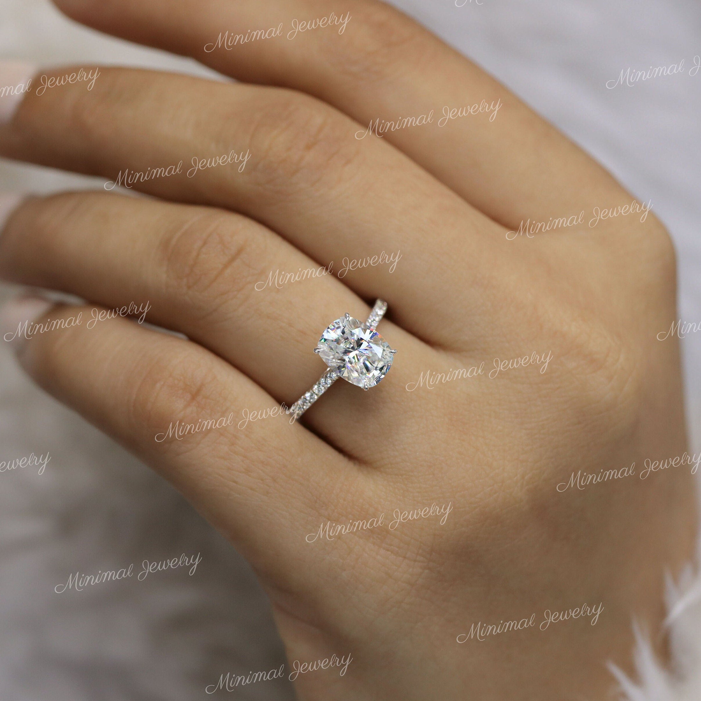 Handmade 2.5 CT cushion cut moissanite engagement ring,Cathedral ring set,hidden halo,pave bridge,unique elongated cushion solitaire ring,for bridal wedding ring,anniversary ring gift for women her → Occasions: Engagement & Wedding DESCRIPTION -------------------- STYLE : Solitaire/pave bridge/hidden halo/pave band/cathedral • Moissanite Details → Main Stone : cushion → Size (mm) : 9.5*7.5 → Carat Weight : 2.5 → Band & Halo & Side Stone : Round → Size (mm) : 1mm+1.3mm → Carat Weight : 0.75 → Stone Total CTW : 3.25 → Color : Colorless → Clarity : VVS → Metal : SOLID (10K/14K/18K )GOLD → Band Width : 1.5 mm ▶ 𝐖𝐞𝐝𝐝𝐢𝐧𝐠 𝐁𝐚𝐧𝐝 𝐡𝐞𝐫𝐞 : https://bit.ly/Wedding_Band ▶ 𝐆𝐨 𝐓𝐨 𝐒𝐡𝐨𝐩 𝐒𝐞𝐜𝐭𝐢𝐨𝐧𝐬 𝐇𝐞𝐫𝐞 : ▶ Engagement Ring : https://bit.ly/EngagementRings_ ▶ Celebrity Style Ring : https://bit.ly/CelebrityStyleRing ▶ Diamond Hoop Earrings: https://bit.ly/DiamondHoopEarring ▶ Tennis Bracelet : https://bit.ly/TennisBraceletsx ▶ Tennis Necklace : https://bit.ly/TennisNecklaces 𝐅 𝐎 𝐋 𝐋 𝐎 𝐖 ∙ 𝐔 𝐒 Instagram : @minimaljewelryandco Facebook : @minimalmoissanitejewelry Pinterest : @minimaljewelryandco YouTube : @minimaljewelryandco 𝐖𝐚𝐫𝐫𝐚𝐧𝐭𝐲 𝐚𝐧𝐝 𝐒𝐞𝐫𝐯𝐢𝐜𝐞: ------------------------------ • We offer a 1 Year warranty on all our Jewelry. • We also provide paid service after completion of the warranty. 𝐓𝐡𝐚𝐧𝐤 𝐲𝐨𝐮 𝐟𝐨𝐫 𝐯𝐢𝐬𝐢𝐭𝐢𝐧𝐠 𝐨𝐮𝐫 𝐬𝐭𝐨𝐫𝐞, 𝐬𝐞𝐞 𝐲𝐨𝐮 𝐬𝐨𝐨𝐧. --------------------------------------------------------------