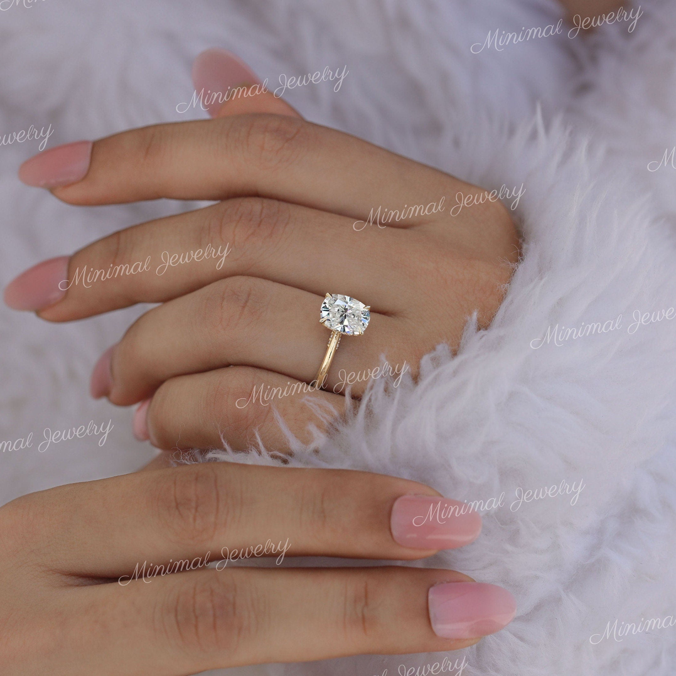 Handmade 2.5 Cushion cut moissanite engagement ring,Cathedral pave bridge set solitaire elongated cushion,hidden halo, plain gold dome band,stunning as bridal wedding ring,anniversary ring gift for women her → Occasions: Engagement & Wedding DESCRIPTION -------------------- STYLE : Solitaire/cathedral/Pave Bridge/Hidden Halo/dome band • Moissanite Details → Main Stone : Cushion → Size (mm) : 9.5*7.5 → Carat Weight : 2.5 → Band & Halo & Side Stone : Round → Size (mm) : 1mm+1.3mm → Carat Weight : 0.54 → Stone Total CTW : 3.04 → Color : Colorless → Clarity : VVS → Gold Purity : SOLID (10K/14K/18K )GOLD → Band Width : 1.7 mm ▶ 𝐖𝐞𝐝𝐝𝐢𝐧𝐠 𝐁𝐚𝐧𝐝 𝐡𝐞𝐫𝐞 : https://bit.ly/Wedding_Band ▶ 𝐆𝐨 𝐓𝐨 𝐒𝐡𝐨𝐩 𝐒𝐞𝐜𝐭𝐢𝐨𝐧𝐬 𝐇𝐞𝐫𝐞 : ▶ Engagement Ring : https://bit.ly/EngagementRings_ ▶ Celebrity Style Ring : https://bit.ly/CelebrityStyleRing ▶ Diamond Hoop Earrings: https://bit.ly/DiamondHoopEarring ▶ Tennis Bracelet : https://bit.ly/TennisBraceletsx ▶ Tennis Necklace : https://bit.ly/TennisNecklaces 𝐅 𝐎 𝐋 𝐋 𝐎 𝐖 ∙ 𝐔 𝐒 Instagram : @minimaljewelryandco Facebook : @minimalmoissanitejewelry Pinterest : @minimaljewelryandco YouTube : @minimaljewelryandco 𝐖𝐚𝐫𝐫𝐚𝐧𝐭𝐲 𝐚𝐧𝐝 𝐒𝐞𝐫𝐯𝐢𝐜𝐞: ------------------------------ • We offer a 1 Year warranty on all our Jewelry. • We also provide paid service after completion of the warranty. 𝐓𝐡𝐚𝐧𝐤 𝐲𝐨𝐮 𝐟𝐨𝐫 𝐯𝐢𝐬𝐢𝐭𝐢𝐧𝐠 𝐨𝐮𝐫 𝐬𝐭𝐨𝐫𝐞, 𝐬𝐞𝐞 𝐲𝐨𝐮 𝐬𝐨𝐨𝐧. --------------------------------------------------------------