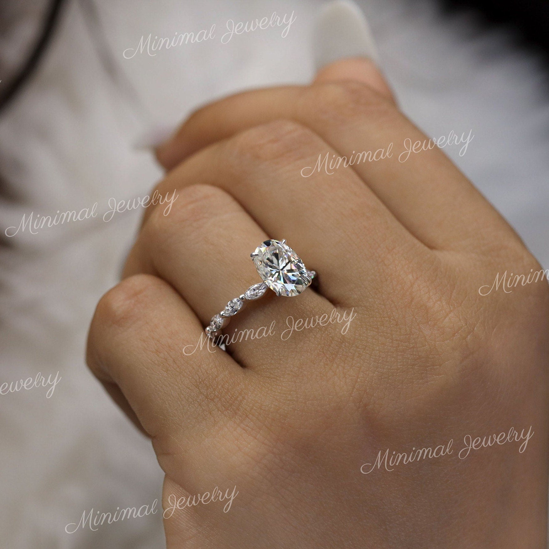 Handmade 2.5 CT oval moissanite engagement ring,hidden halo,unique,oval solitaire ring,14k white gold,oval cut moissanite ring,wedding ring for women → Purchasing for: Engagement Ring, Wedding Ring, anniversary gift, Promise Ring, Diamond Ring → Occasions: Engagement & Wedding DESCRIPTION -------------------- STYLE : Solitaire/unique eternity marquise band/hidden Halo • Moissanite Details → Main Stone : Oval → Size (mm) : 10.5*7.5 → Carat Weight : 2.5 → Band & Halo & Side Stone : Round+Marquish → Size (mm) : 1mm + 4*2mm → Carat Weight : 1 → Stone Total CTW : 3.5 → Color : Colorless → Clarity : VVS → Gold Purity : SOLID (10K/14K/18K )GOLD → Band Width : 1.7 mm ▶ 𝐖𝐞𝐝𝐝𝐢𝐧𝐠 𝐁𝐚𝐧𝐝 𝐡𝐞𝐫𝐞 : https://bit.ly/Wedding_Band ▶ 𝐆𝐨 𝐓𝐨 𝐒𝐡𝐨𝐩 𝐒𝐞𝐜𝐭𝐢𝐨𝐧𝐬 𝐇𝐞𝐫𝐞 : ▶ Engagement Ring : https://bit.ly/EngagementRings_ ▶ Celebrity Style Ring : https://bit.ly/CelebrityStyleRing ▶ Diamond Hoop Earrings: https://bit.ly/DiamondHoopEarring ▶ Tennis Bracelet : https://bit.ly/TennisBraceletsx ▶ Tennis Necklace : https://bit.ly/TennisNecklaces 𝐅 𝐎 𝐋 𝐋 𝐎 𝐖 ∙ 𝐔 𝐒 Instagram : @minimaljewelryandco Facebook : @minimalmoissanitejewelry Pinterest : @minimaljewelryandco YouTube : @minimaljewelryandco 𝐖𝐚𝐫𝐫𝐚𝐧𝐭𝐲 𝐚𝐧𝐝 𝐒𝐞𝐫𝐯𝐢𝐜𝐞: ------------------------------ • We offer a 1 Year warranty on all our Jewelry. • We also provide paid service after completion of the warranty. 𝐓𝐡𝐚𝐧𝐤 𝐲𝐨𝐮 𝐟𝐨𝐫 𝐯𝐢𝐬𝐢𝐭𝐢𝐧𝐠 𝐨𝐮𝐫 𝐬𝐭𝐨𝐫𝐞, 𝐬𝐞𝐞 𝐲𝐨𝐮 𝐬𝐨𝐨𝐧. --------------------------------------------------------------