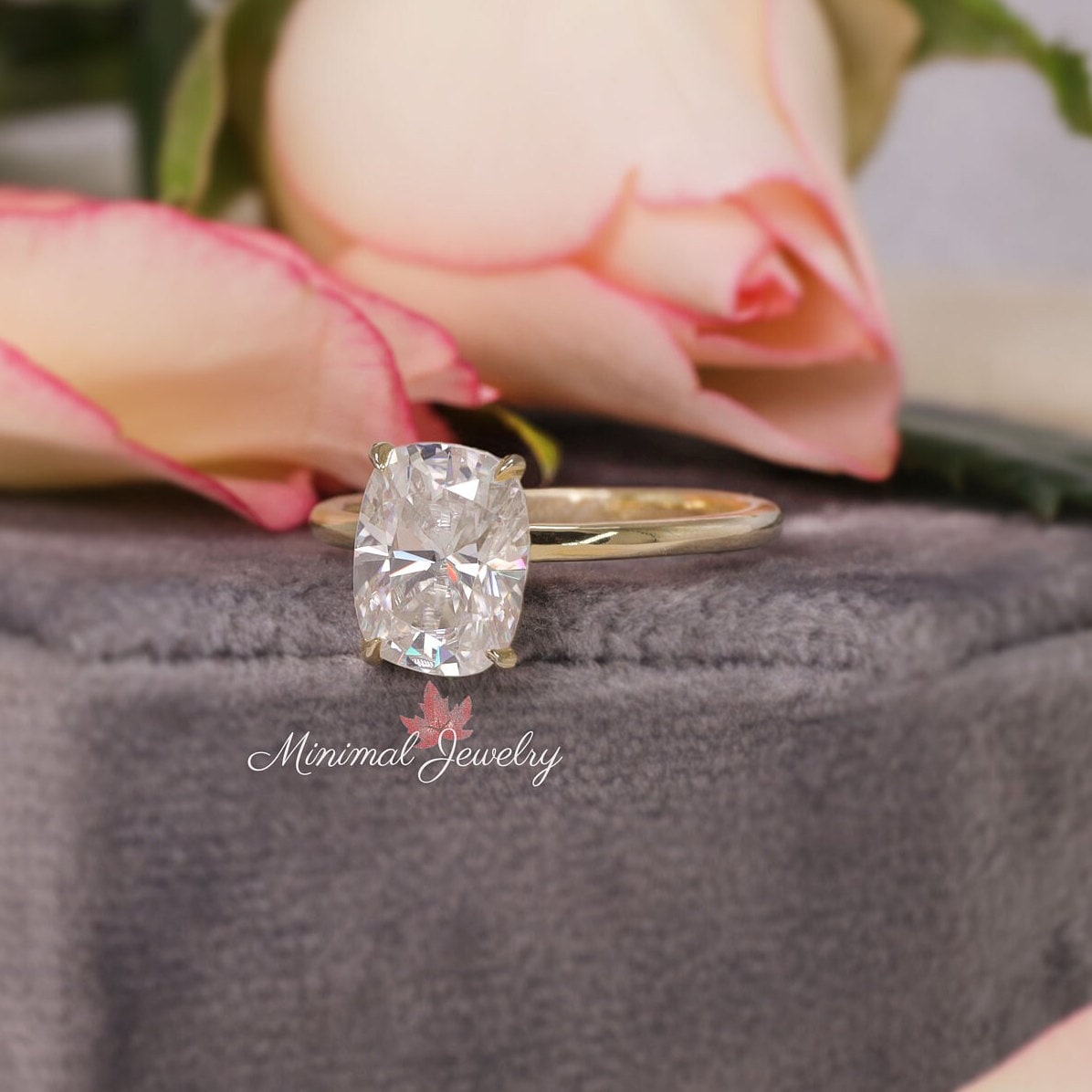 Handmade 2.5 CT cushion cut moissanite engagement ring•solitaire elongated cushion moissanite...