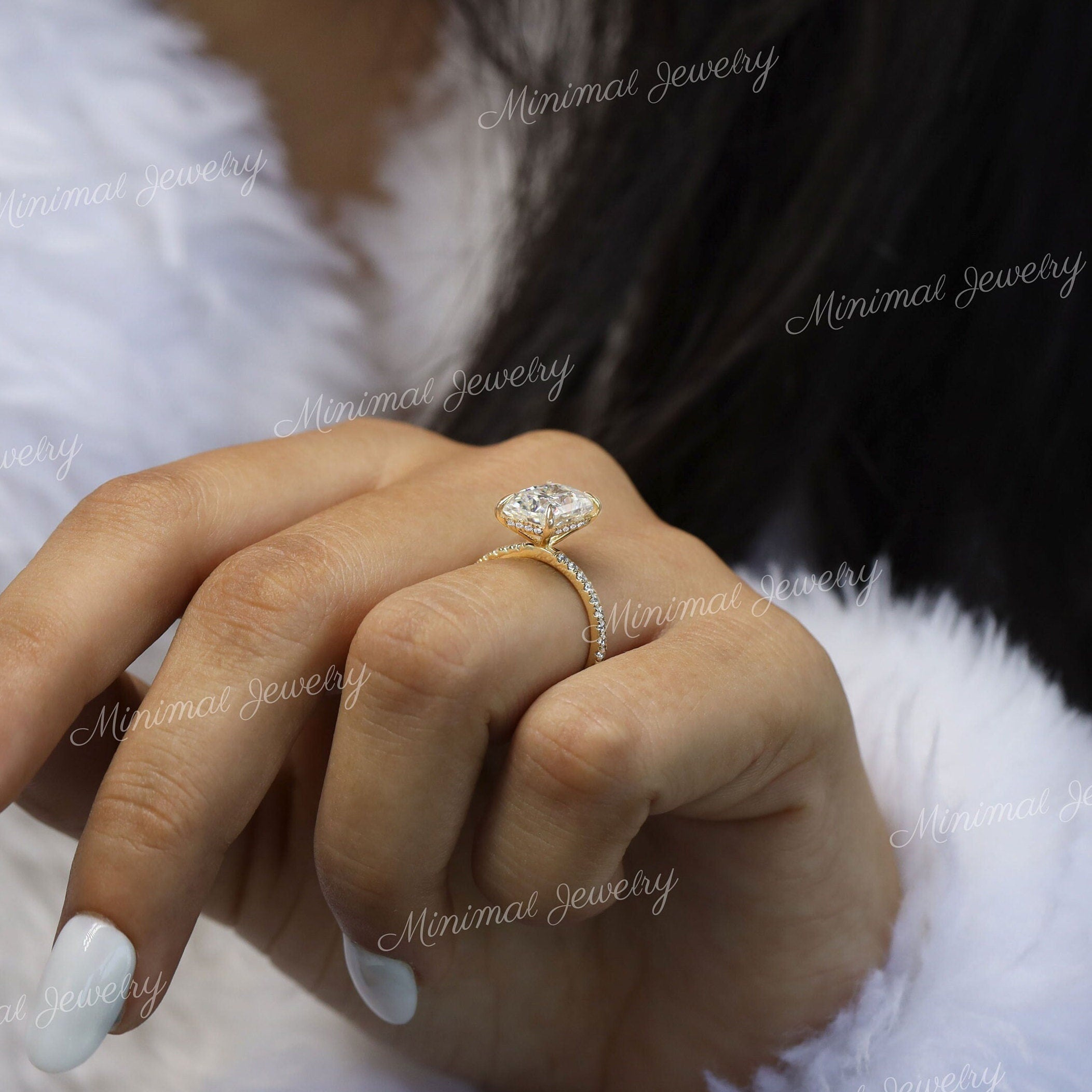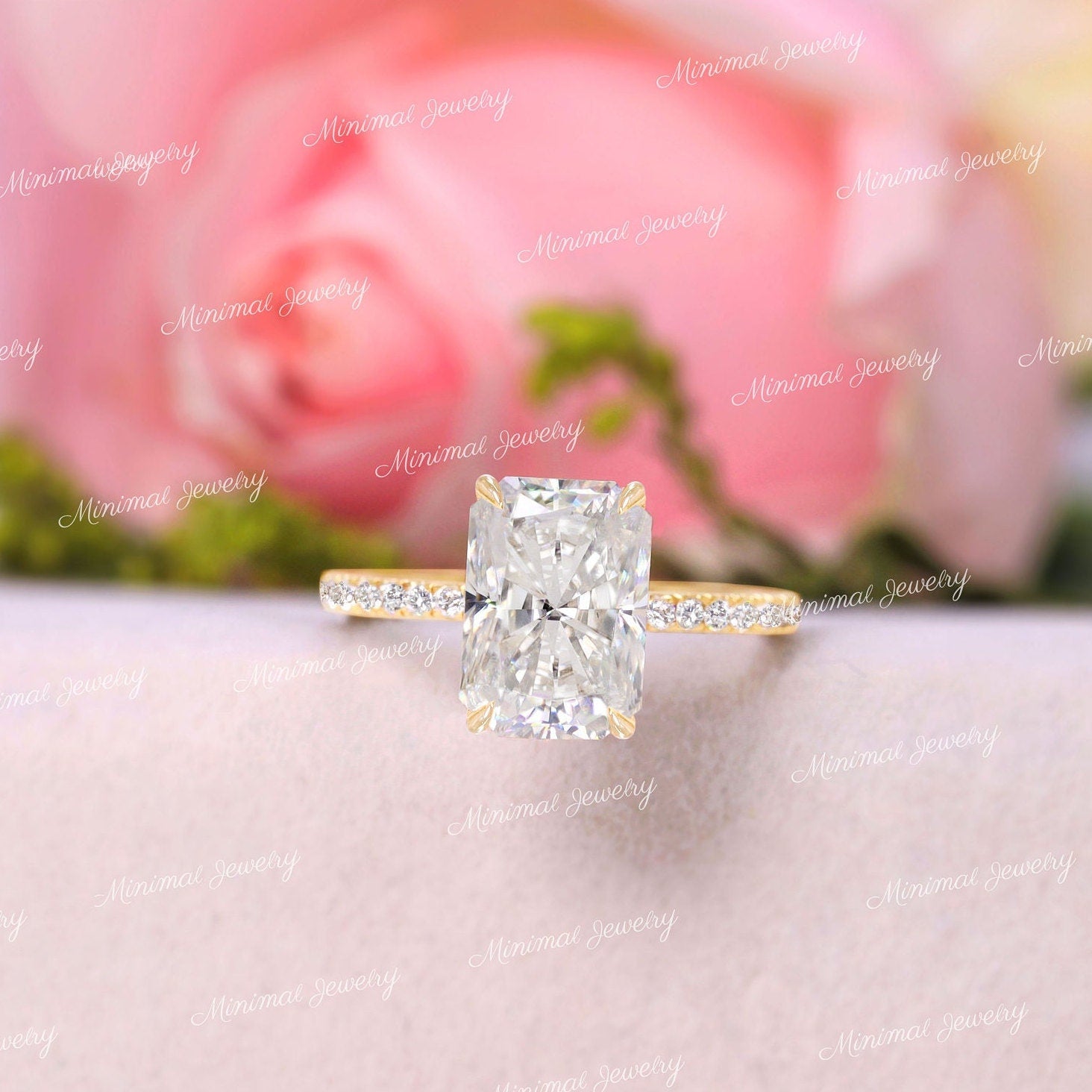 Handmade 2.7 CT radiant cut moissanite engagement ring,solitaire pave setting,hidden halo,1.5 mm thin band,bridal wedding ring,anniversary ring gift for women her → Occasions: Engagement & Wedding DESCRIPTION -------------------- STYLE : Solitaire/Hidden Halo/Pave band • Moissanite Details → Main Stone : Radiant → Size (mm) : 9.15*7.15 → Carat Weight : 2.7 → Band & Halo & Side Stone : Round → Size (mm) : 1mm+1.3mm → Carat Weight : 0.65 → Stone Total CTW : 3.35 → Color : Colorless → Clarity : VVS → Gold Purity : SOLID (10K/14K/18K )GOLD → Band Width : 1.7 mm ▶ 𝐖𝐞𝐝𝐝𝐢𝐧𝐠 𝐁𝐚𝐧𝐝 𝐡𝐞𝐫𝐞 : https://bit.ly/Wedding_Band ▶ 𝐆𝐨 𝐓𝐨 𝐒𝐡𝐨𝐩 𝐒𝐞𝐜𝐭𝐢𝐨𝐧𝐬 𝐇𝐞𝐫𝐞 : ▶ Engagement Ring : https://bit.ly/EngagementRings_ ▶ Celebrity Style Ring : https://bit.ly/CelebrityStyleRing ▶ Diamond Hoop Earrings: https://bit.ly/DiamondHoopEarring ▶ Tennis Bracelet : https://bit.ly/TennisBraceletsx ▶ Tennis Necklace : https://bit.ly/TennisNecklaces 𝐅 𝐎 𝐋 𝐋 𝐎 𝐖 ∙ 𝐔 𝐒 Instagram : @minimaljewelryandco Facebook : @minimalmoissanitejewelry Pinterest : @minimaljewelryandco YouTube : @minimaljewelryandco 𝐖𝐚𝐫𝐫𝐚𝐧𝐭𝐲 𝐚𝐧𝐝 𝐒𝐞𝐫𝐯𝐢𝐜𝐞: ------------------------------ • We offer a 1 Year warranty on all our Jewelry. • We also provide paid service after completion of the warranty. 𝐓𝐡𝐚𝐧𝐤 𝐲𝐨𝐮 𝐟𝐨𝐫 𝐯𝐢𝐬𝐢𝐭𝐢𝐧𝐠 𝐨𝐮𝐫 𝐬𝐭𝐨𝐫𝐞, 𝐬𝐞𝐞 𝐲𝐨𝐮 𝐬𝐨𝐨𝐧. --------------------------------------------------------------