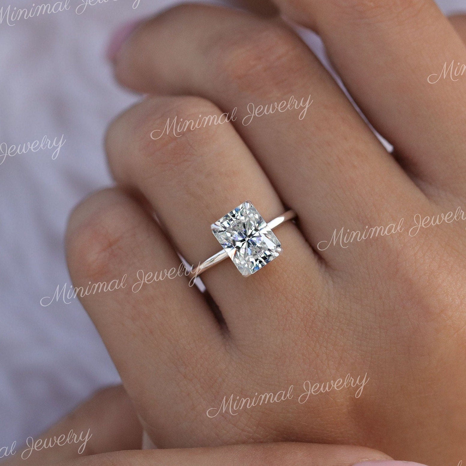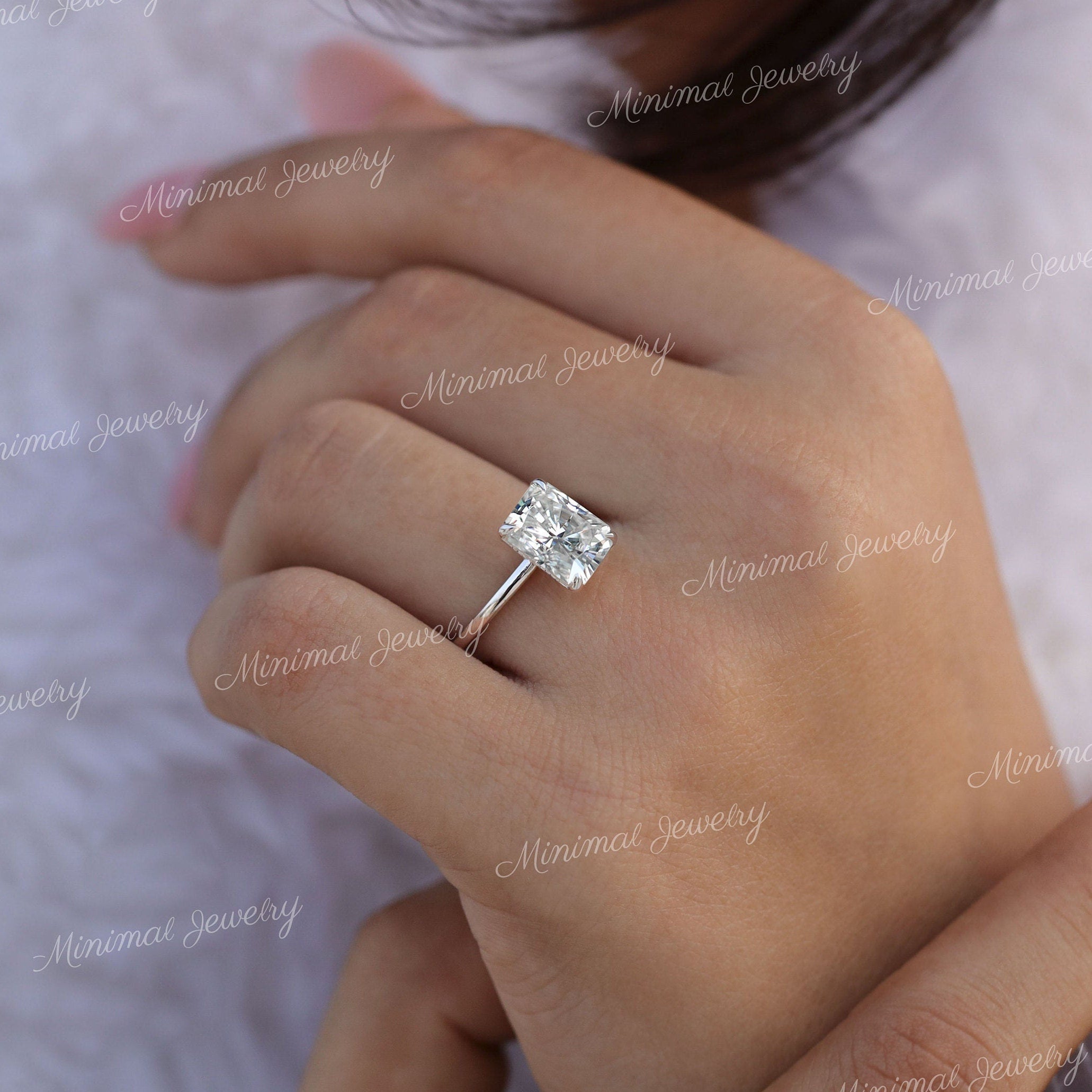 Handmade 2.7 CT radiant cut moissanite engagement ring,solitaire setting,14k white gold,palin gold band,hidden halo ring,trendy ring as bridal wedding ring,anniversary ring gift for women her → Occasions: Engagement & Wedding DESCRIPTION -------------------- STYLE : Solitaire/Hidden Halo • Moissanite Details → Main Stone : Radiant → Size (mm) : 9.15*7.15 → Carat Weight : 2.7 → Band & Halo & Side Stone : Round → Size (mm) : 1mm → Carat Weight : 0.17 → Stone Total CTW : 2.87 → Color : Colorless → Clarity : VVS → Gold Purity : SOLID (10K/14K/18K )GOLD → Band Width : 1.7 mm ▶ 𝐖𝐞𝐝𝐝𝐢𝐧𝐠 𝐁𝐚𝐧𝐝 𝐡𝐞𝐫𝐞 : https://bit.ly/Wedding_Band ▶ 𝐆𝐨 𝐓𝐨 𝐒𝐡𝐨𝐩 𝐒𝐞𝐜𝐭𝐢𝐨𝐧𝐬 𝐇𝐞𝐫𝐞 : ▶ Engagement Ring : https://bit.ly/EngagementRings_ ▶ Celebrity Style Ring : https://bit.ly/CelebrityStyleRing ▶ Diamond Hoop Earrings: https://bit.ly/DiamondHoopEarring ▶ Tennis Bracelet : https://bit.ly/TennisBraceletsx ▶ Tennis Necklace : https://bit.ly/TennisNecklaces 𝐅 𝐎 𝐋 𝐋 𝐎 𝐖 ∙ 𝐔 𝐒 Instagram : @minimaljewelryandco Facebook : @minimalmoissanitejewelry Pinterest : @minimaljewelryandco YouTube : @minimaljewelryandco 𝐖𝐚𝐫𝐫𝐚𝐧𝐭𝐲 𝐚𝐧𝐝 𝐒𝐞𝐫𝐯𝐢𝐜𝐞: ------------------------------ • We offer a 1 Year warranty on all our Jewelry. • We also provide paid service after completion of the warranty. 𝐓𝐡𝐚𝐧𝐤 𝐲𝐨𝐮 𝐟𝐨𝐫 𝐯𝐢𝐬𝐢𝐭𝐢𝐧𝐠 𝐨𝐮𝐫 𝐬𝐭𝐨𝐫𝐞, 𝐬𝐞𝐞 𝐲𝐨𝐮 𝐬𝐨𝐨𝐧. --------------------------------------------------------------