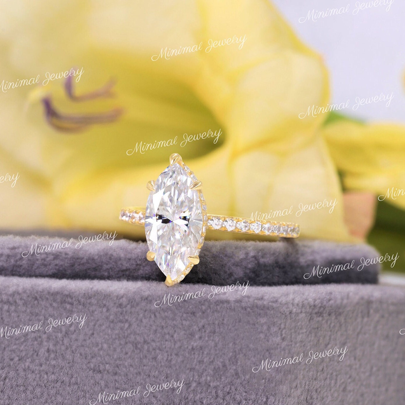 Handmade 2 CT marquise moissanite engagement ring,hidden halo cathedral ring set,marquise cut solitaire ring,modern unique,bridal wedding ring,anniversary ring gift for women her,propose ring → Occasions: Engagement & Wedding DESCRIPTION -------------------- STYLE : cathedral /Solitaire/pave band/hidden halo • Moissanite Details → Main Stone : Marquise → Size (mm) : 12*6 → Carat Weight : 2 → Band & Halo & Side Stone : Round → Size (mm) : 1mm+1.2mm → Carat Weight : 0.65 → Stone Total CTW : 2.65 → Color : Colorless → Clarity : VVS → Gold Purity : SOLID (10K/14K/18K )GOLD → Band Width : 1.7 mm ▶ 𝐖𝐞𝐝𝐝𝐢𝐧𝐠 𝐁𝐚𝐧𝐝 𝐡𝐞𝐫𝐞 : https://bit.ly/Wedding_Band ▶ 𝐆𝐨 𝐓𝐨 𝐒𝐡𝐨𝐩 𝐒𝐞𝐜𝐭𝐢𝐨𝐧𝐬 𝐇𝐞𝐫𝐞 : ▶ Engagement Ring : https://bit.ly/EngagementRings_ ▶ Celebrity Style Ring : https://bit.ly/CelebrityStyleRing ▶ Diamond Hoop Earrings: https://bit.ly/DiamondHoopEarring ▶ Tennis Bracelet : https://bit.ly/TennisBraceletsx ▶ Tennis Necklace : https://bit.ly/TennisNecklaces 𝐅 𝐎 𝐋 𝐋 𝐎 𝐖 ∙ 𝐔 𝐒 Instagram : @minimaljewelryandco Facebook : @minimalmoissanitejewelry Pinterest : @minimaljewelryandco YouTube : @minimaljewelryandco 𝐖𝐚𝐫𝐫𝐚𝐧𝐭𝐲 𝐚𝐧𝐝 𝐒𝐞𝐫𝐯𝐢𝐜𝐞: ------------------------------ • We offer a 1 Year warranty on all our Jewelry. • We also provide paid service after completion of the warranty. 𝐓𝐡𝐚𝐧𝐤 𝐲𝐨𝐮 𝐟𝐨𝐫 𝐯𝐢𝐬𝐢𝐭𝐢𝐧𝐠 𝐨𝐮𝐫 𝐬𝐭𝐨𝐫𝐞, 𝐬𝐞𝐞 𝐲𝐨𝐮 𝐬𝐨𝐨𝐧. --------------------------------------------------------------