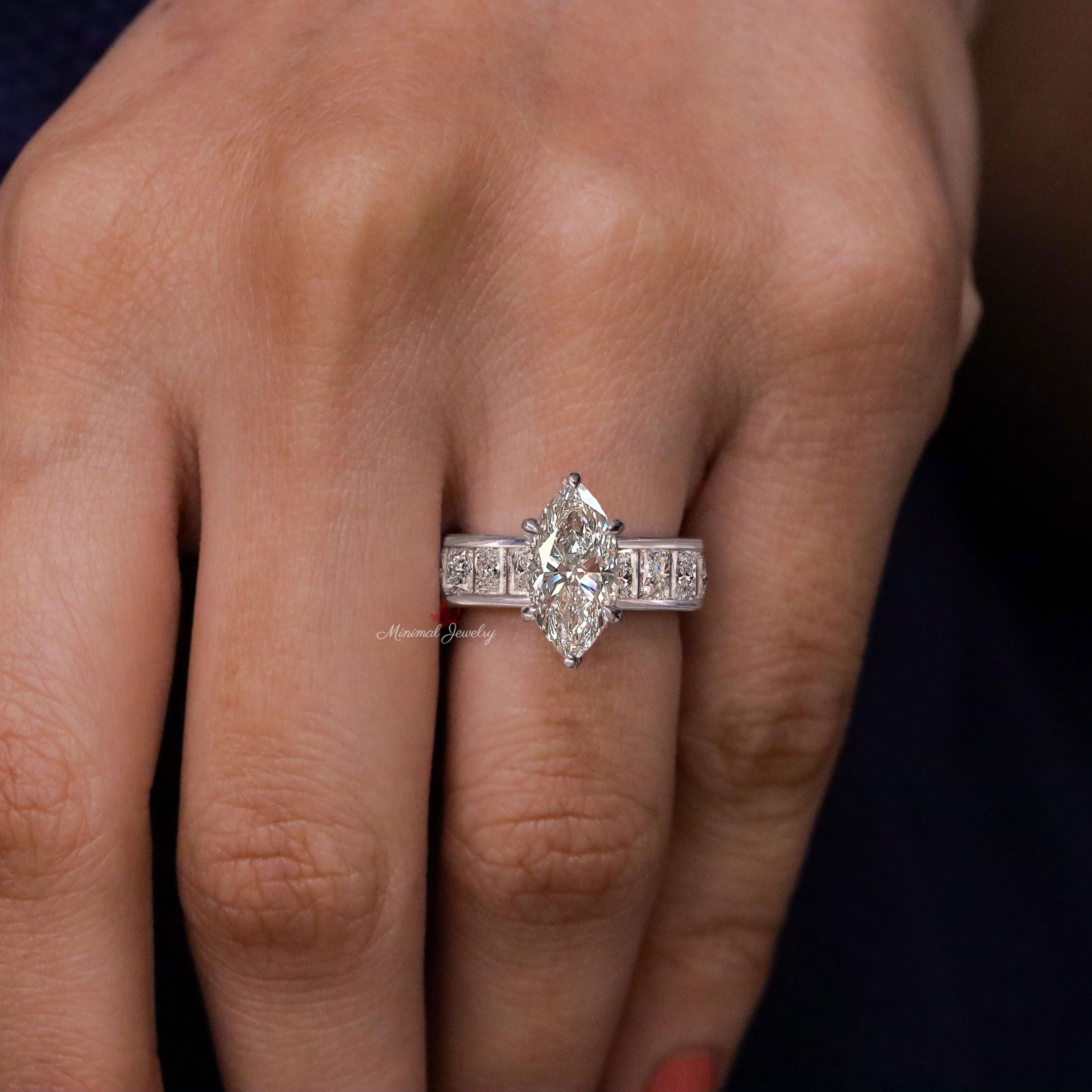 2CT Marquise Moissanite Engagement Ring channel set Solitaire eternity wide band Wedding Ring White Gold Bridal Ring Anniversary Gift ring