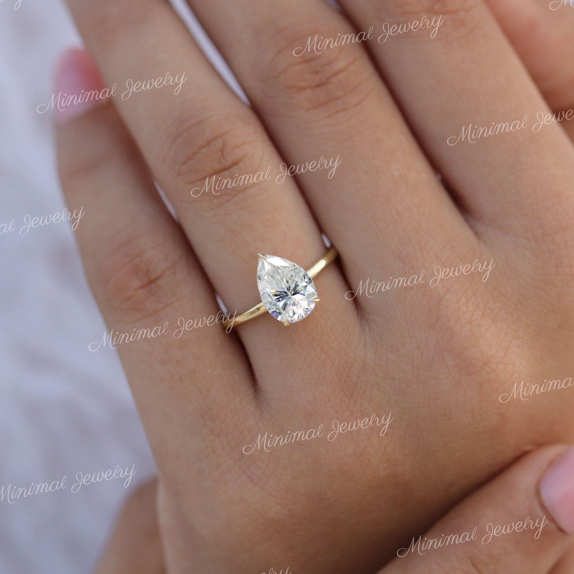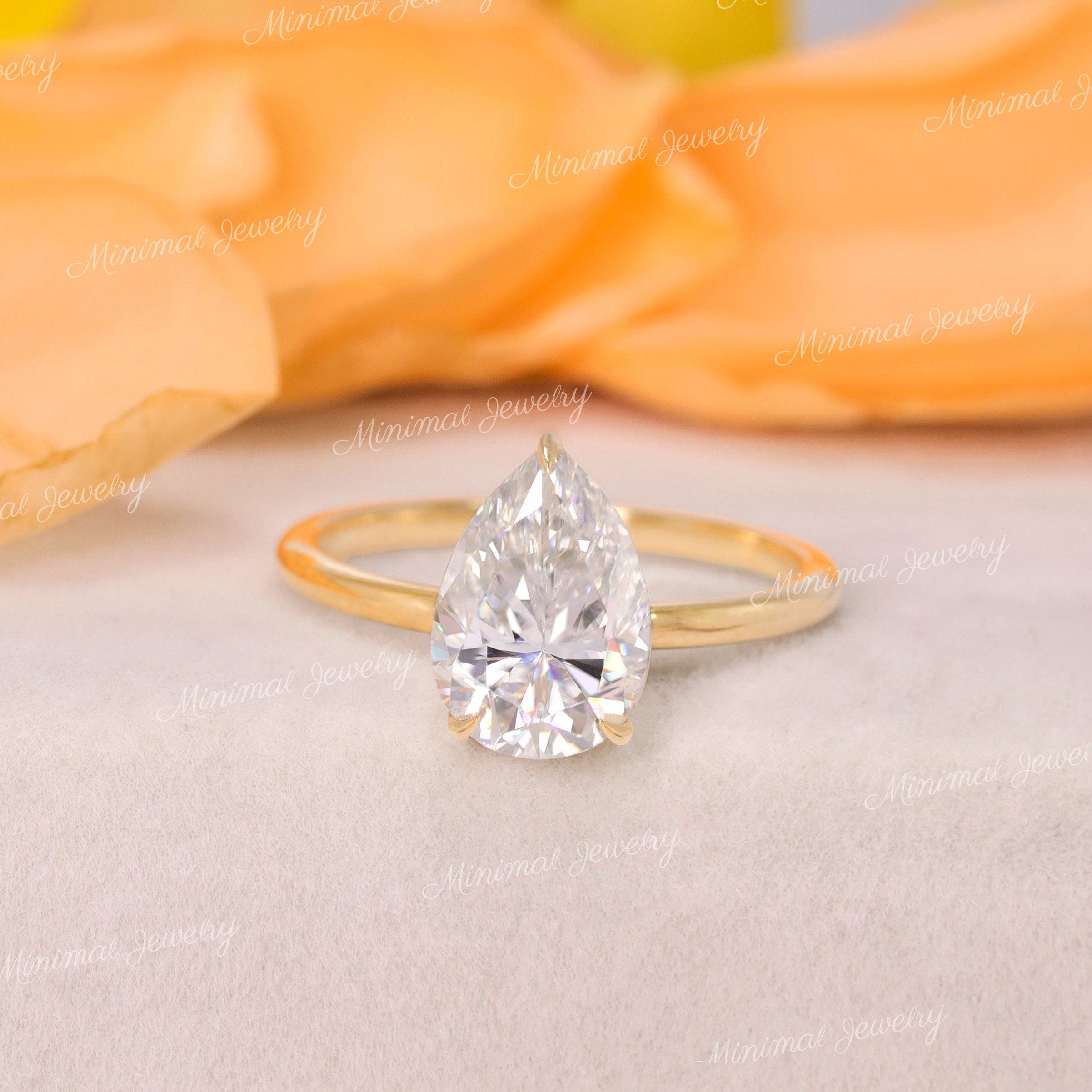 2CT Pear shaped engagement ring,moissanite teardrop ring,classy,simple engagement ring,solitaire pear moissanite ring,14k yellow rose gold