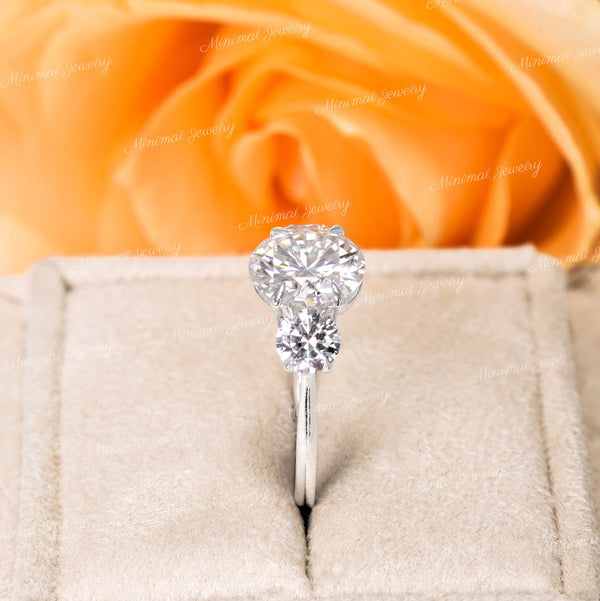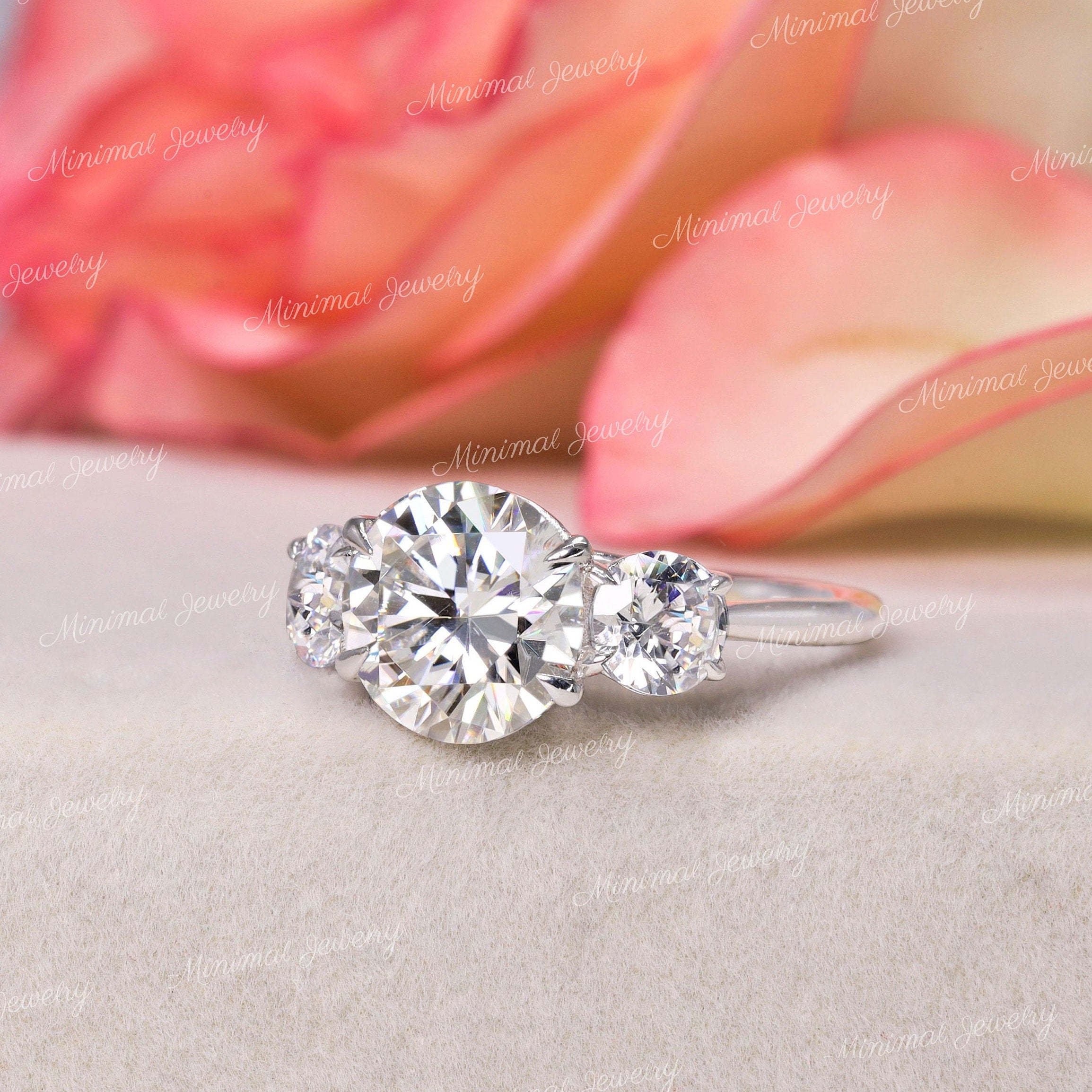 3.48 TCW three stone moissanite ring,round cut trellis engagement ring,14k white gold,past present future anniversary ring,triple stone ring