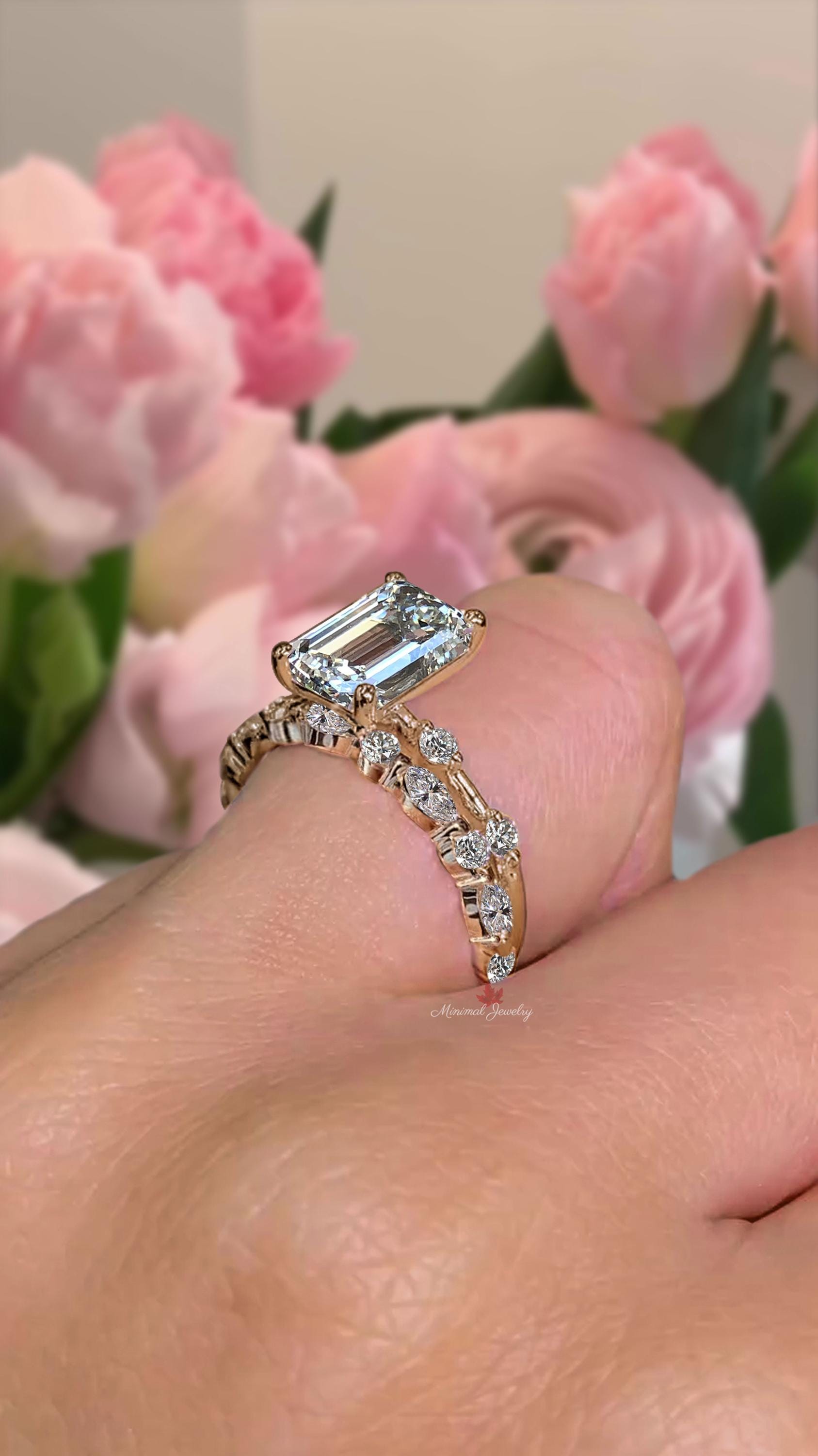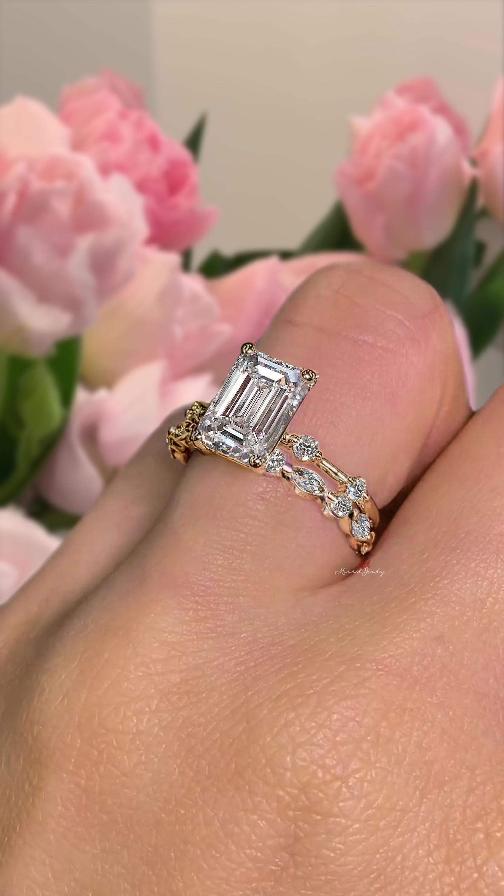 Handmade 3 CT Emerald cut lab grown diamond ring set lab created diamond engagement ring set CVD diamond ring wedding ring set 1st anniversary gift DESCRIPTION -------------------- STYLE : Solitaire • Diamond Details Stone Type : Lab Grown Diamond Stone Cut : Emerald Stone Carat : 3 Stone Size (mm) : 10*7 Color : G-H (For D-E-F color • VVS clarity 💎 DM us) Clarity : VS1/VS2 Ring other Stone : Round Carat Weight : 0.2 Matching Band Stone : Marquise + Round Carat Weight : 0.6 Stone Total CTW : 3.8 Metal (Solid) : Silver,Gold,Platinum Band Width : 1.8 ▶ Wedding Band here : https://bit.ly/Wedding_Band ▶ Go To Shop Sections Here : ▶ Engagement Ring : https://bit.ly/EngagementRings_ ▶ Celebrity Style Ring : https://bit.ly/CelebrityStyleRing ▶ Diamond Hoop Earrings: https://bit.ly/DiamondHoopEarring ▶ Tennis Bracelet : https://bit.ly/TennisBraceletsx ▶ Tennis Necklace : https://bit.ly/TennisNecklaces F O L L O W ∙ U S Instagram : @minimaljewelryandco Facebook : @minimalmoissanitejewelry Pinterest : @minimaljewelryandco YouTube : @minimaljewelryandco Warranty and Service: ------------------------------ • We offer a 1 Year warranty on all our Jewelry. • We also provide paid service after completion of the warranty. Thank you for visiting our store, see you soon. --------------------------------------------------------------