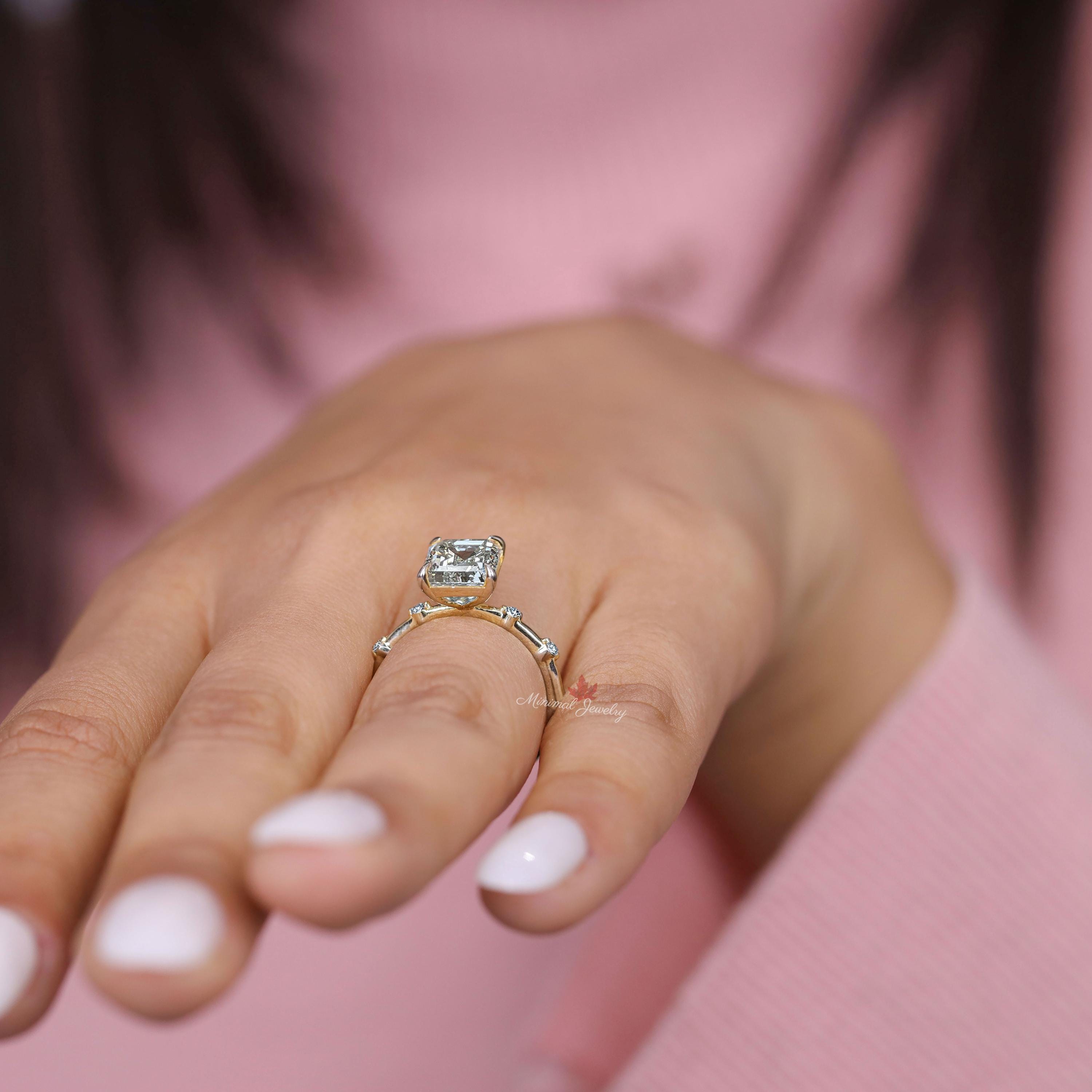 Handmade 3 CT Emerald cut lab grown diamond ring set lab...