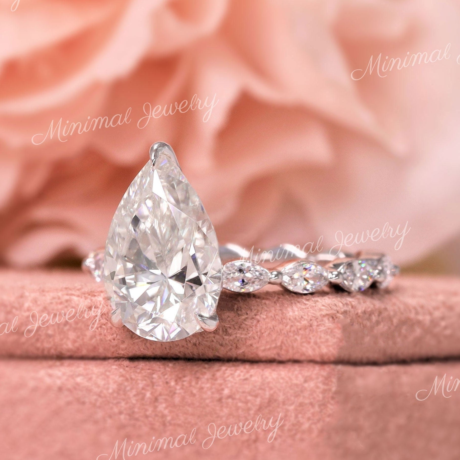 3 CT pear shaped engagement ring solitaire pear moissanite ring hidden halo unique vintage style engagement ring 14k white gold wedding ring