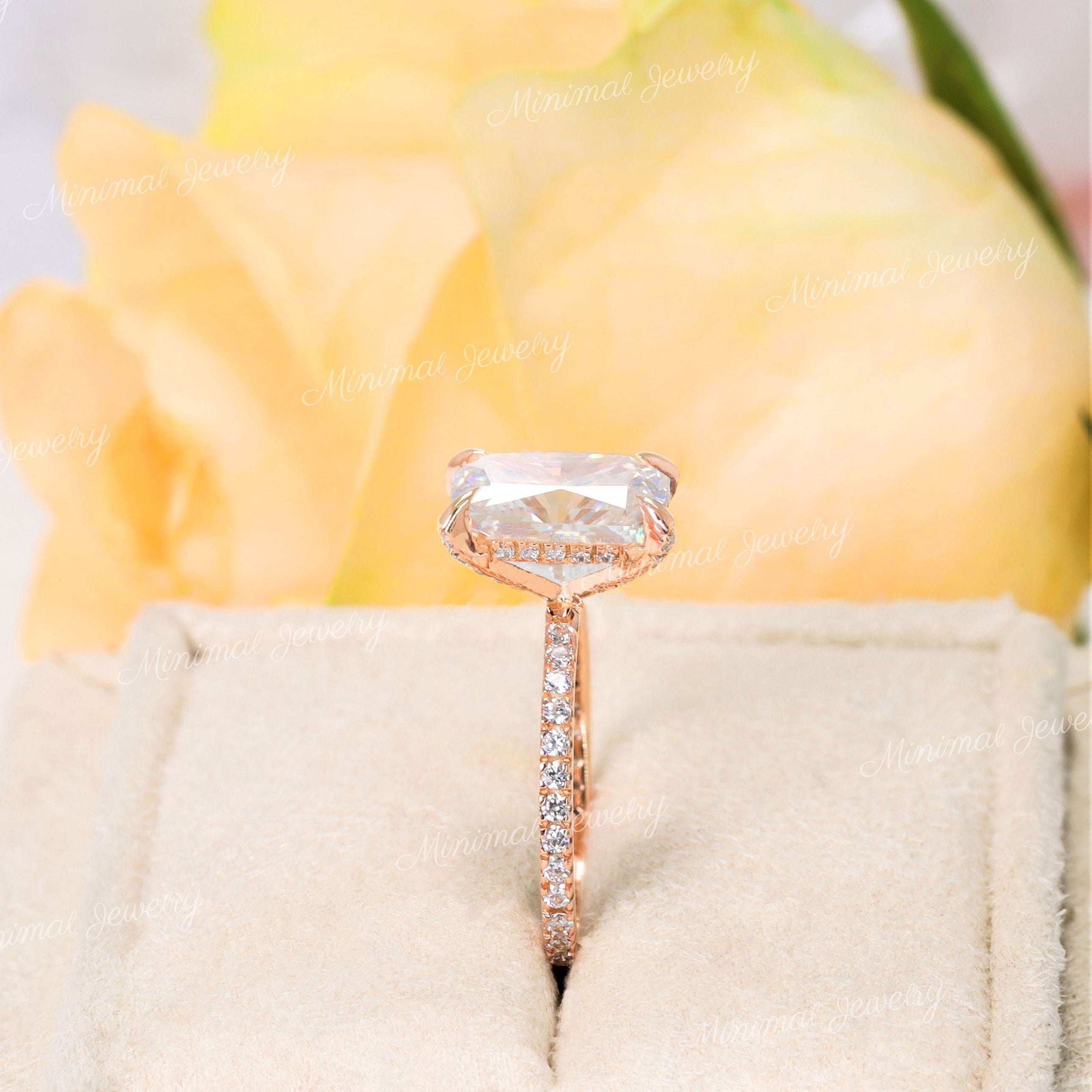 3 CT radiant cut engagement ring,14k rose gold,radiant moissanite,pave prong,hidden halo,solitaire,moissanite engagement ring,wedding ring