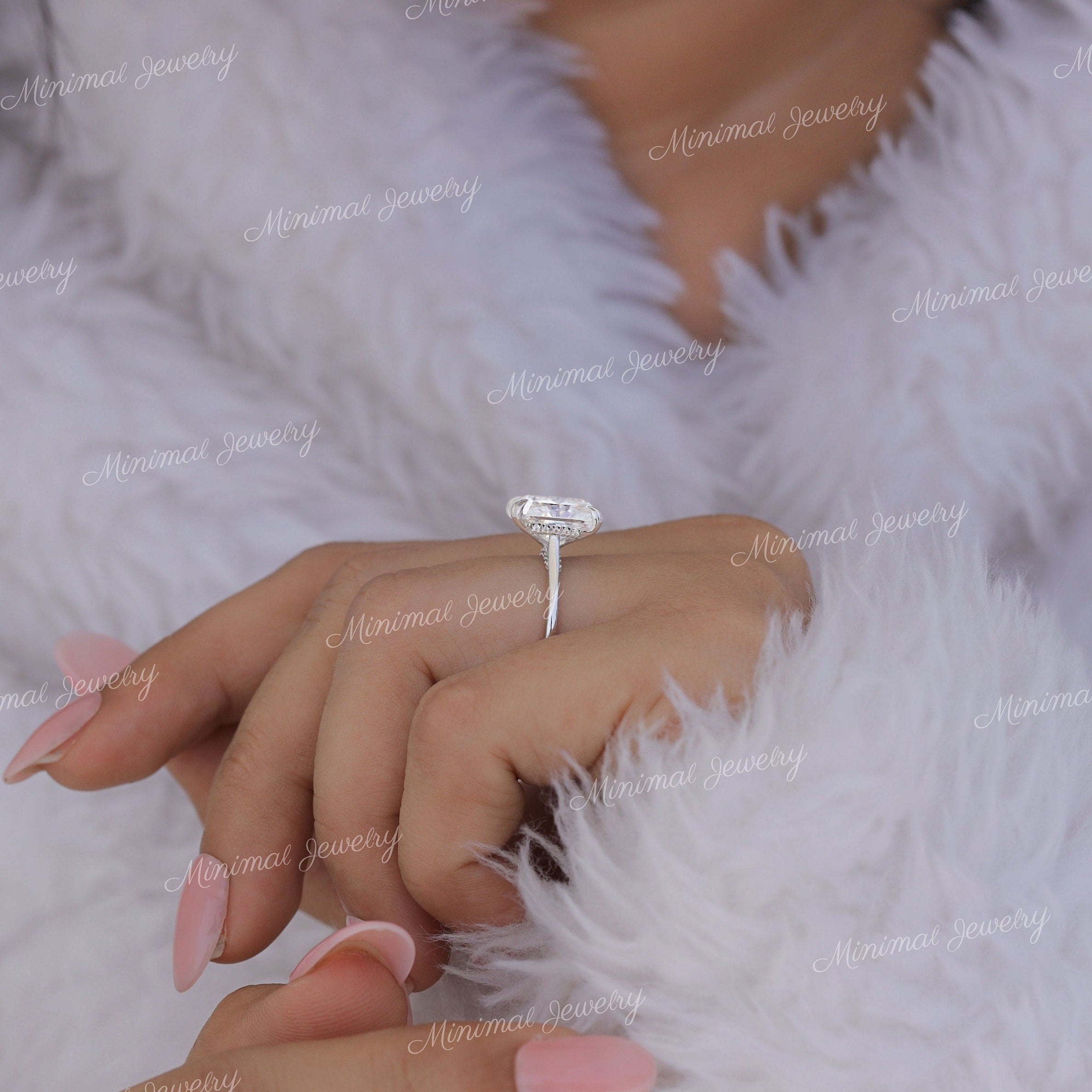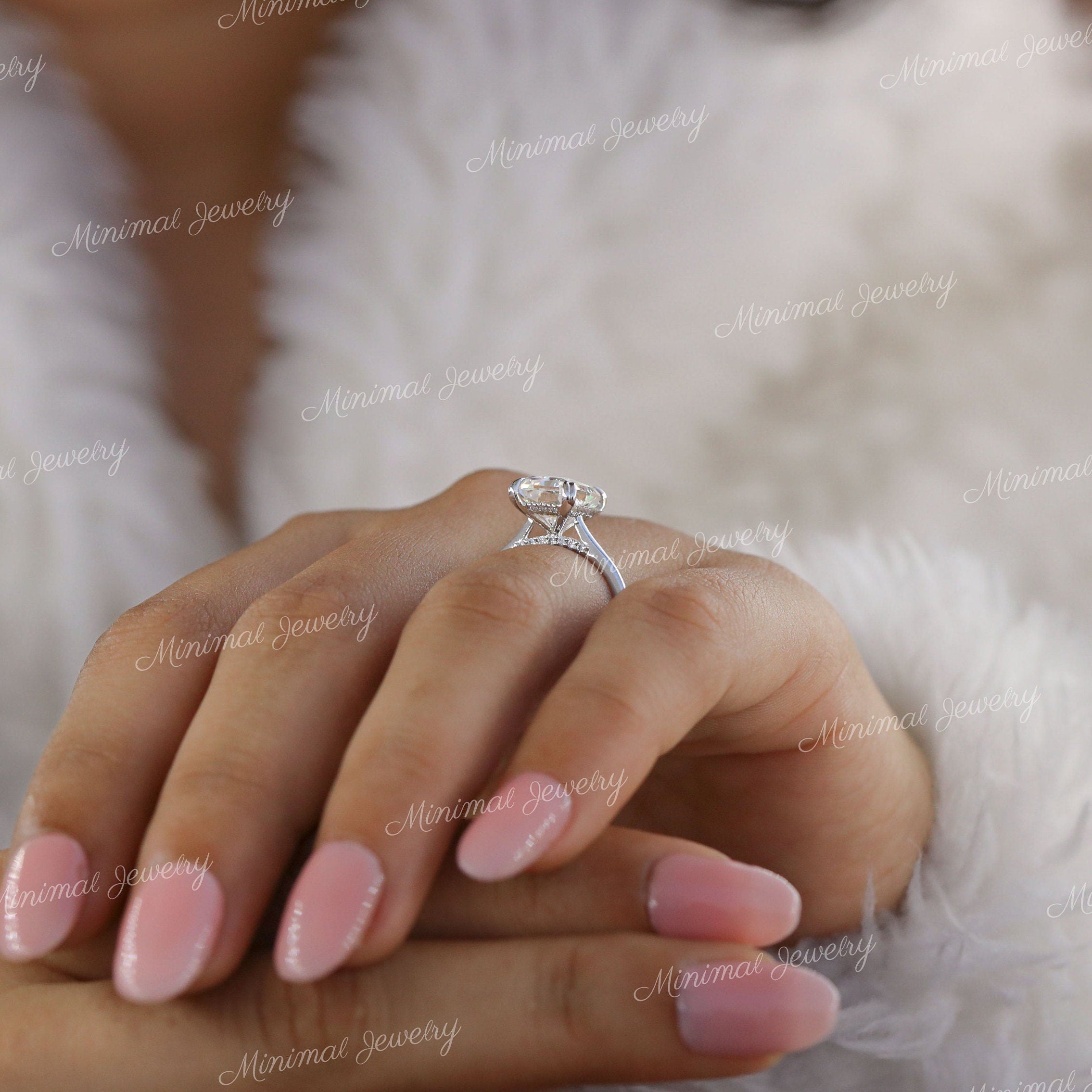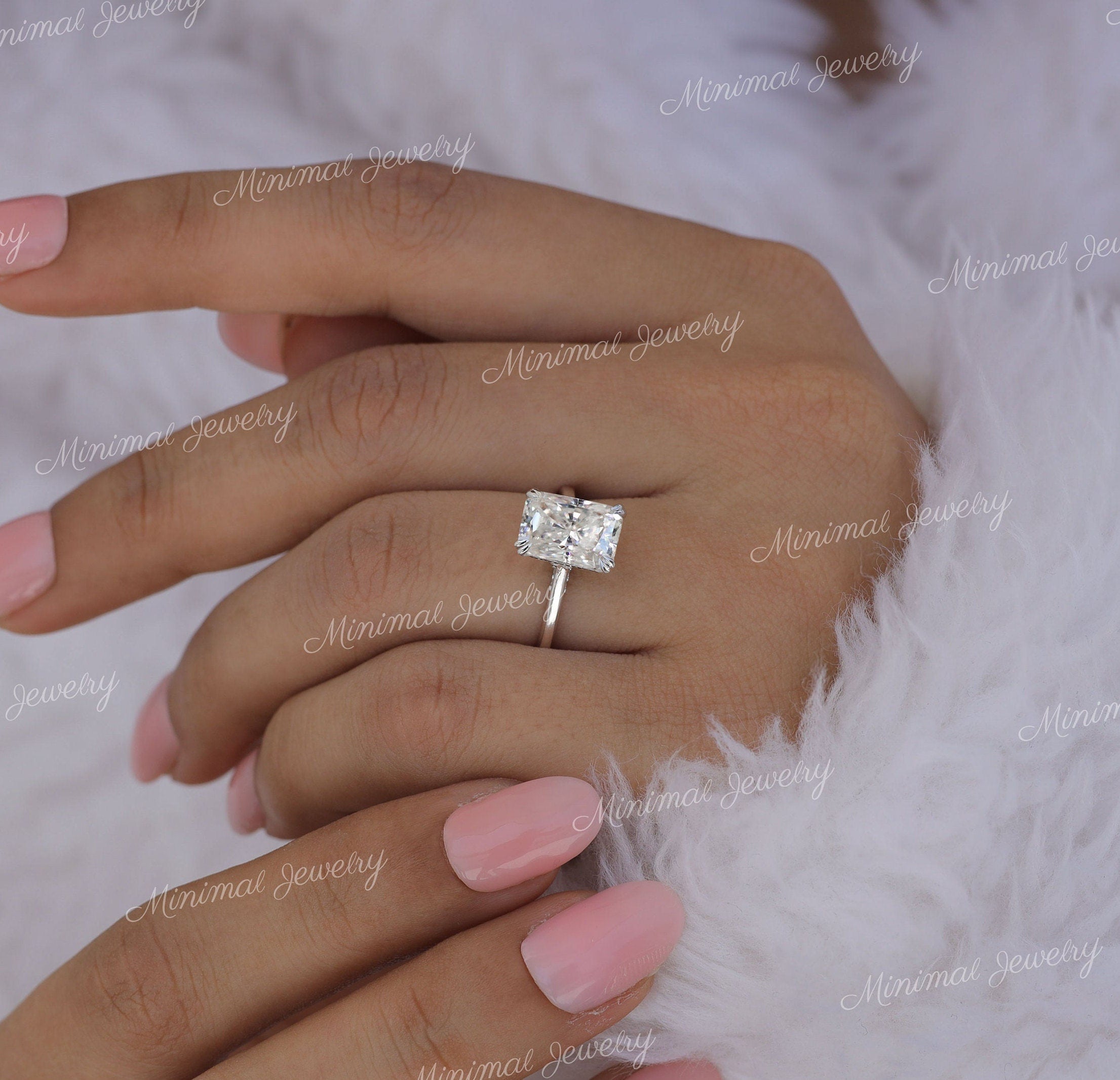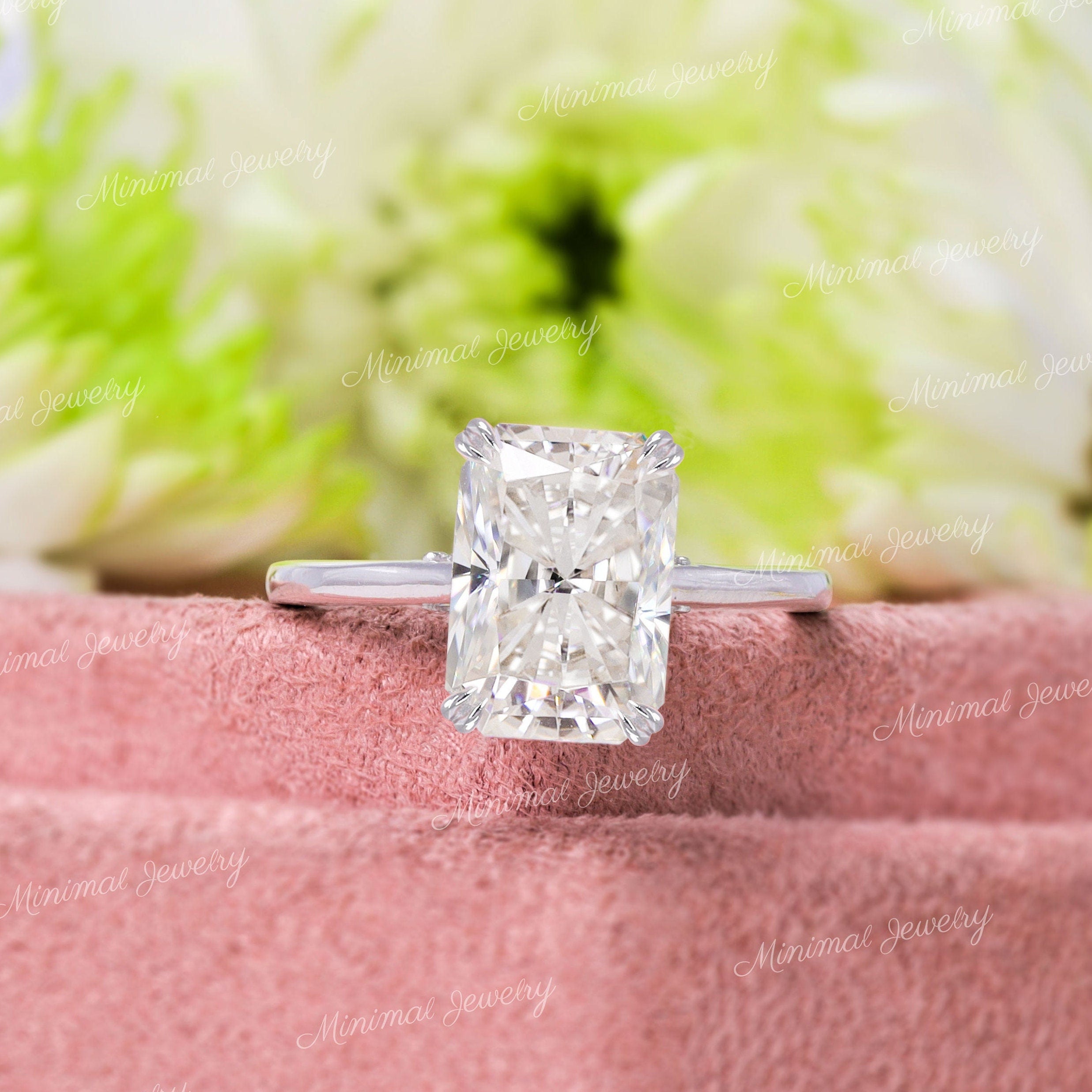 3 CT radiant cut moissanite engagement ring hidden halo wedding Ring pave bridge 14k Gold Cathedral ring solitaire simple engagement ring
