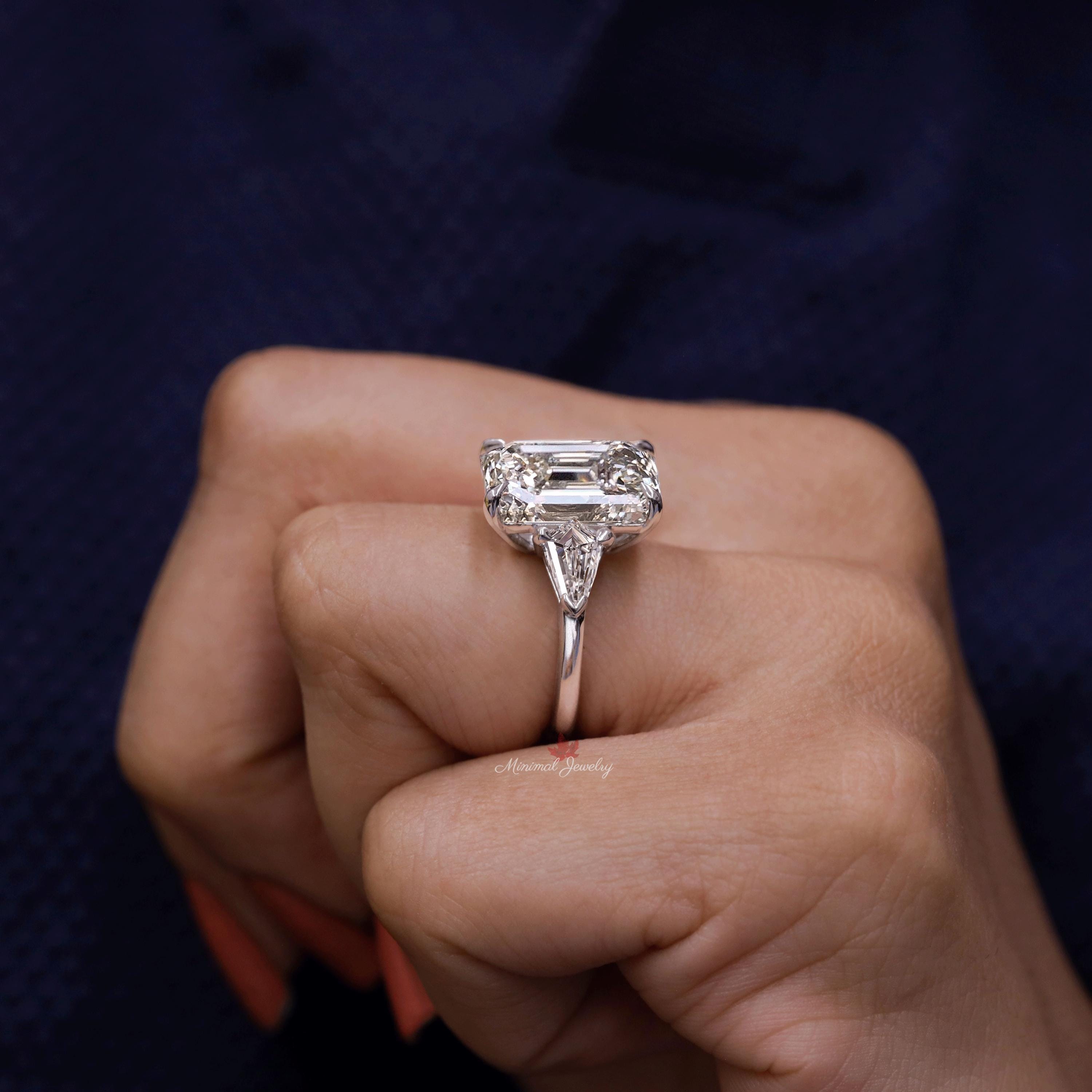3 stone emerald cut ring 14k gold 7CT emerald cut moissanite engagement wedding ring side Shield Three stone anniversary ring for women