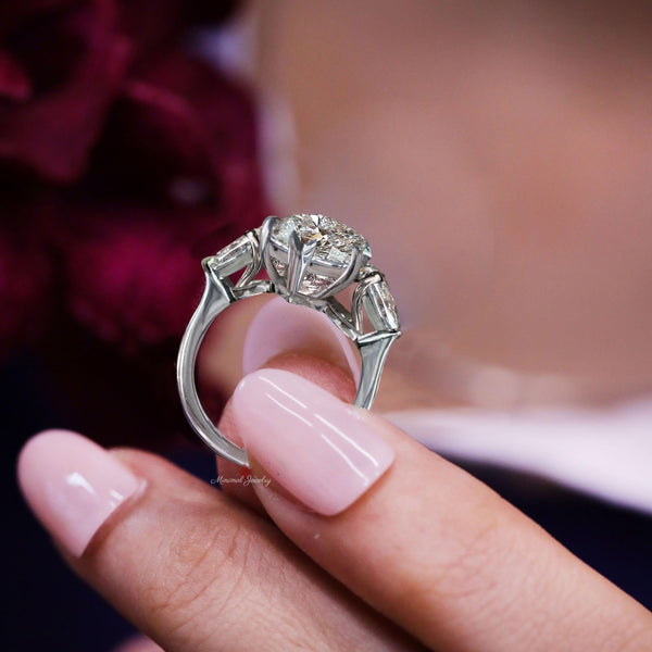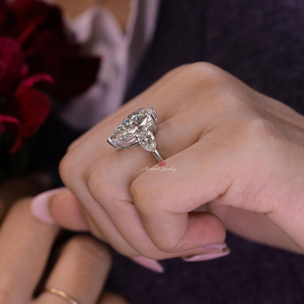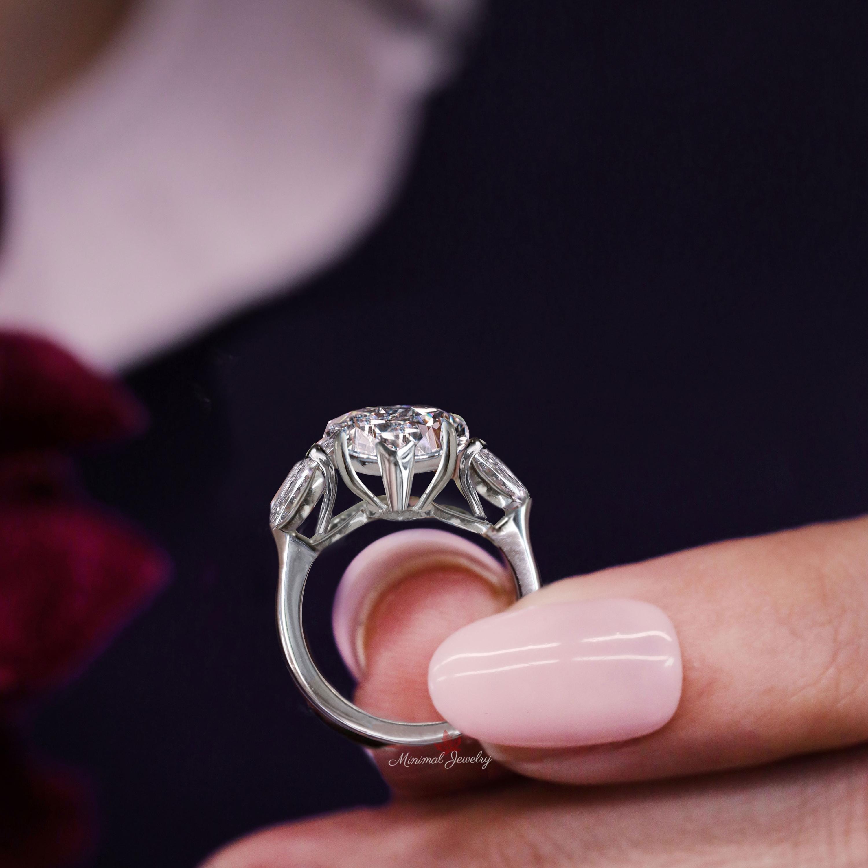 3CT pear lab grown diamond ring Three stone pear shaped engagement ring IGI certified large pear diamond anniversary wedding ring solid gold