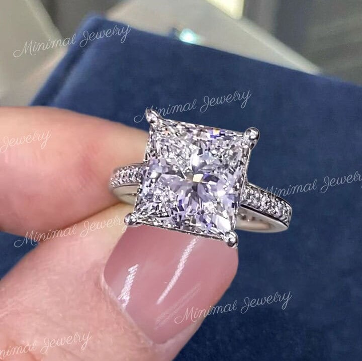 Handmade 4 CT Princess Cut moissanite Engagement Ring,Luxury Celebrity Style engagement...