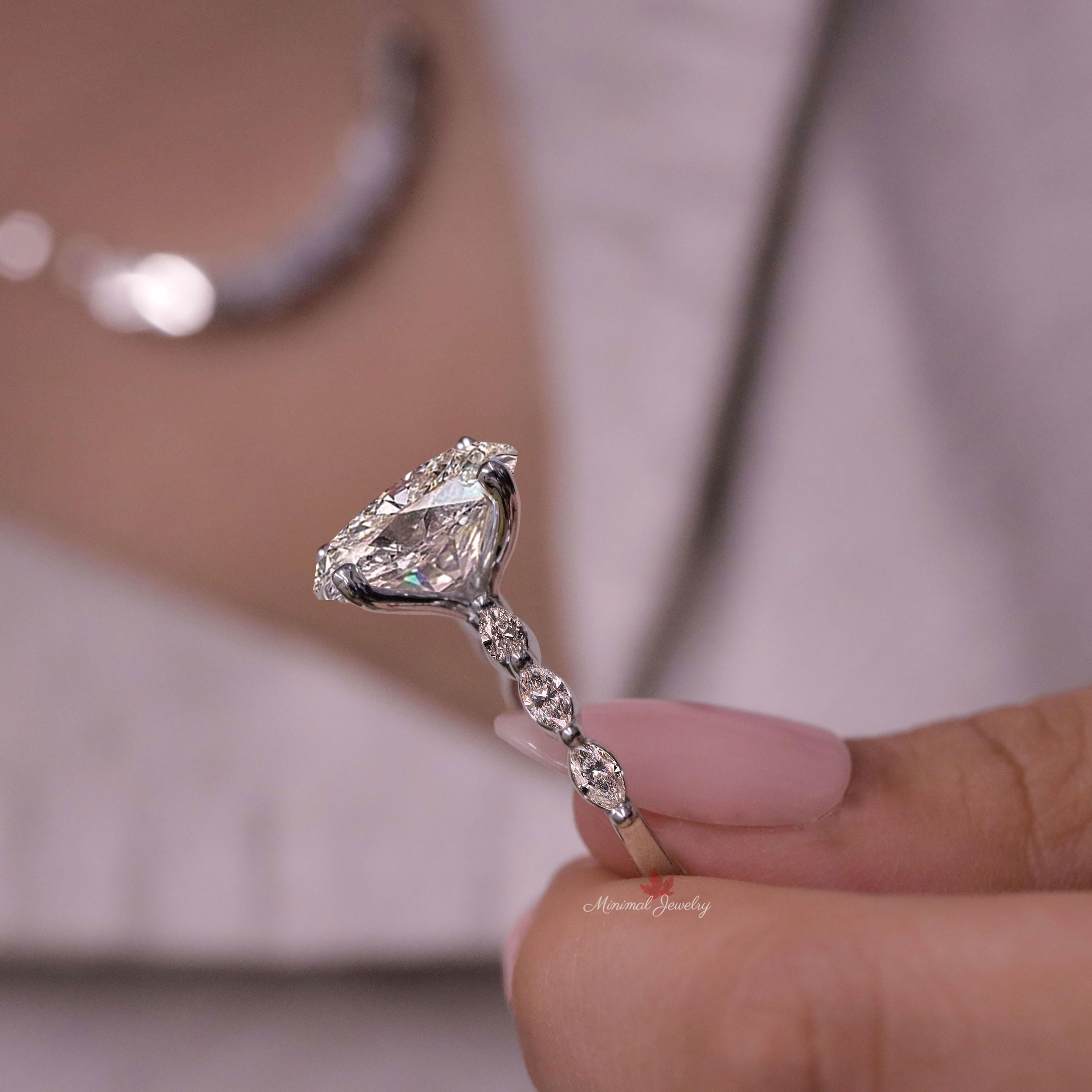 Handmade 4 CT oval moissanite engagement ring•unique solitaire oval engagement ring•art deco 18k/14K white gold diamond promise wedding ring•women This engagement ring features 4.00 CT Oval moissanite set on 4 prongs & marquise cut moissanite half Eternity shank, lovable ring for wedding and gift for a loved one → Purchasing for: Engagement Ring, Wedding Ring, anniversary gift, Promise Ring, Diamond Ring → Occasions: Engagement & Wedding DESCRIPTION -------------------- This Ring Made with solid gold Art Deco style with high-quality Moissanite Diamond (VVS clarity) (Colorless), • Moissanite Details → Main Stone : Oval → Stone Size (mm) : 12*9 → Stone Ctw : 4.00 → Side Stone : Marquise → Side Stone Ctw : 0.76 → Stone T Ctw : 4.76 → Color : Colorless → Clarity : VVS • Metal Details → Metal Type : Gold → Metal Purity : 10K,14k,18k → Metal Color : Yellow Gold, Rose Gold, White Gold ▶ 𝐖𝐞𝐝𝐝𝐢𝐧𝐠 𝐁𝐚𝐧𝐝 𝐡𝐞𝐫𝐞 : https://bit.ly/Wedding_Band ▶ 𝐆𝐨 𝐓𝐨 𝐒𝐡𝐨𝐩 𝐒𝐞𝐜𝐭𝐢𝐨𝐧𝐬 𝐇𝐞𝐫𝐞 : ▶ Engagement Ring : https://bit.ly/EngagementRings_ ▶ Celebrity Style Ring : https://bit.ly/CelebrityStyleRing ▶ Diamond Hoop Earrings: https://bit.ly/DiamondHoopEarring ▶ Tennis Bracelet : https://bit.ly/TennisBraceletsx ▶ Tennis Necklace : https://bit.ly/TennisNecklaces 𝐅 𝐎 𝐋 𝐋 𝐎 𝐖 ∙ 𝐔 𝐒 Instagram : @minimaljewelryandco Facebook : @minimalmoissanitejewelry Pinterest : @minimaljewelryandco YouTube : @minimaljewelryandco 𝐖𝐚𝐫𝐫𝐚𝐧𝐭𝐲 𝐚𝐧𝐝 𝐒𝐞𝐫𝐯𝐢𝐜𝐞: ------------------------------ • We offer a 1 Year warranty on all our Jewelry. • We also provide paid service after completion of the warranty. 𝐓𝐡𝐚𝐧𝐤 𝐲𝐨𝐮 𝐟𝐨𝐫 𝐯𝐢𝐬𝐢𝐭𝐢𝐧𝐠 𝐨𝐮𝐫 𝐬𝐭𝐨𝐫𝐞, 𝐬𝐞𝐞 𝐲𝐨𝐮 𝐬𝐨𝐨𝐧. --------------------------------------------------------------