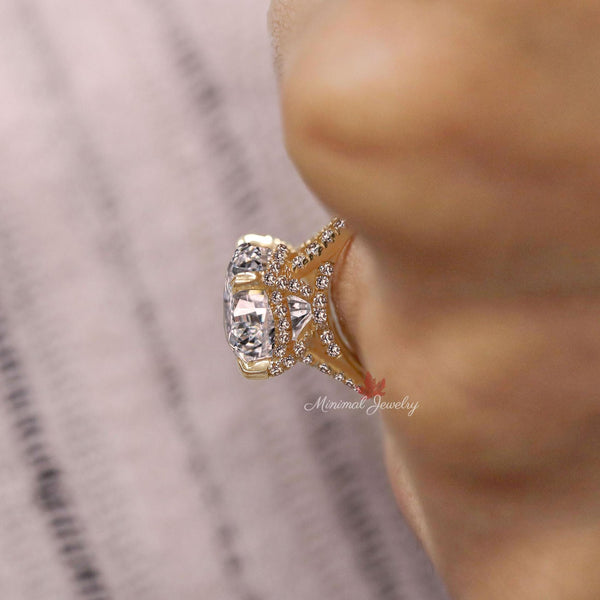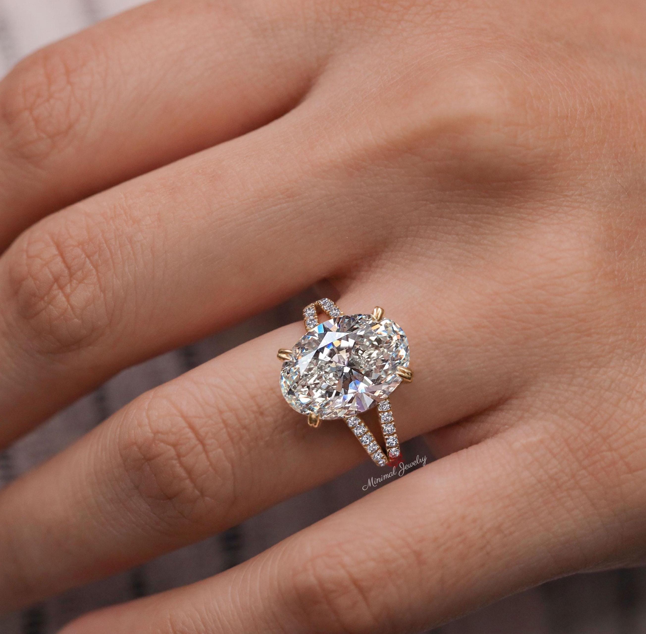 5.5CT Oval moissanite engagement ring crushed ice moissanite Hidden halo split shank ring unique cathedral ring set oval cut wedding ring