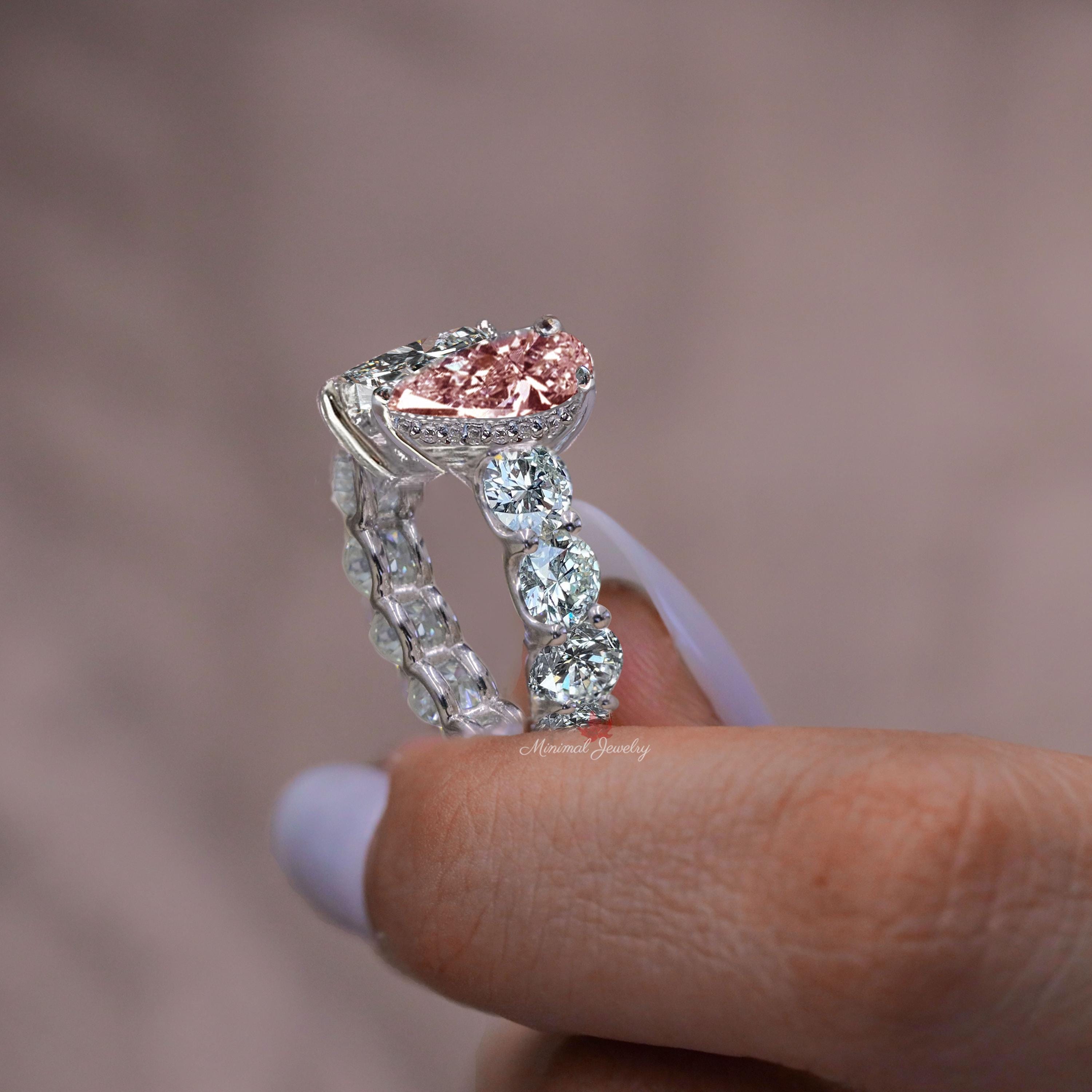 5.5 CT Two stone pear shaped engagement ring toi et moi ring hidden halo two stone ring pink moissanite double diamond anniversary wedding ring → Occasions: Engagement & Wedding DESCRIPTION -------------------- STYLE : Two Stone • Moissanite Details Stone Type : Moissanite / Pink High Quality Main Stone : Pear Size (mm) : 12*8 - 10*7 Carat Weight : 5.5 Band & Halo & Side Stone : Round Size (mm) : 3.5 Carat Weight : 2.7 Stone Total CTW : 8.2 Color : Colorless / Pink Clarity : VVS Metal (Solid) : Silver,Gold,Platinum Band Width : 3 ▶ 𝐖𝐞𝐝𝐝𝐢𝐧𝐠 𝐁𝐚𝐧𝐝 𝐡𝐞𝐫𝐞 : https://bit.ly/Wedding_Band ▶ 𝐆𝐨 𝐓𝐨 𝐒𝐡𝐨𝐩 𝐒𝐞𝐜𝐭𝐢𝐨𝐧𝐬 𝐇𝐞𝐫𝐞 : ▶ Engagement Ring : https://bit.ly/EngagementRings_ ▶ Celebrity Style Ring : https://bit.ly/CelebrityStyleRing ▶ Diamond Hoop Earrings: https://bit.ly/DiamondHoopEarring ▶ Tennis Bracelet : https://bit.ly/TennisBraceletsx ▶ Tennis Necklace : https://bit.ly/TennisNecklaces 𝐅 𝐎 𝐋 𝐋 𝐎 𝐖 ∙ 𝐔 𝐒 Instagram : @minimaljewelryandco Facebook : @minimalmoissanitejewelry Pinterest : @minimaljewelryandco YouTube : @minimaljewelryandco 𝐖𝐚𝐫𝐫𝐚𝐧𝐭𝐲 𝐚𝐧𝐝 𝐒𝐞𝐫𝐯𝐢𝐜𝐞: ------------------------------ • We offer a 1 Year warranty on all our Jewelry. • We also provide paid service after completion of the warranty. • Whats App Contact To Us : +91 878 095 3658 𝐓𝐡𝐚𝐧𝐤 𝐲𝐨𝐮 𝐟𝐨𝐫 𝐯𝐢𝐬𝐢𝐭𝐢𝐧𝐠 𝐨𝐮𝐫 𝐬𝐭𝐨𝐫𝐞, 𝐬𝐞𝐞 𝐲𝐨𝐮 𝐬𝐨𝐨𝐧. --------------------------------------------------------------