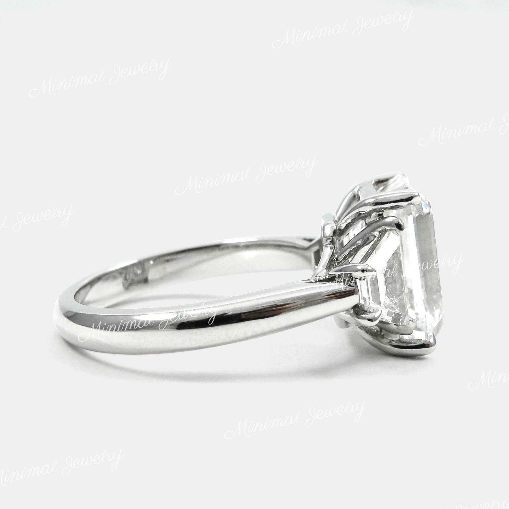 5.9 TCW Three Stone Emerald Cut Moissanite Engagement Ring,luxury celebrity style,trapezoid&big large 3 stone Emerald Cut ring,wedding ring
