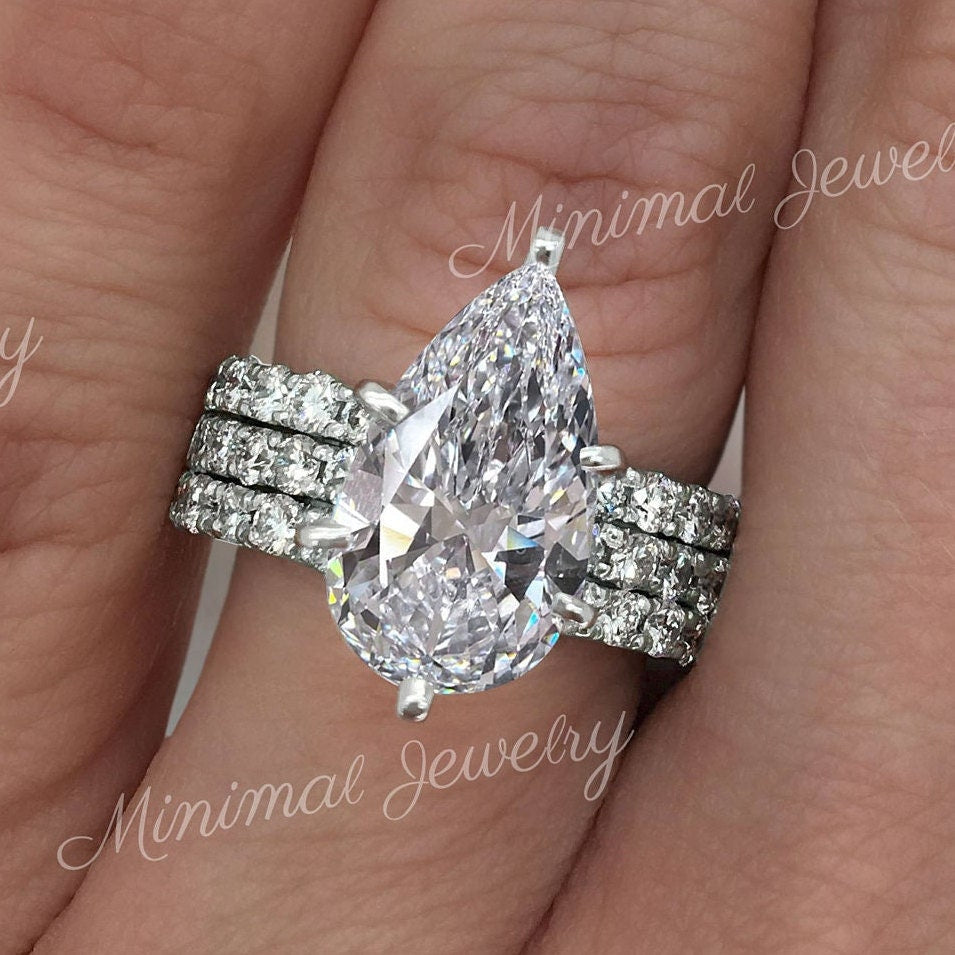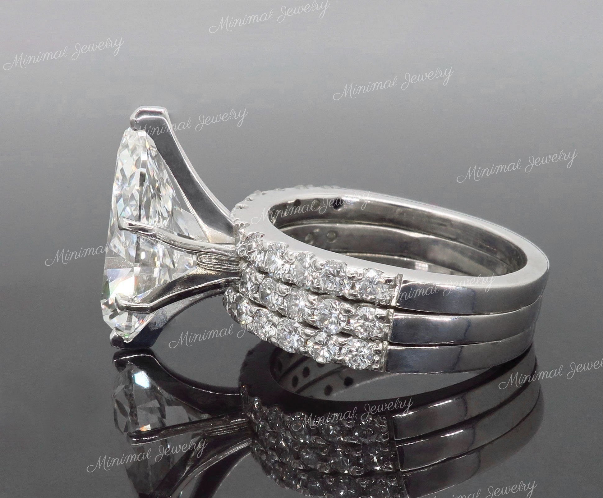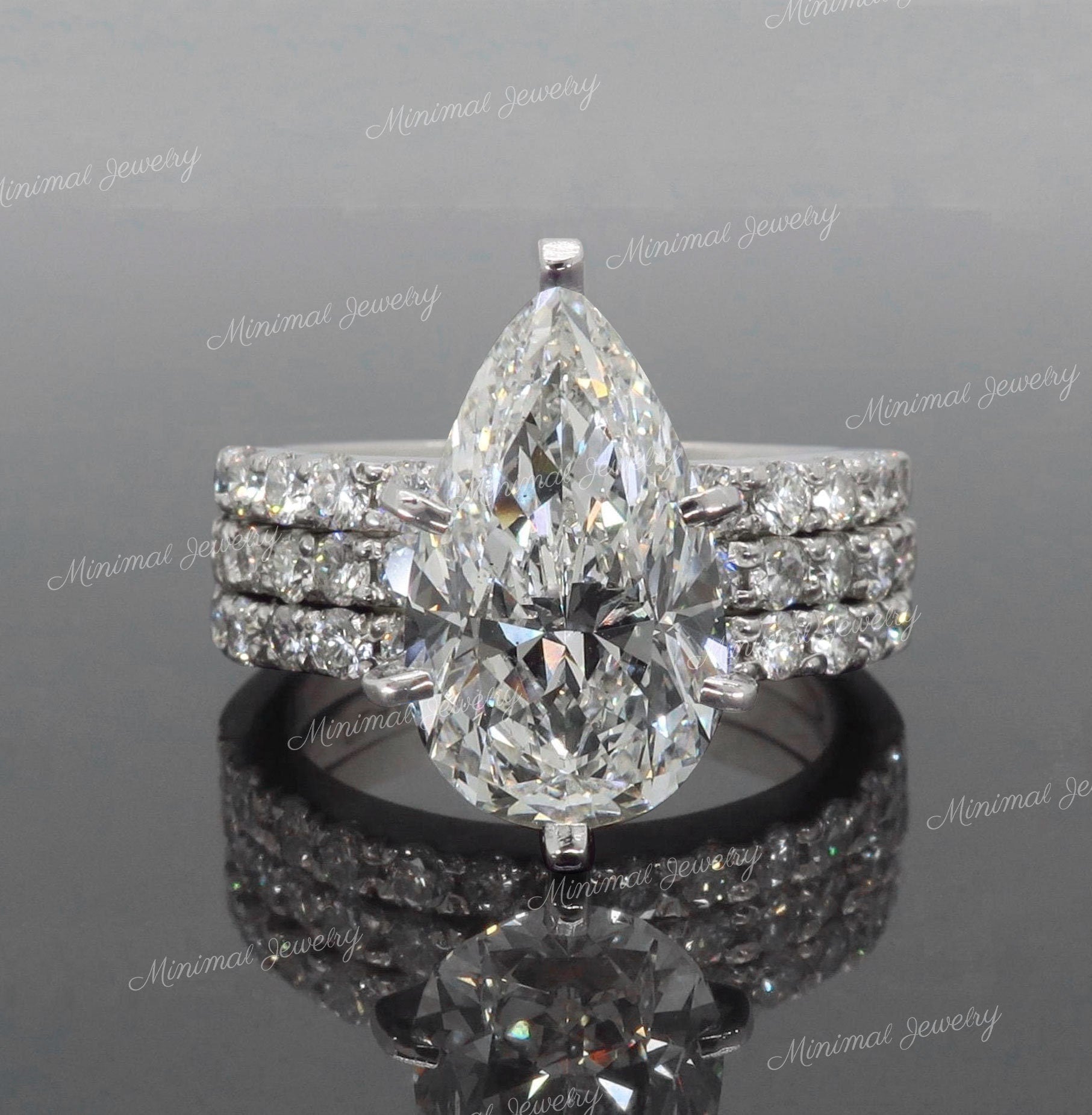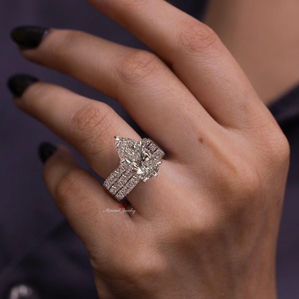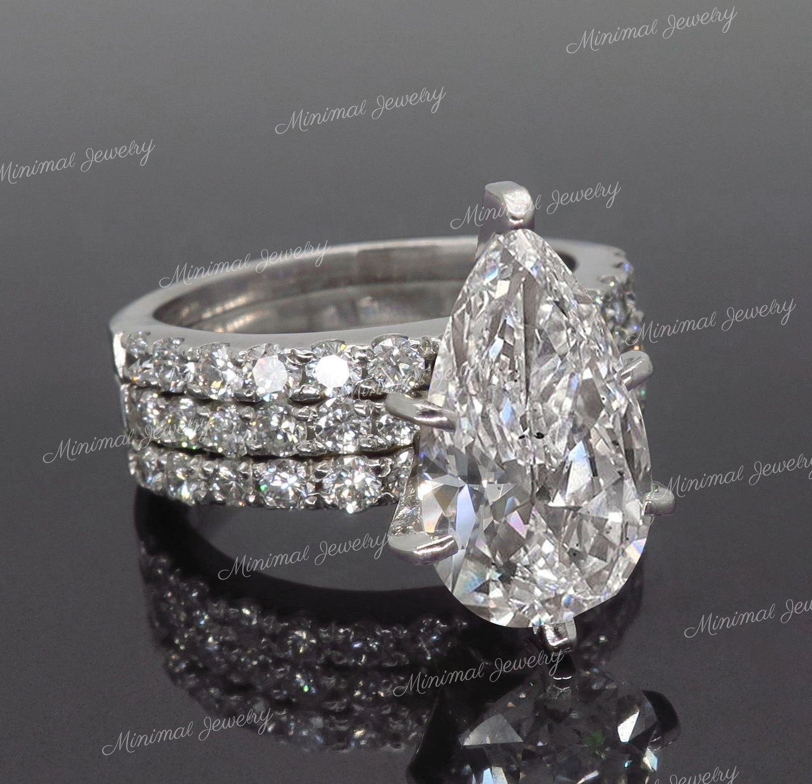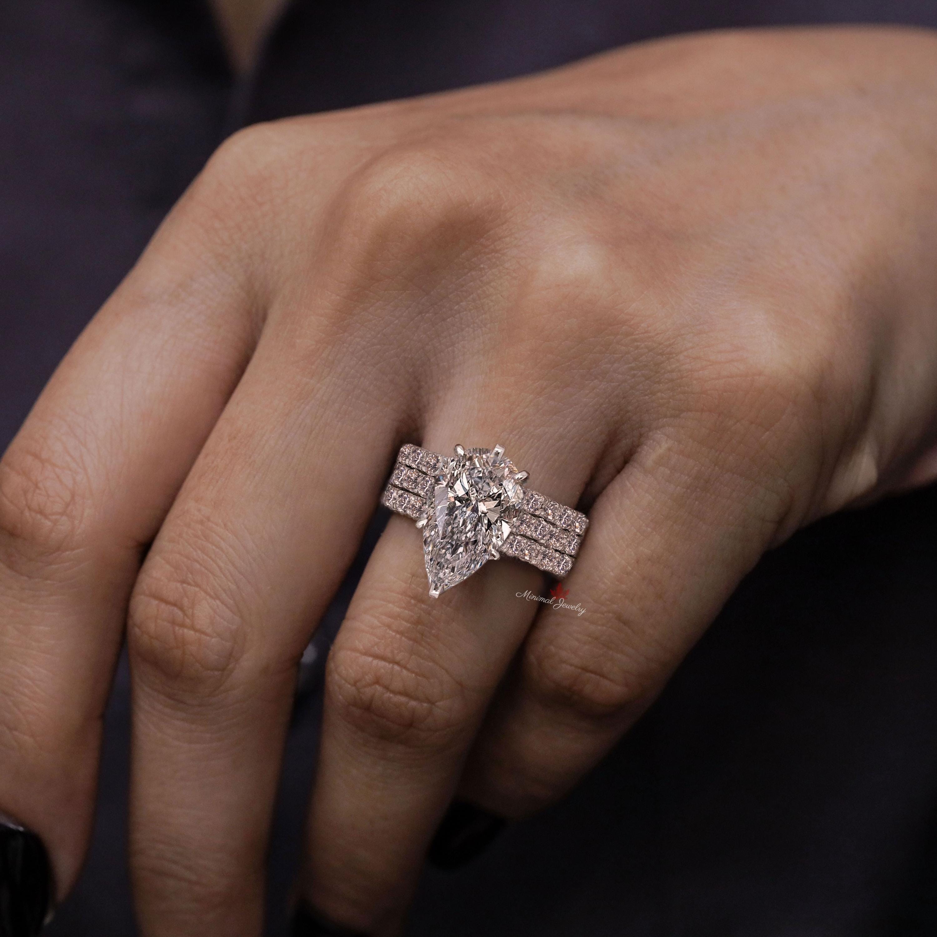 6CT pear shaped engagement ring set solitare Pear cut moissanite engagement ring joint moissanite bridal set luxury wedding anniversary ring