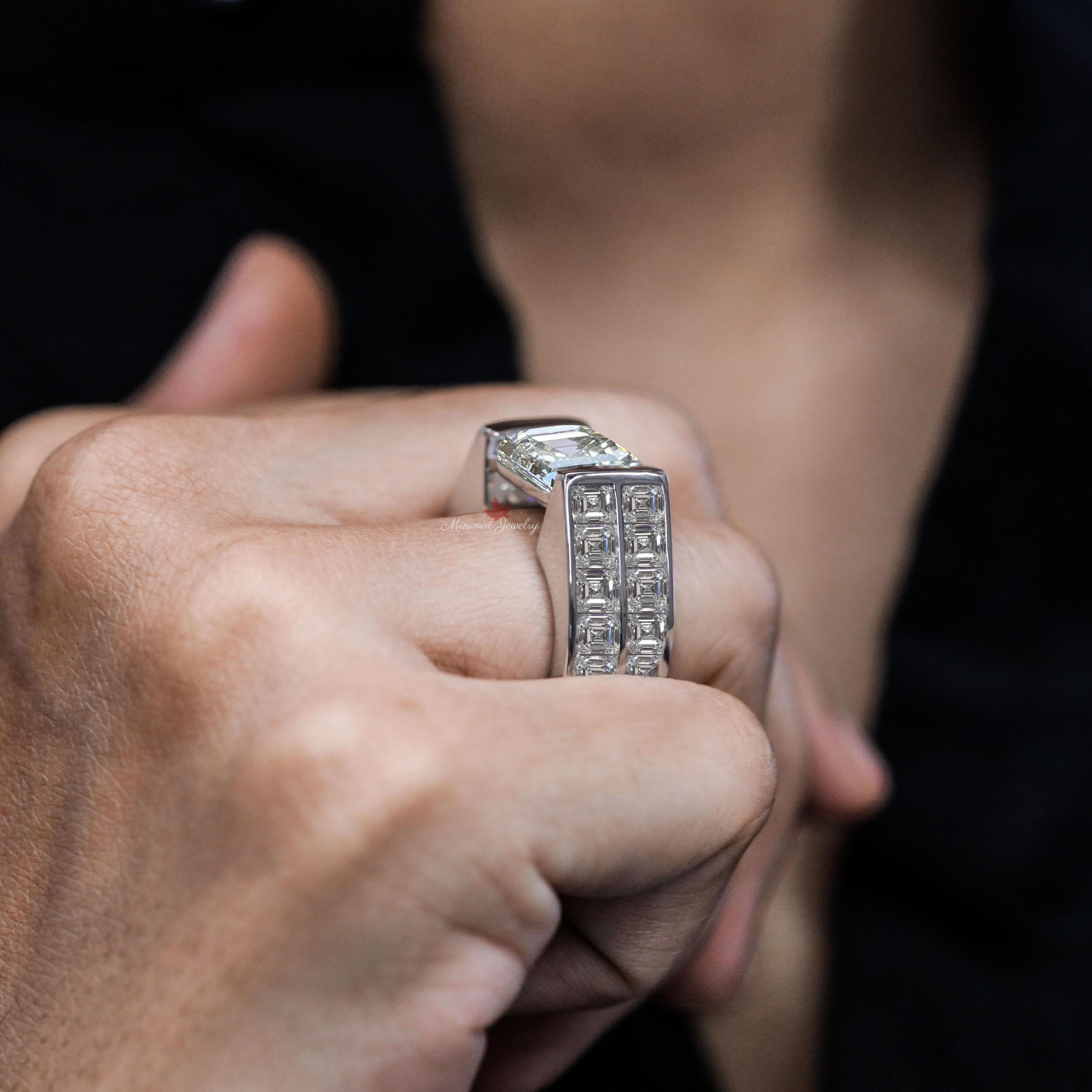 7 CT Asscher cut moissanite engagement ring,Large Moissanite bezel ring eternity wide band engagement ring big diamond cocktail wedding ring