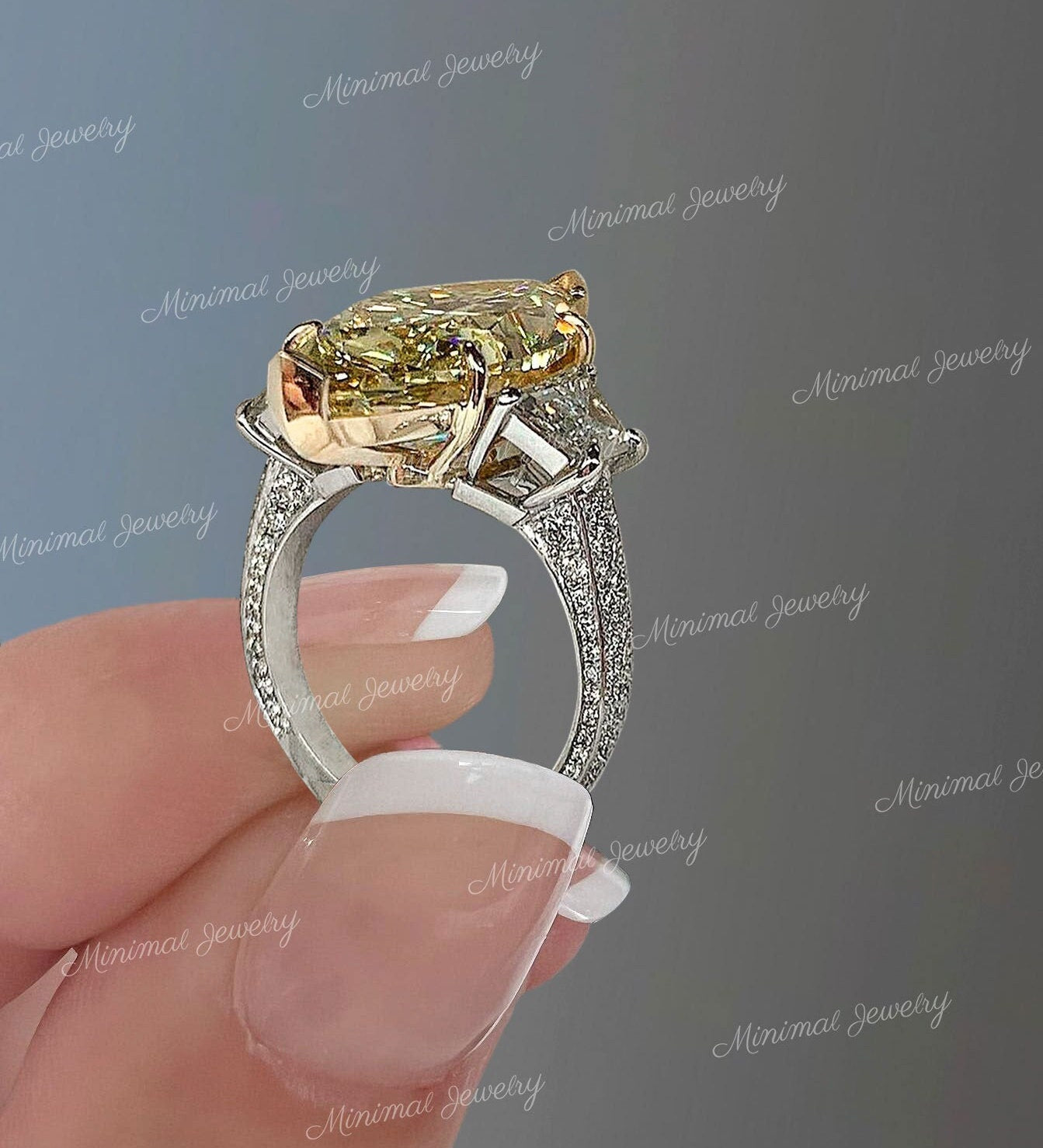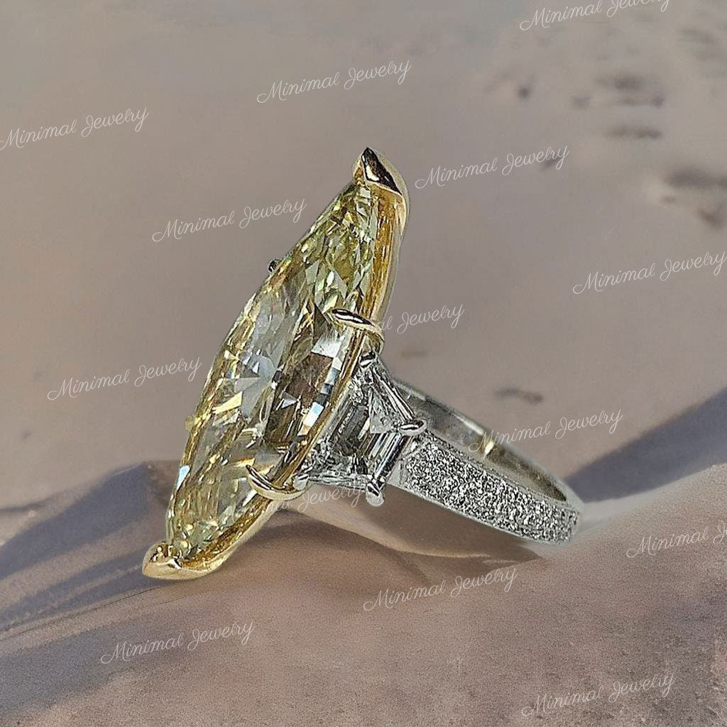 7 CT canary yellow Marquise moissanite engagement ring,large three stone celebrity style,trapezoid&big Marquise cut,luxury wedding ring