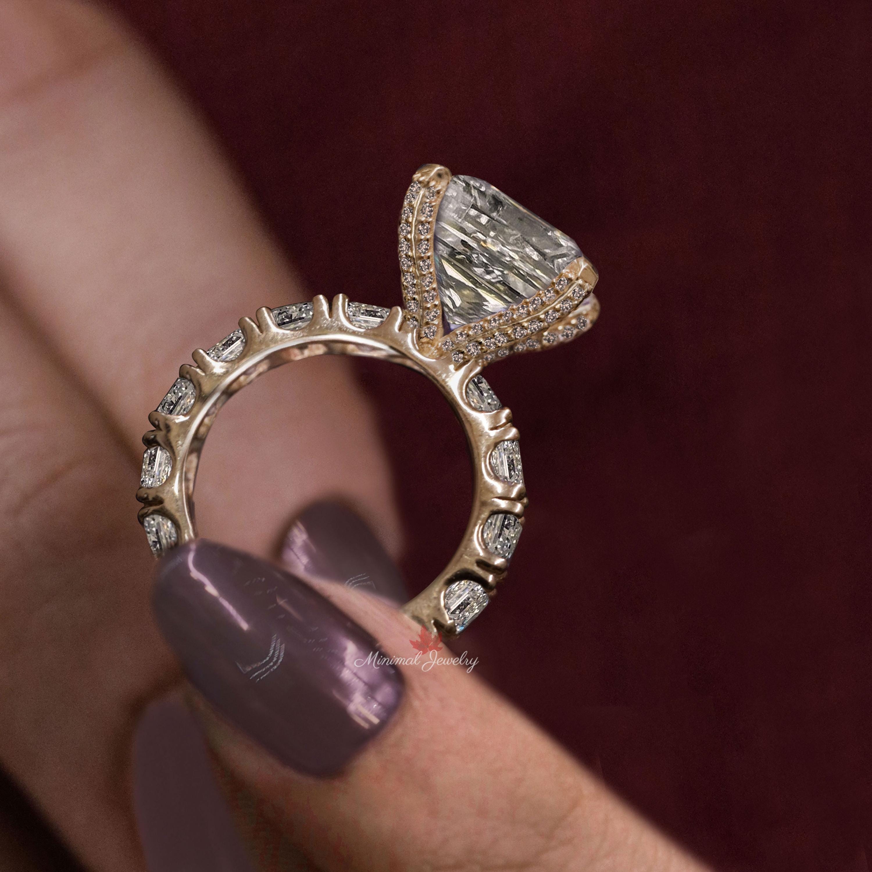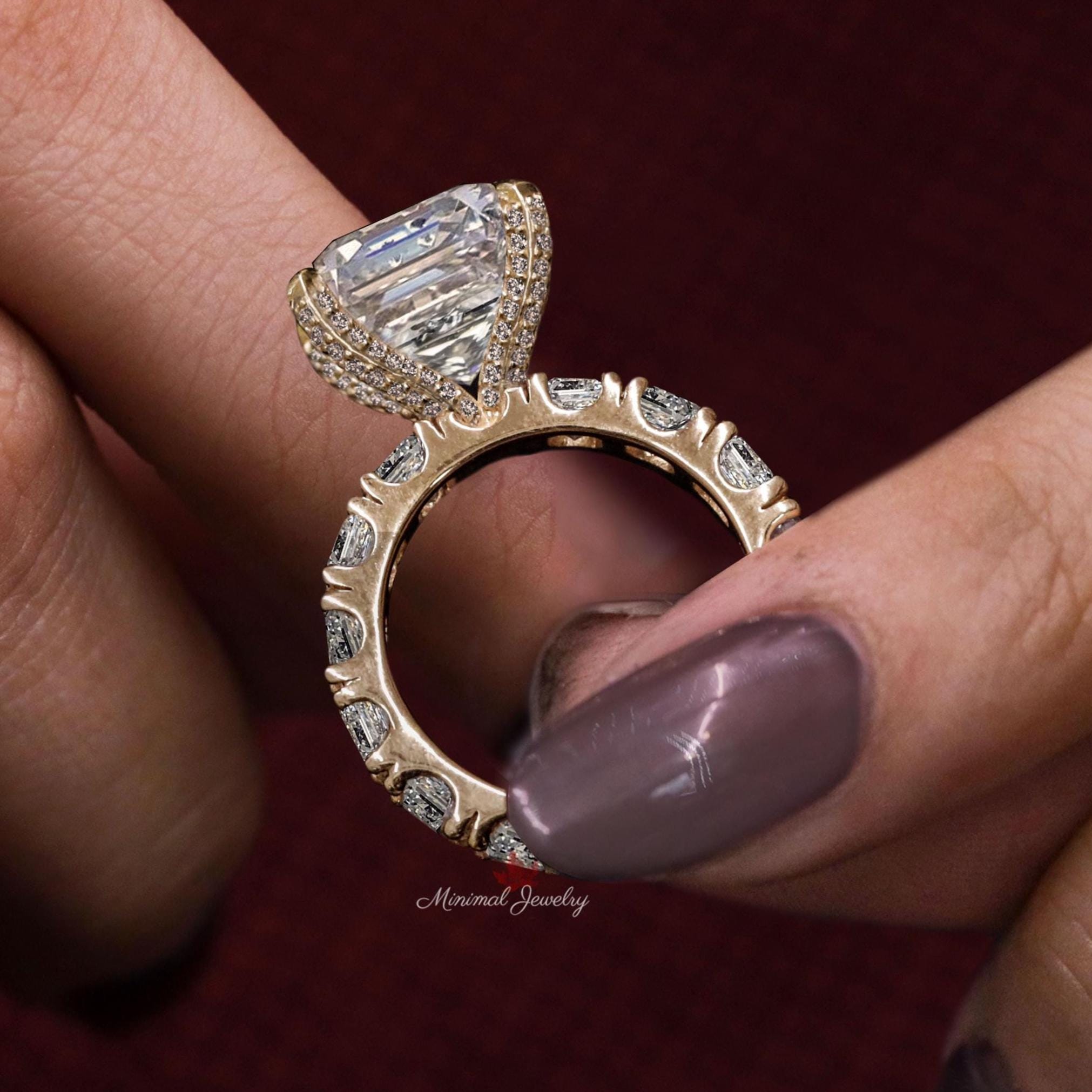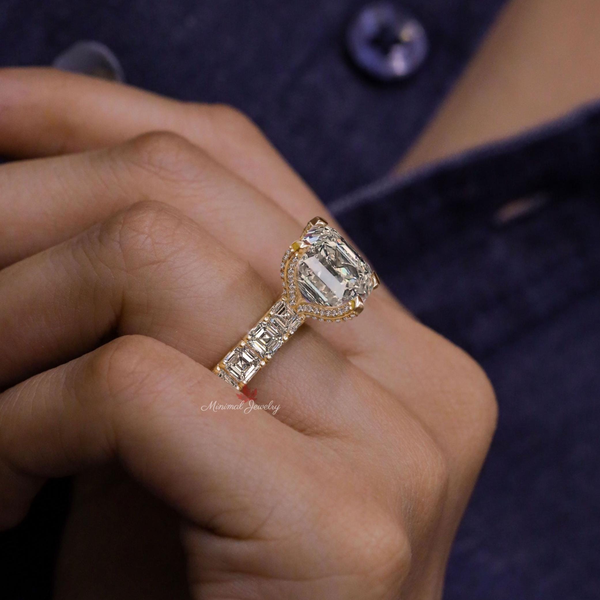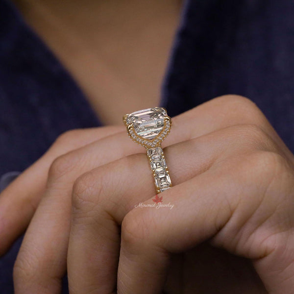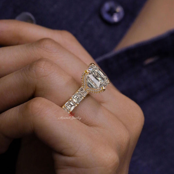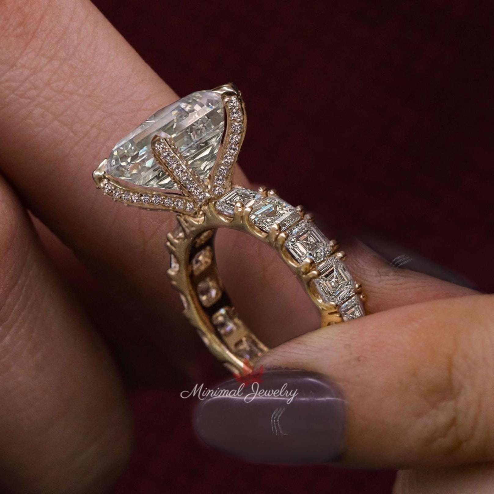8CT Asscher Cut Moissanite Ring simple Engagement Ring wide Eternity band solitaire wedding ring large diamond anniversary ring for women