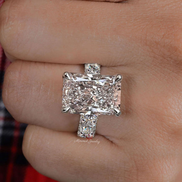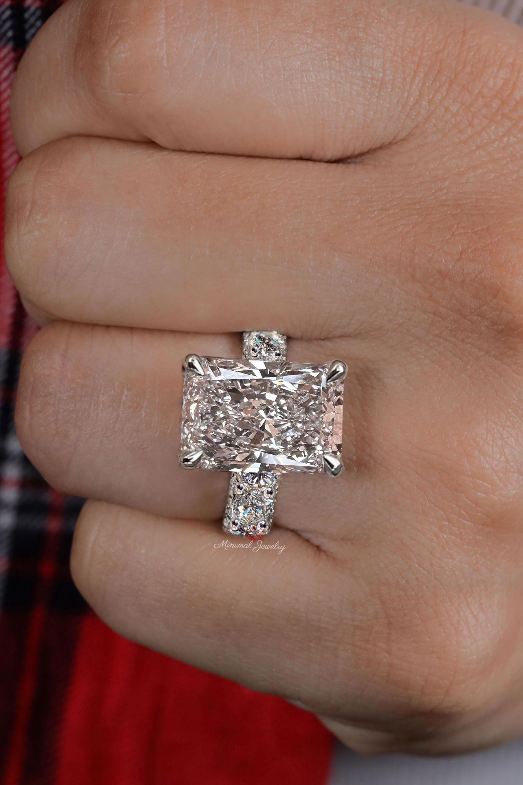 9.5 CT Radiant cut moissanite engagement ring hidden halo wide band large solitaire crushed ice moissanite wedding ring women anniversary