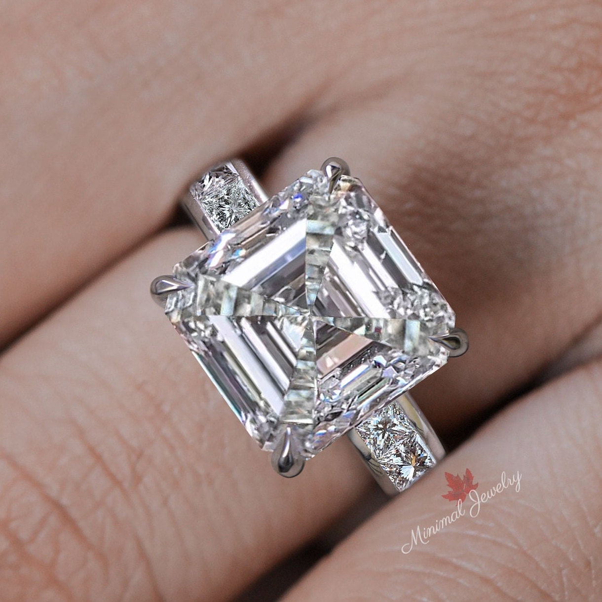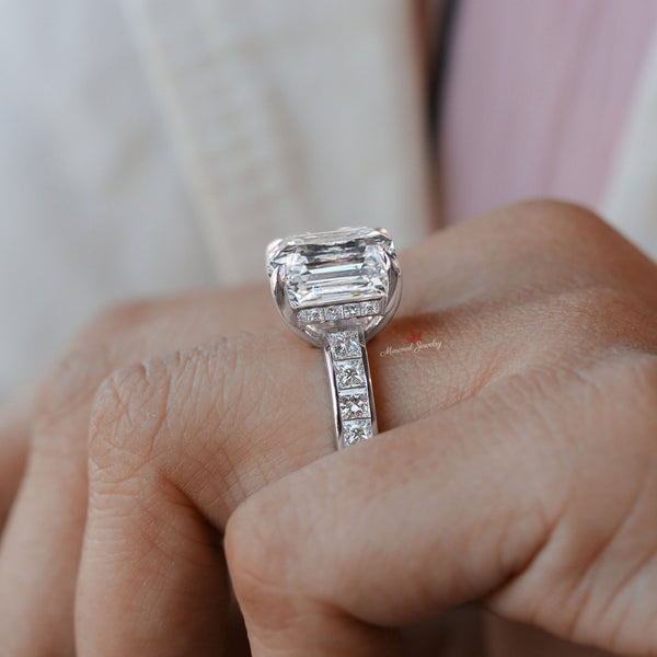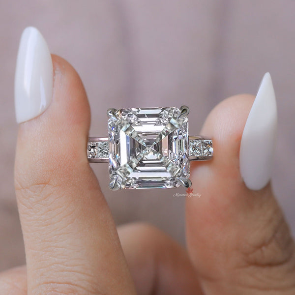 9 CT large Asscher cut engagement ring wide band hidden halo channel set asscher cut moissanite ring big diamond cocktail ring wedding ring