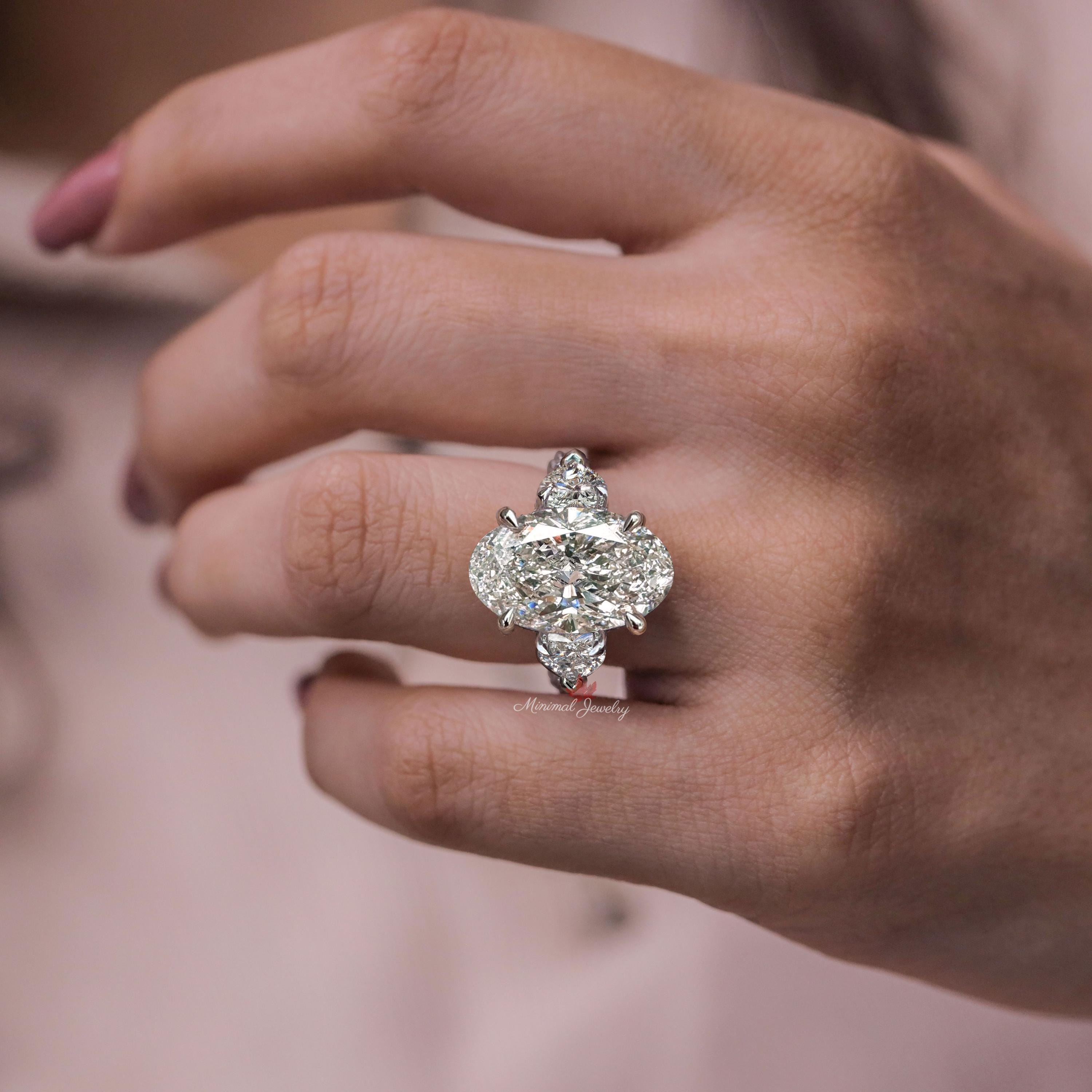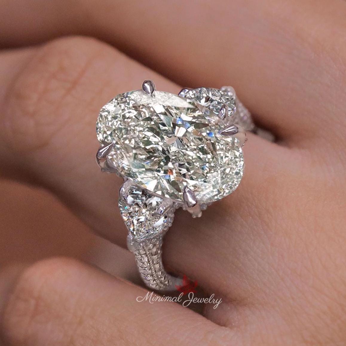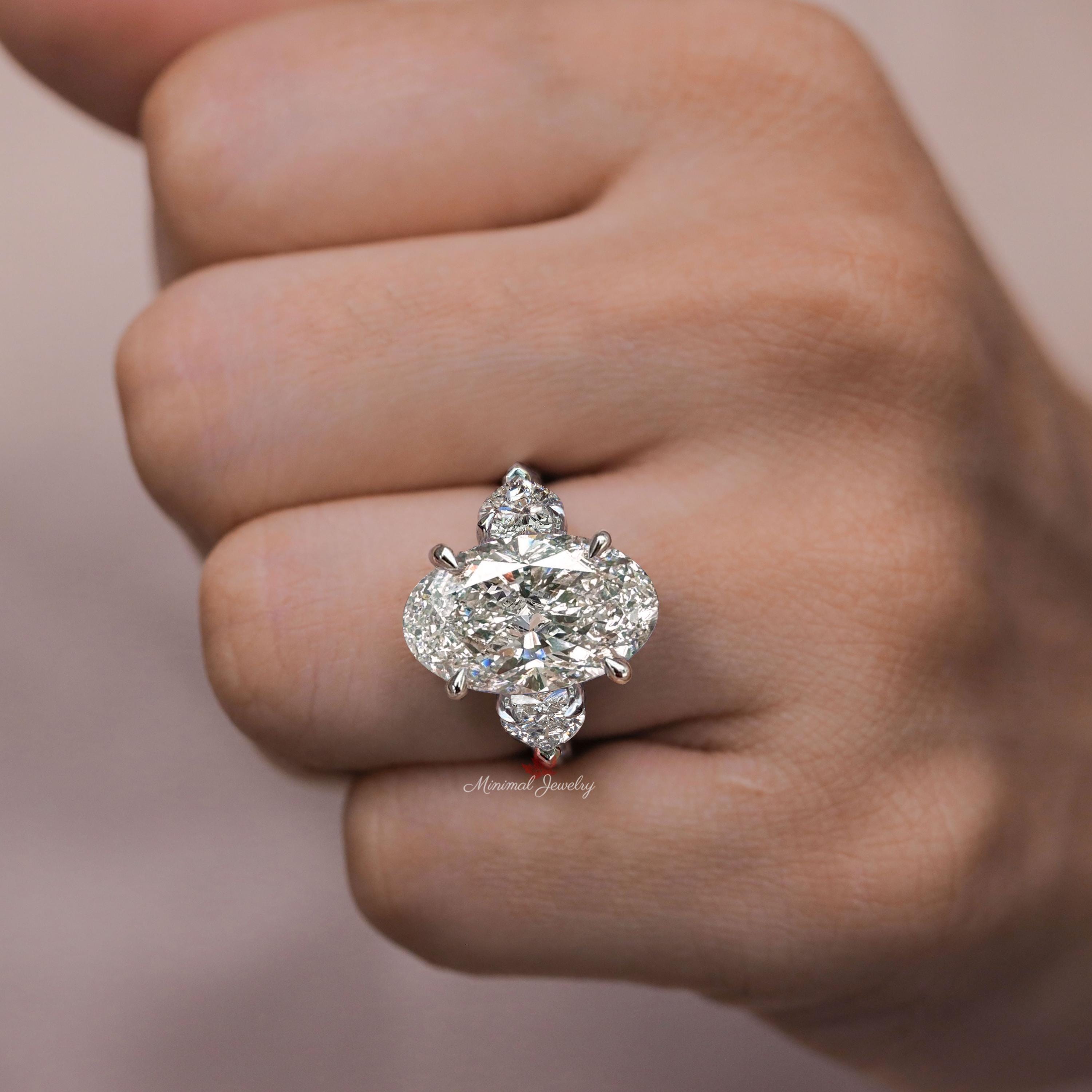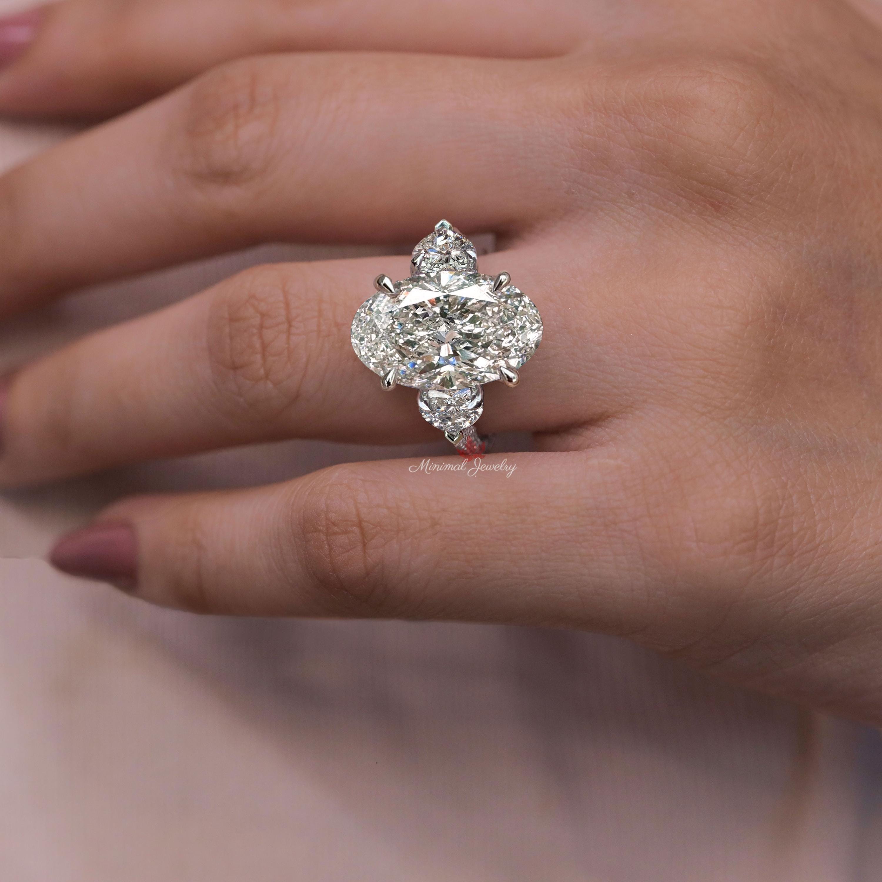9 CT Three stone oval cut moissanite engagement ring,hidden halo,celebrity style,heart&large oval moissanite wedding ring anniversary gift