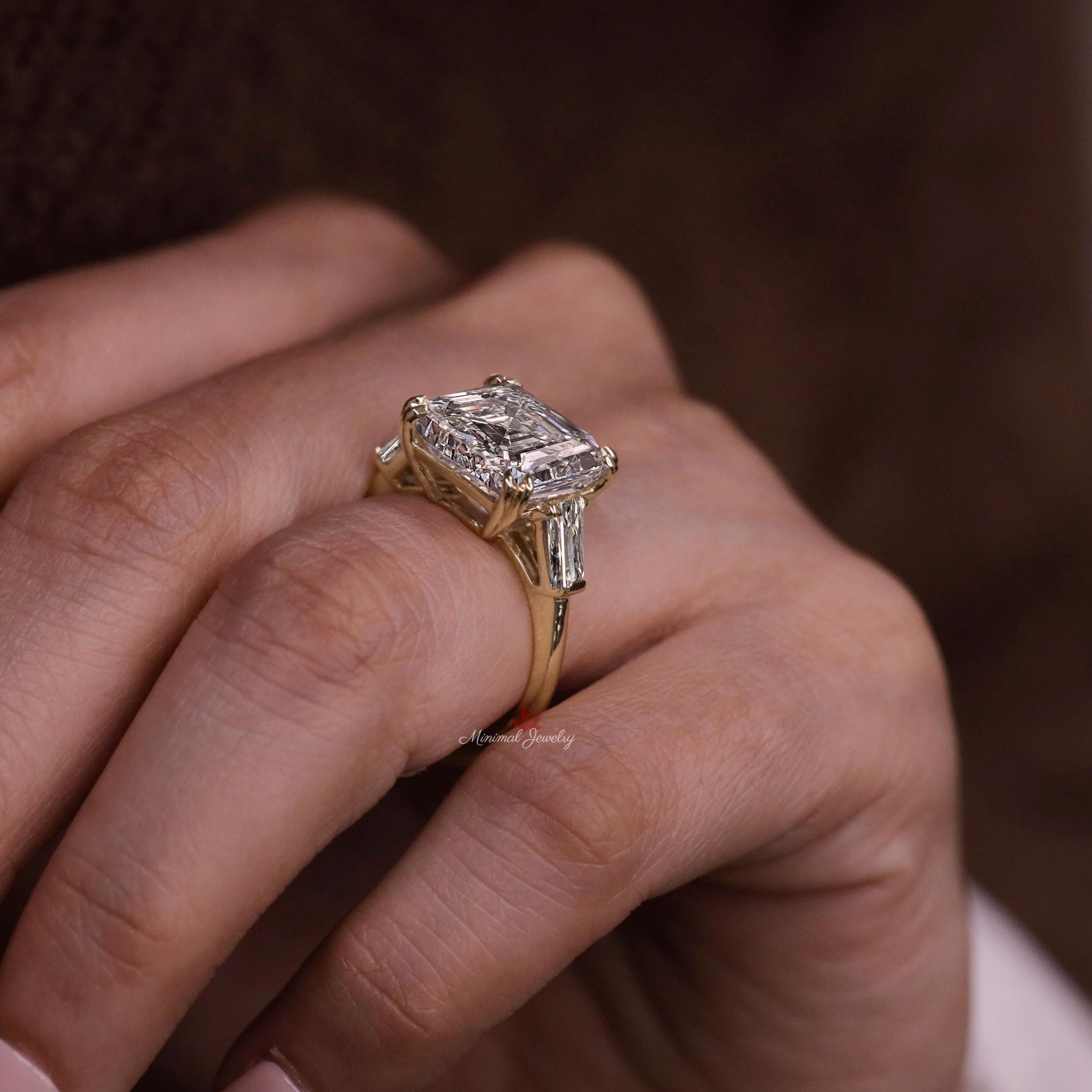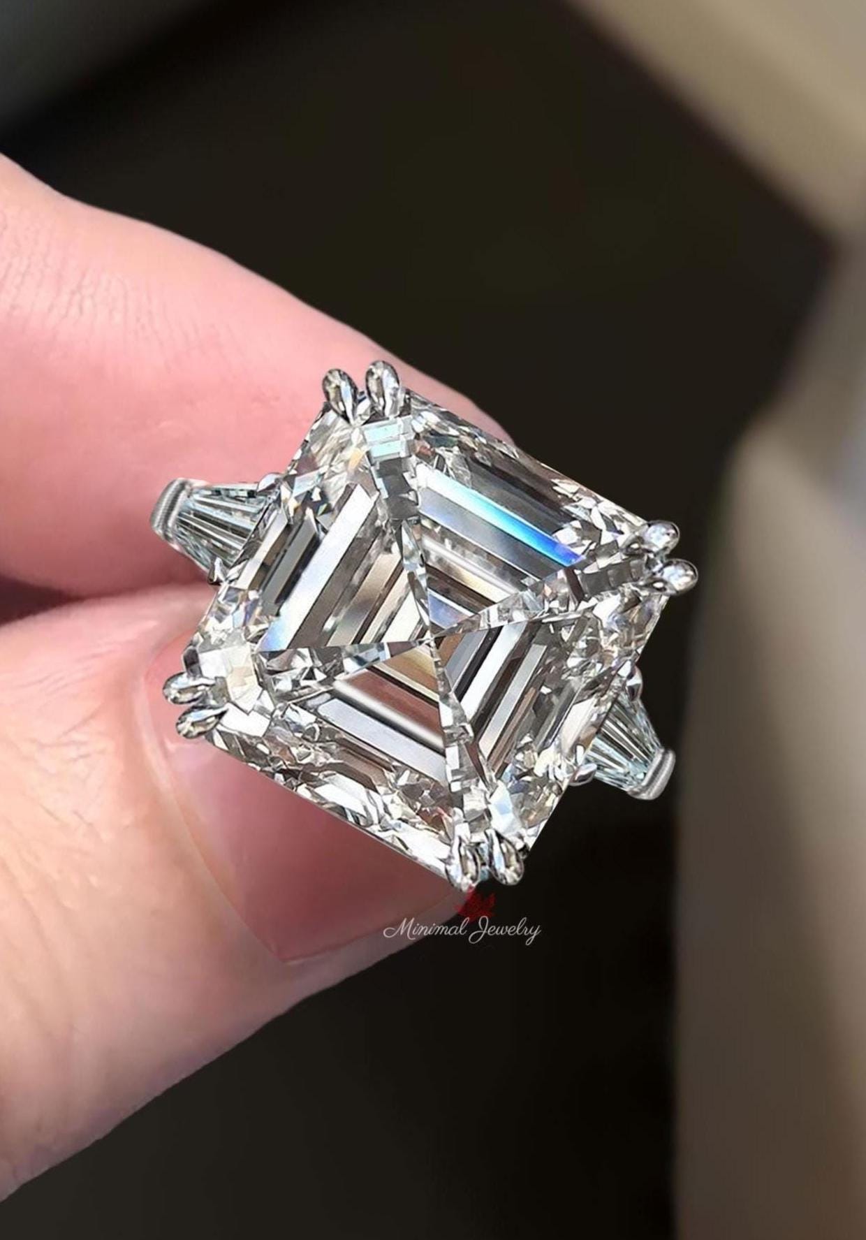 Handmade 9 CT Large Moissanite Asscher cut engagement ring,celebrity style,wide eternity band,square stone Big solitaire asscher moissanite ring,wedding ring → Occasions: Engagement & Wedding DESCRIPTION -------------------- STYLE : Three stone • Moissanite Details Stone Type : Moissanite - High Quality Main Stone : Asscher Size (mm) : 12*12 Carat Weight : 9 Band & Halo & Side Stone : Bagguget Size (mm) : 6.5*3.5 Carat Weight : 1 Stone Total CTW : 10 Color : Colorless Clarity : VVS Metal (Solid) : Silver,Gold,Platinum Band Width : 2 ▶ Wedding Band here : https://bit.ly/Wedding_Band ▶ Go To Shop Sections Here : ▶ Engagement Ring : https://bit.ly/EngagementRings_ ▶ Celebrity Style Ring : https://bit.ly/CelebrityStyleRing ▶ Diamond Hoop Earrings: https://bit.ly/DiamondHoopEarring ▶ Tennis Bracelet : https://bit.ly/TennisBraceletsx ▶ Tennis Necklace : https://bit.ly/TennisNecklaces F O L L O W ∙ U S Instagram : @minimaljewelryandco Facebook : @minimalmoissanitejewelry Pinterest : @minimaljewelryandco YouTube : @minimaljewelryandco Warranty and Service: ------------------------------ • We offer a 1 Year warranty on all our Jewelry. • We also provide paid service after completion of the warranty. Thank you for visiting our store, see you soon. --------------------------------------------------------------