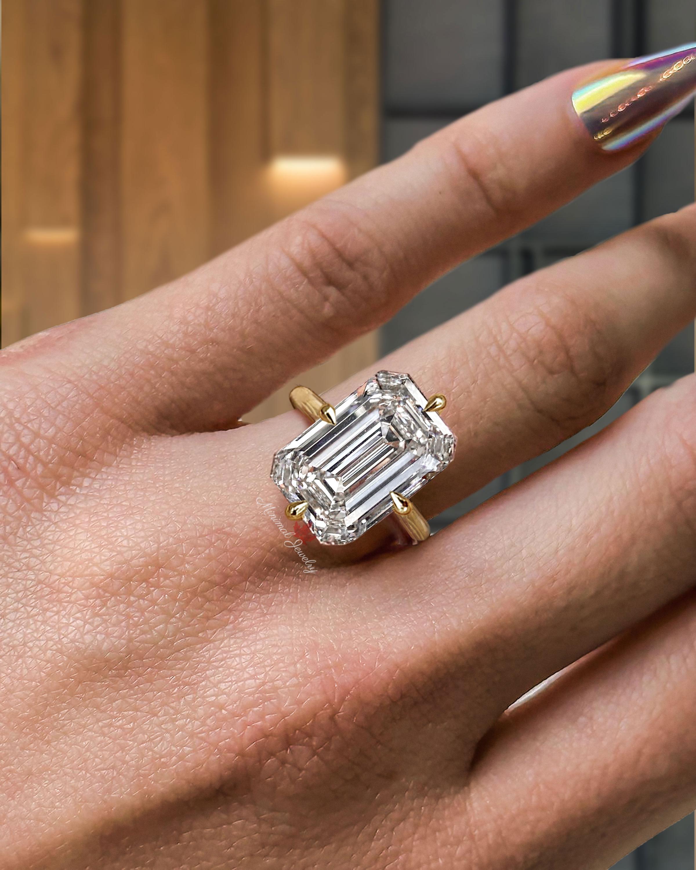 9CT Emerald Cut Engagement Ring in 14K Gold Solitaire emerald cut moissanite Ring Statement Wedding anniversary gift Large Diamond ring