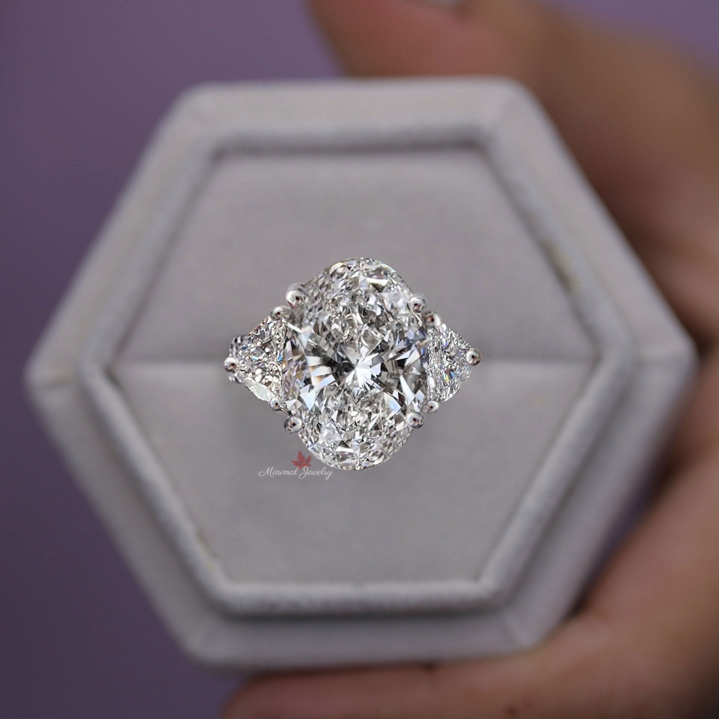 9ct Oval Moissanite Engagement Ring 14k solid gold Three Stone oval moissanite Wedding Ring Large oval cut solitaire anniversary ring women