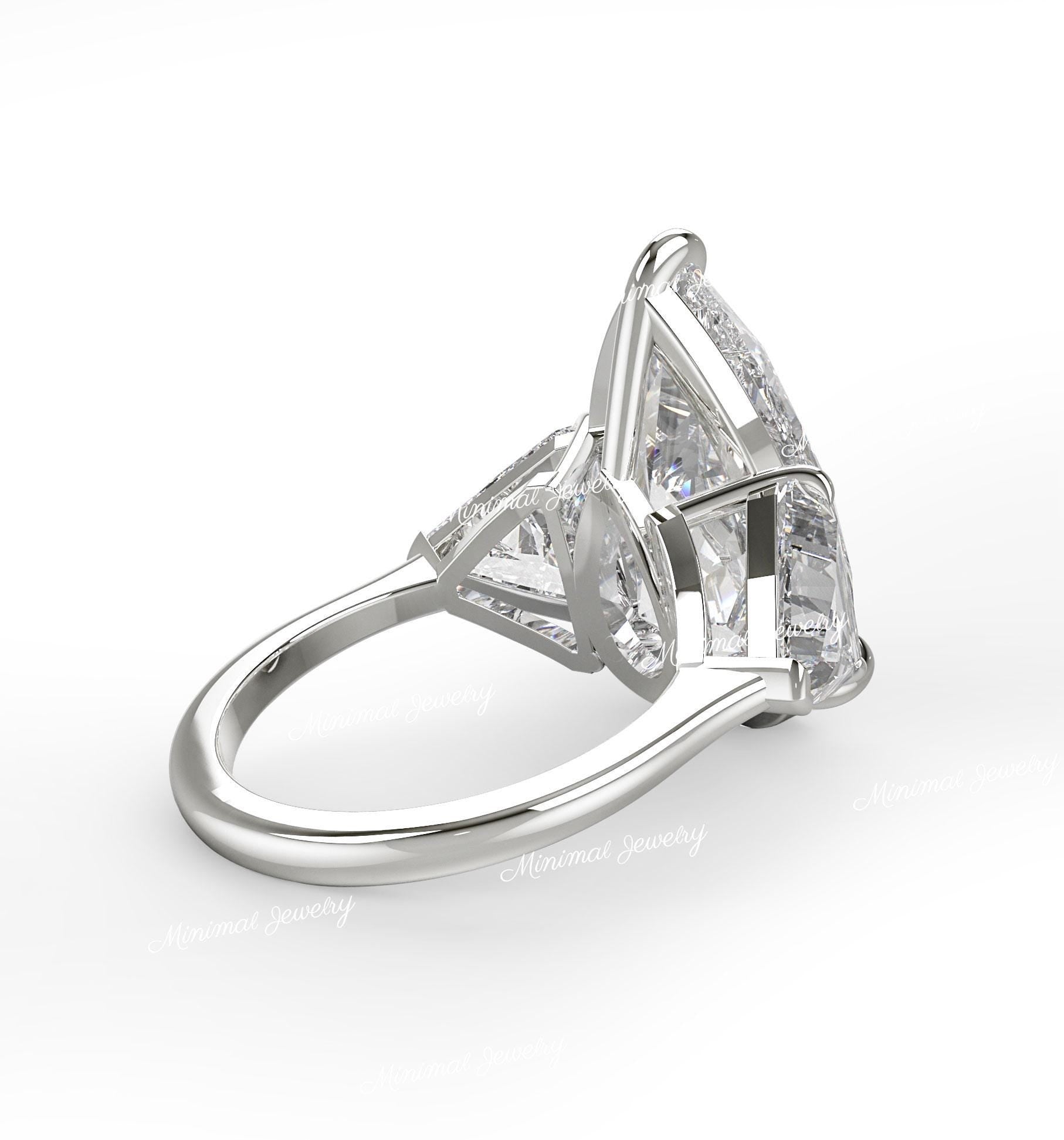Handmade Pear Shaped Moissanite Engagement Ring, 14K Gold Three Stone Ring, Large Diamond Look Bridal Jewelry, Anniversary Gift For Her → Occasions: Engagement & Wedding DESCRIPTION -------------------- STYLE : Three stone • Moissanite Details Stone : Moissanite - High Quality Main Stone : Pear Size (mm) : 19*11 Carat Weight : 9 Band & Halo & Side Stone : Trillion Size (mm) : 8.5*8.5 Carat Weight : 5.8 Stone Total CTW : 14.8 Color : Colorless Clarity : VVS Metal (Solid) : Silver,Gold,Platinum Band Width : 2 ▶ Wedding Band here : https://bit.ly/Wedding_Band ▶ Go To Shop Sections Here : ▶ Engagement Ring : https://bit.ly/EngagementRings_ ▶ Celebrity Style Ring : https://bit.ly/CelebrityStyleRing ▶ Diamond Hoop Earrings: https://bit.ly/DiamondHoopEarring ▶ Tennis Bracelet : https://bit.ly/TennisBraceletsx ▶ Tennis Necklace : https://bit.ly/TennisNecklaces F O L L O W ∙ U S Instagram : @minimaljewelryandco Facebook : @minimalmoissanitejewelry Pinterest : @minimaljewelryandco YouTube : @minimaljewelryandco --------------------------------------------------------------