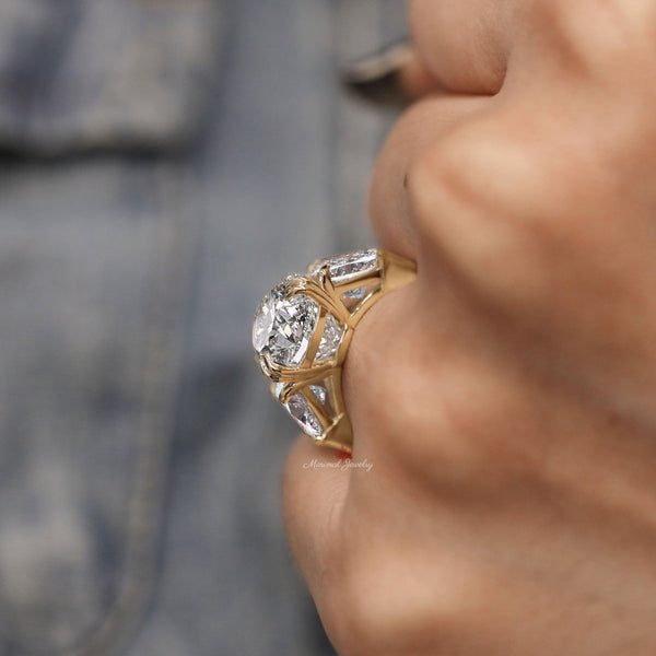 9ct pear cut moissanite Engagement Ring Three stone Engagement Ring pear shaped Wedding Ring Anniversary ring large diamond cocktail ring