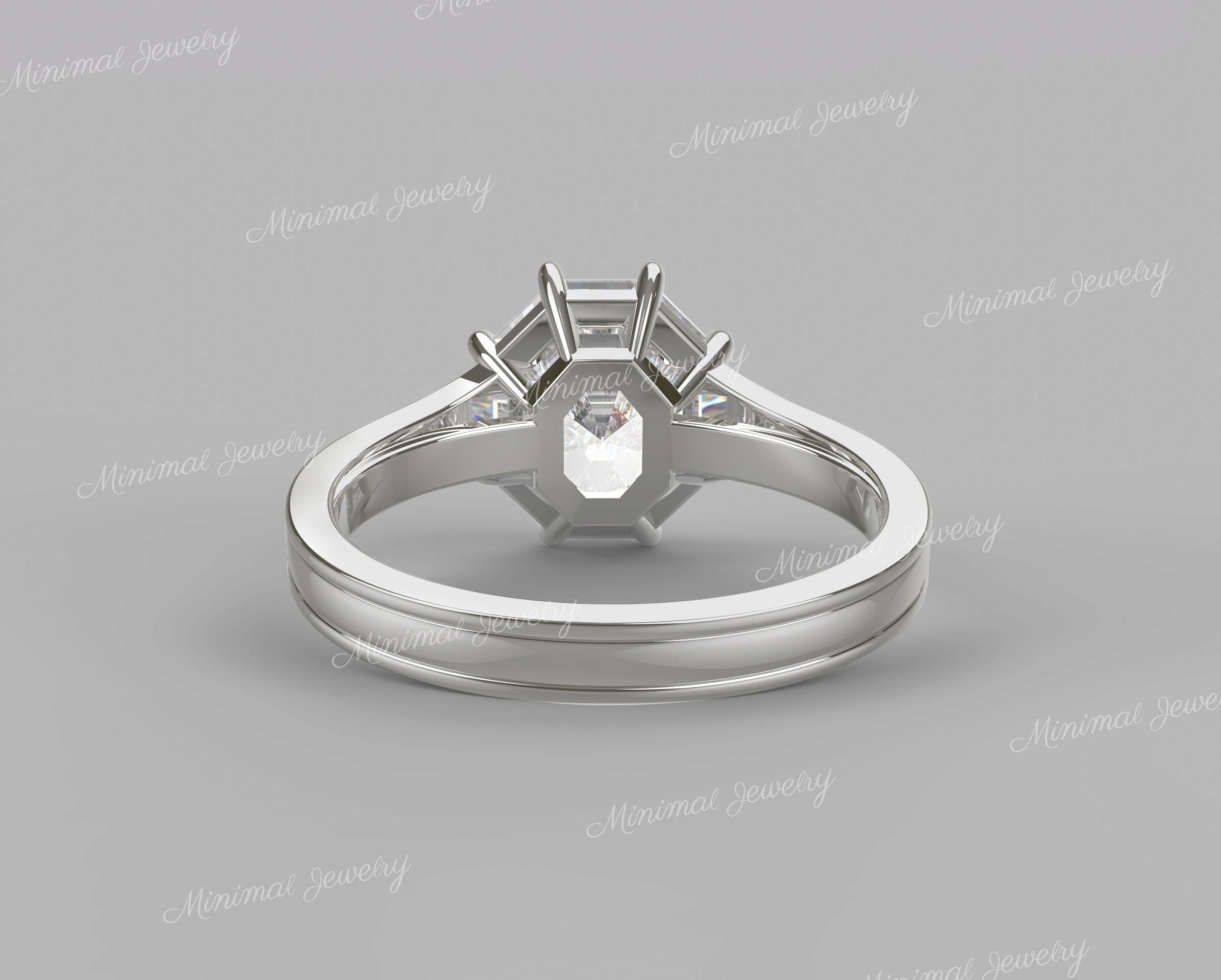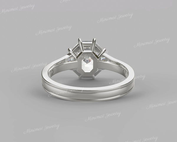 Asscher cut engagement ring solitaire moissanite hexagon ring low profile gold cathedral ring art deco 3.5CT asscher wedding ring for bridal