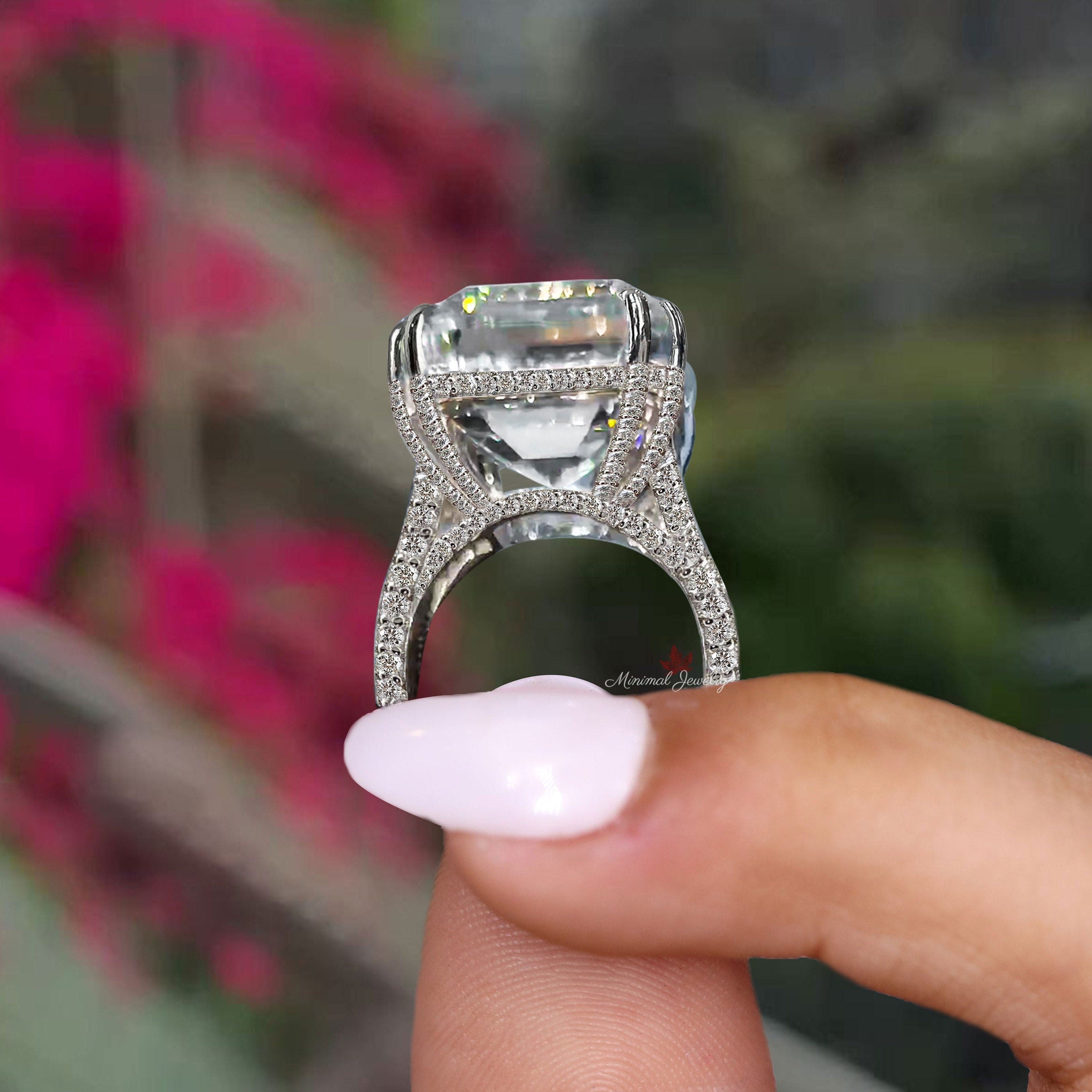Asscher cut moissanite engagement ring 9CT soliatre split shank asscher cut ring statement wedding ring anniversary gift large diamond ring