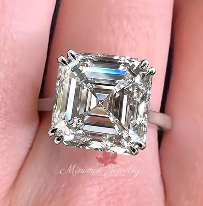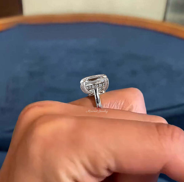 Asscher moissanite engagement ring hidden halo gold cathedral wedding ring 9CT solitaire asscher cut ring large diamond anniversary ring